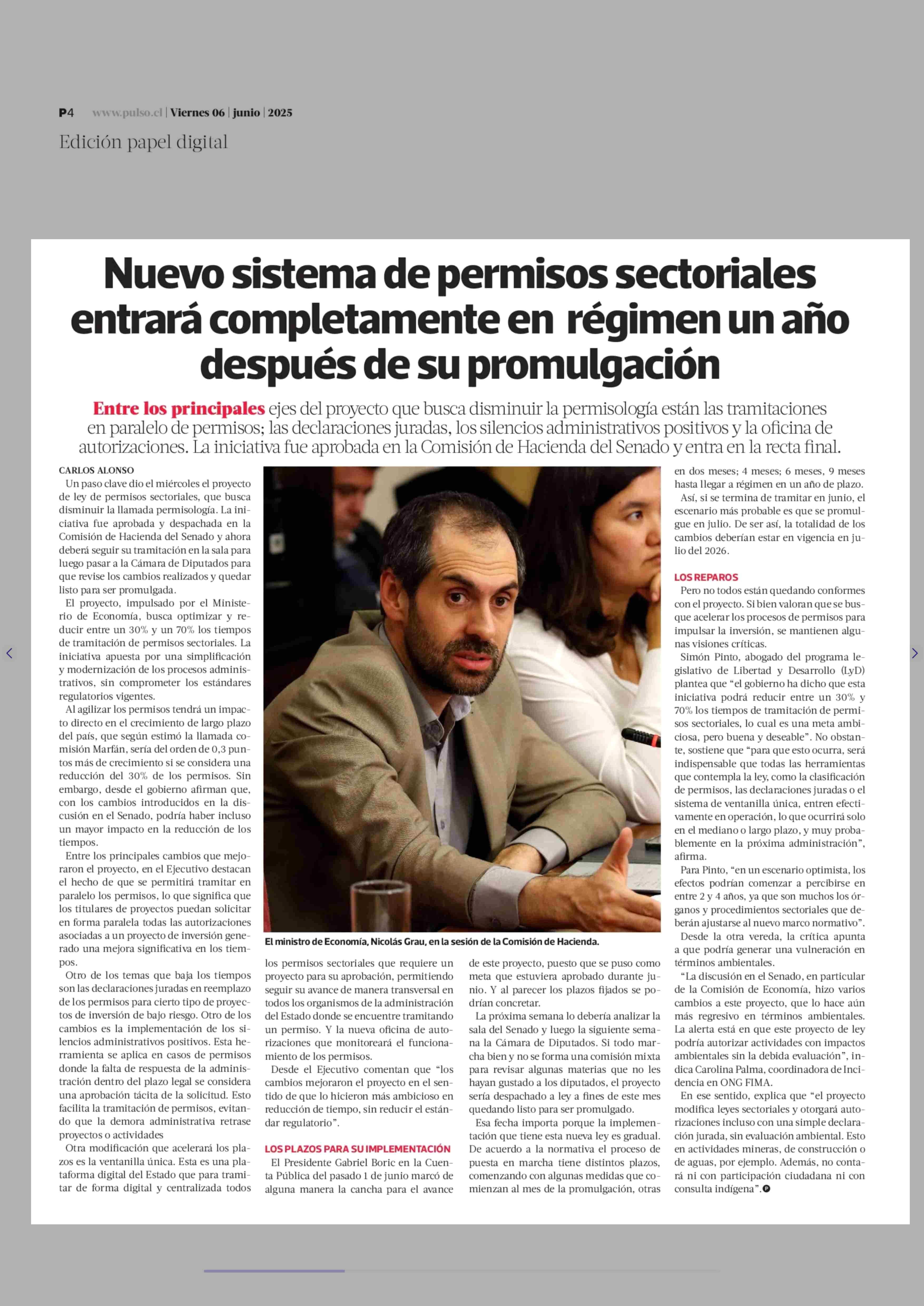 Nuevo sistema de permisos sectoriales entrará completamente en régimen un año después de su promulgación 06-06-2025 La Tercera |