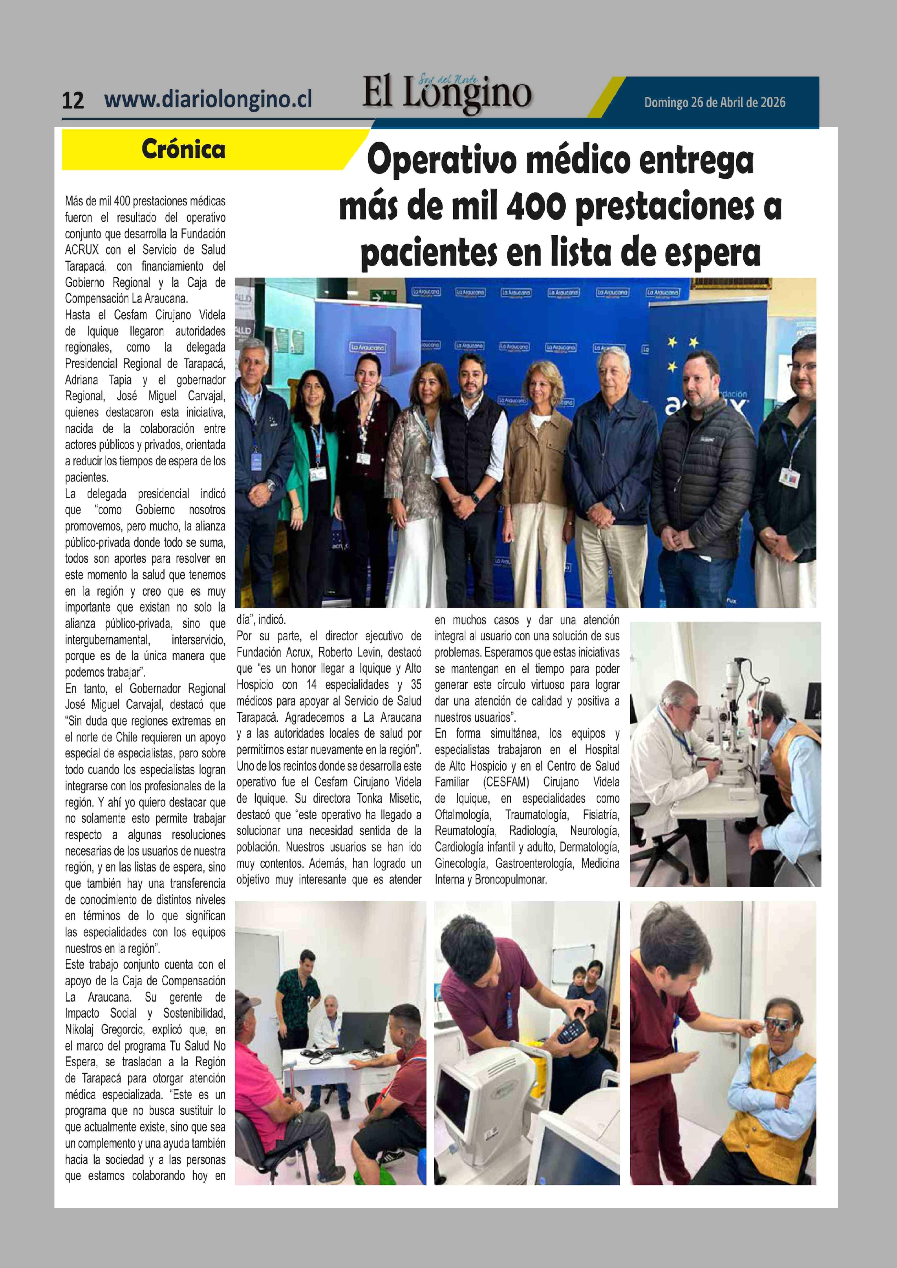 | Fecha: | 26-04-2026 | Sector: | Noticia general | Región: | Región de Tarapacá |