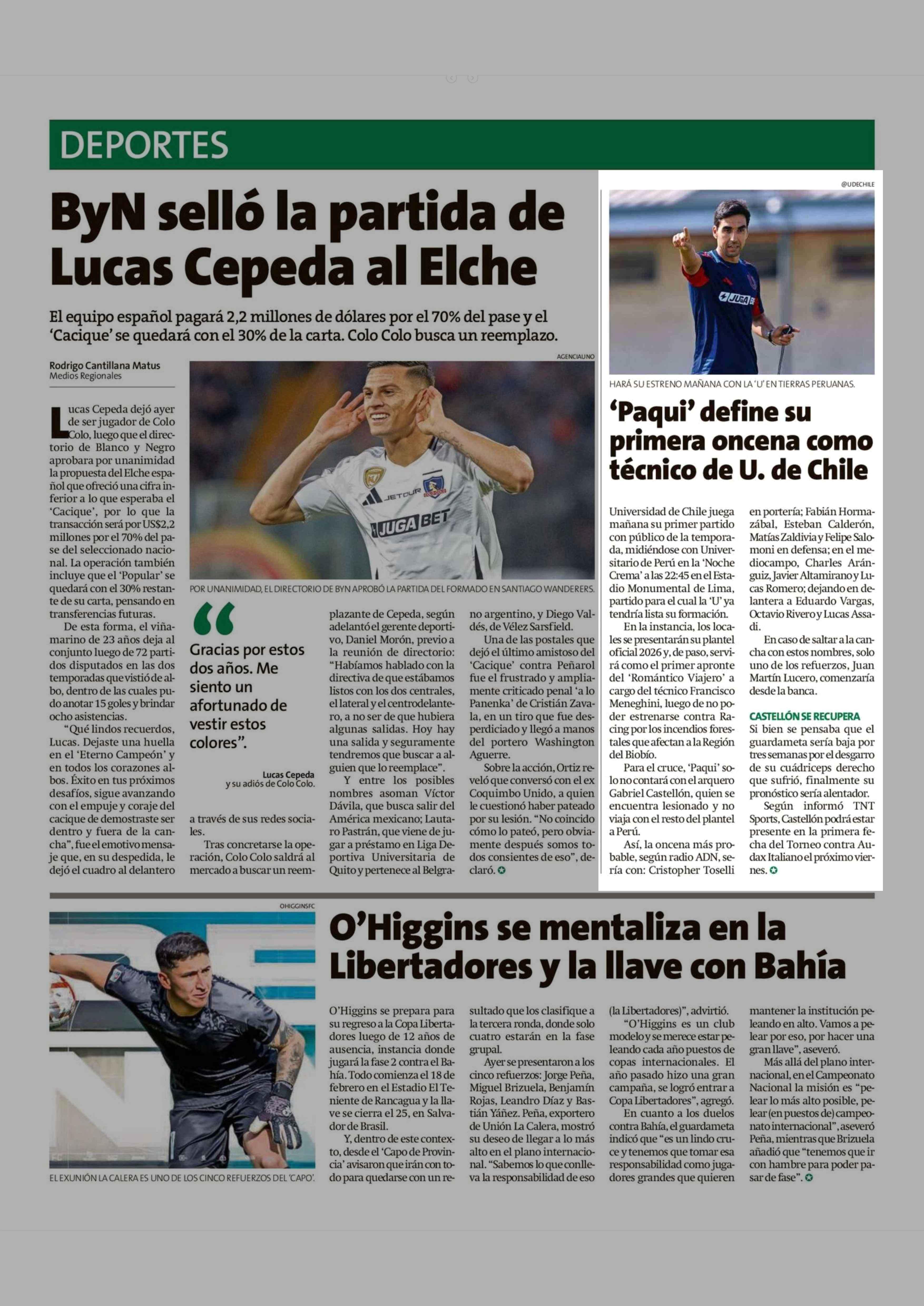 'Paqui' define su primera oncena como técnico de U. de Chile 23-01-2026 La Estrella de Chiloé |