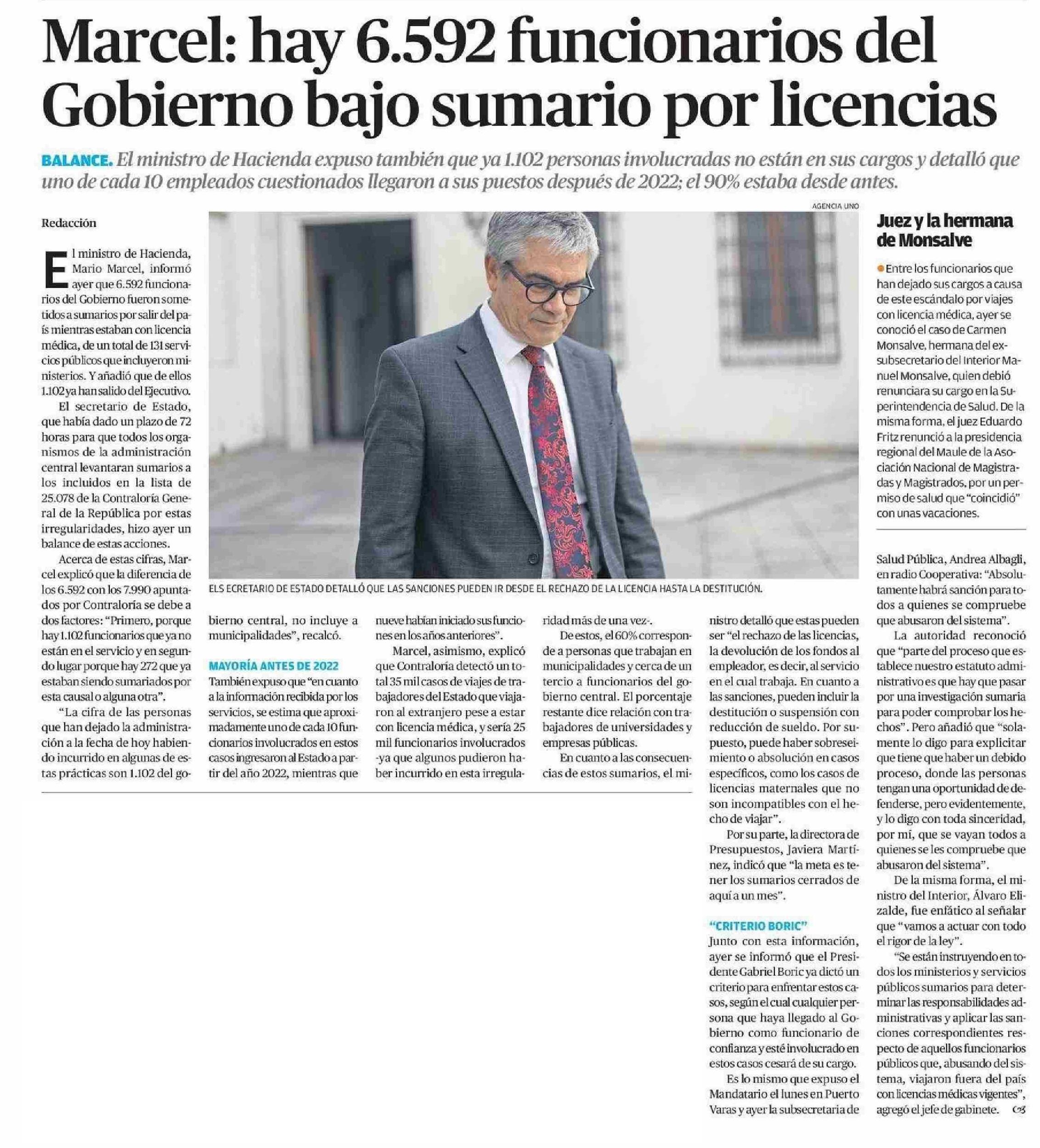 | Título: | Marcel: hay 6.592 funcionarios del Gobierno bajo sumario por licencias |