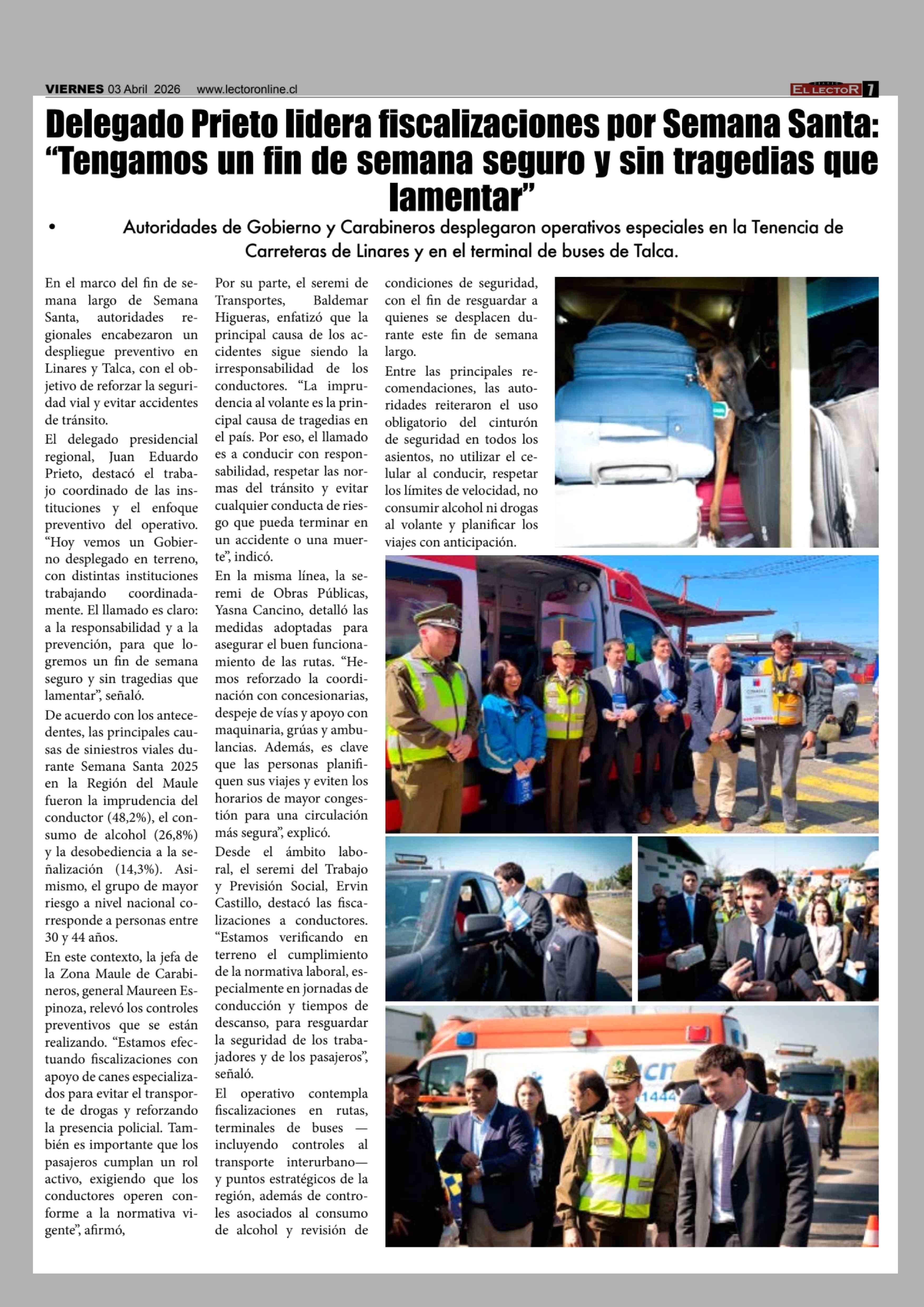 Delegado Prieto lidera fiscalizaciones por Semana Santa: "Tengamos un fin de semana seguro y sin tragedias que lamentar" 03-04-2026 El Lector |
