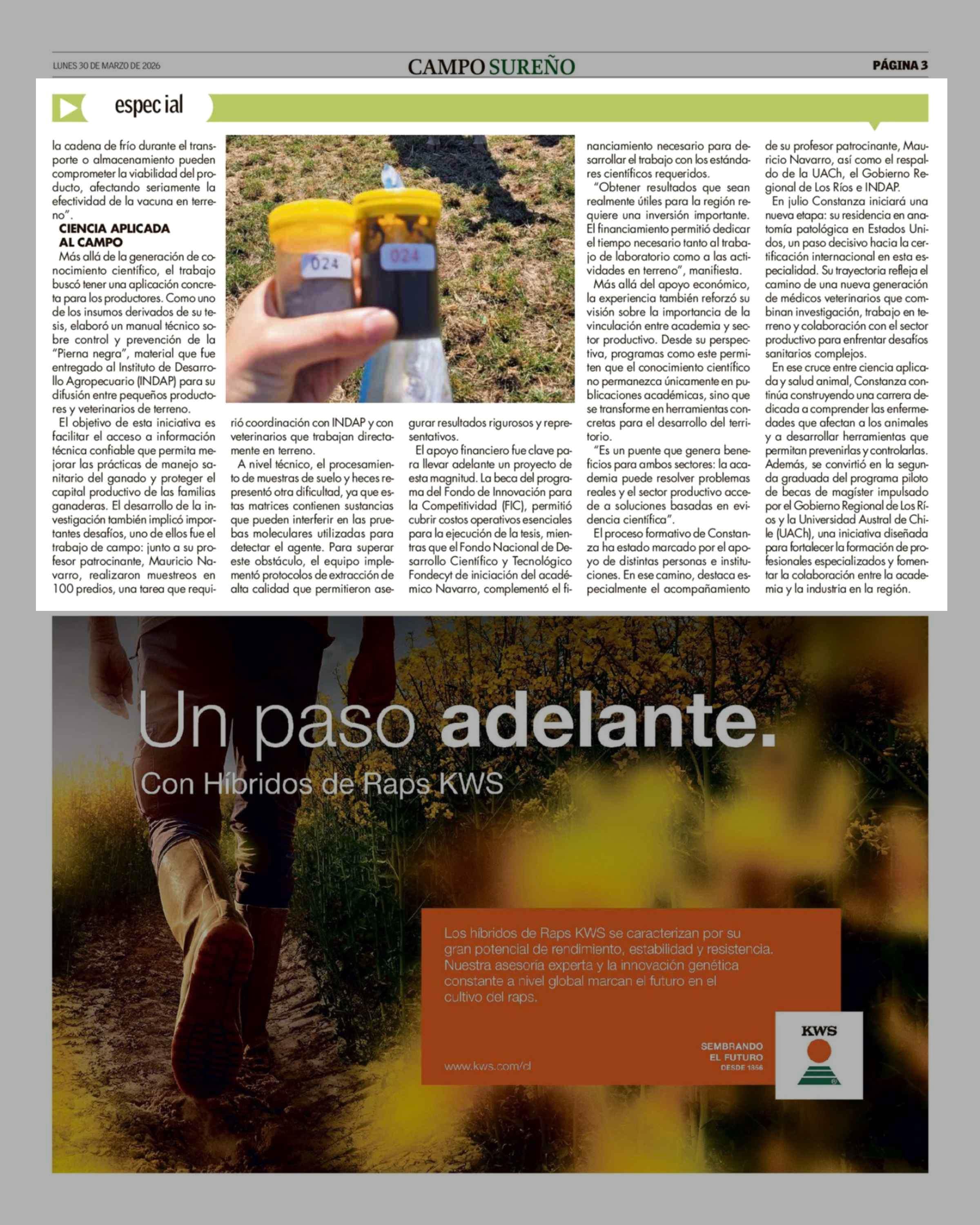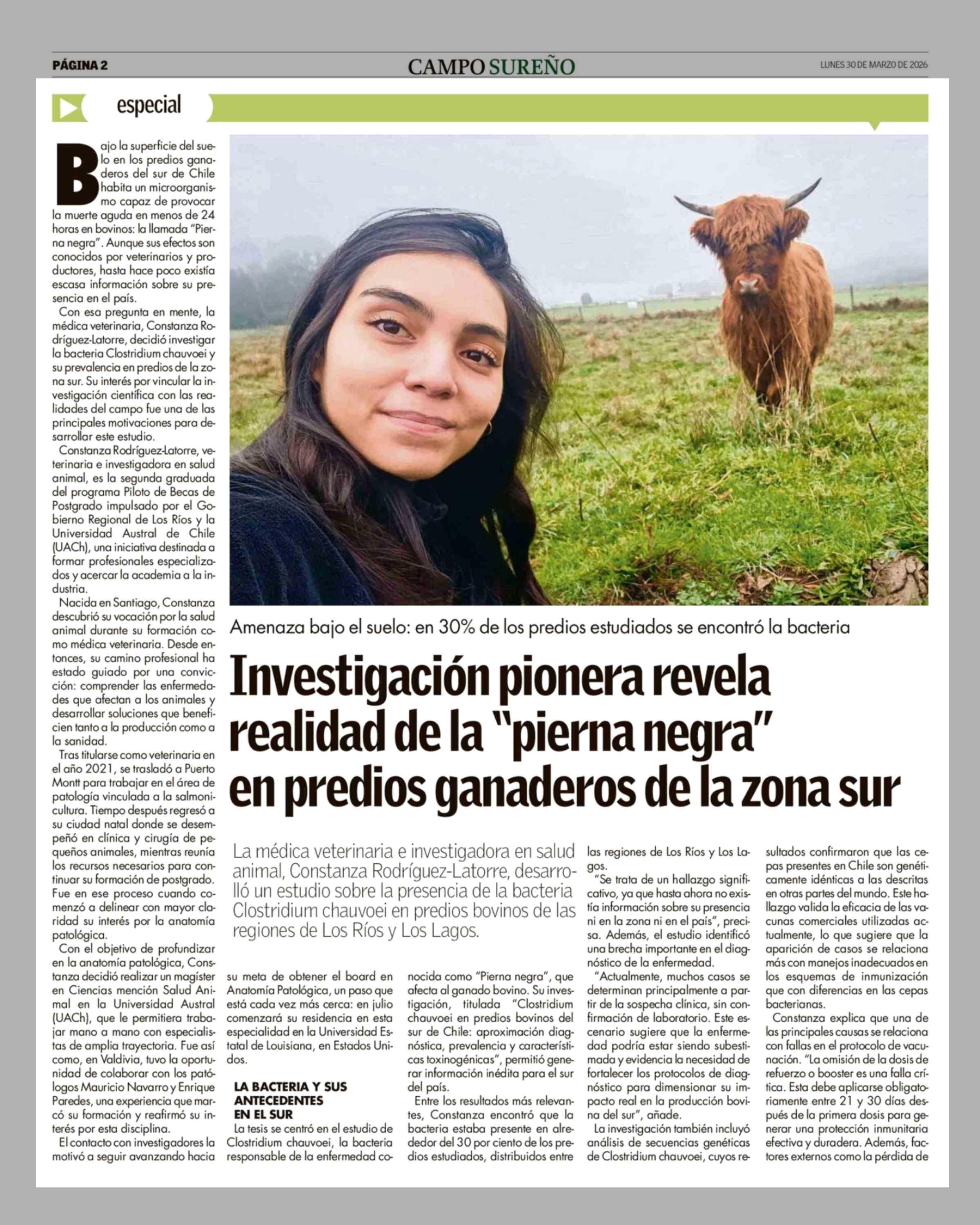 Título: Investigación pionera revela realidad de la "pierna negra" en predios ganaderos de la zona sur