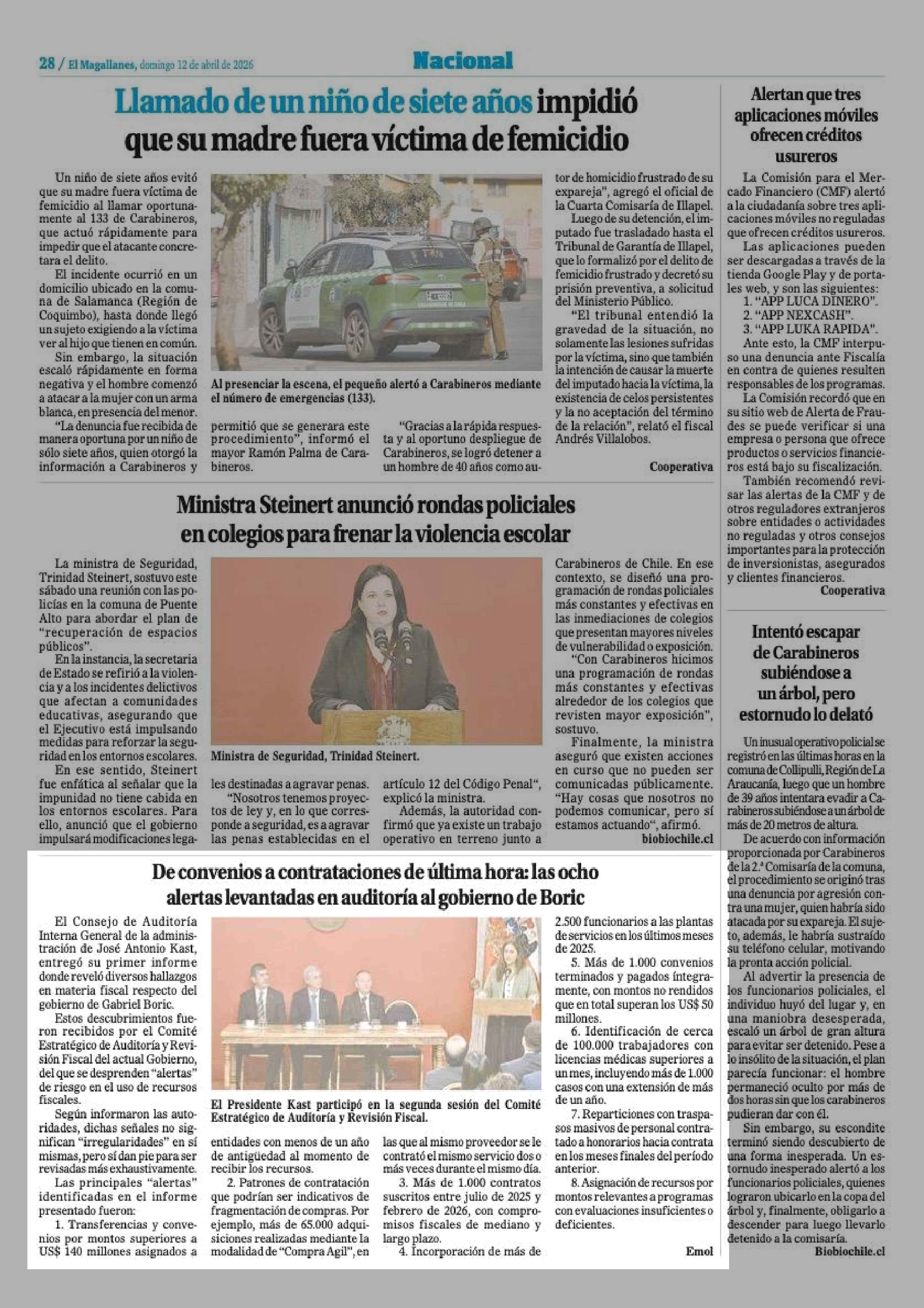 De convenios a contrataciones de última hora: las ocho alertas levantadas en auditoría al gobierno de Boric 12-04-2026 El Magallanes |