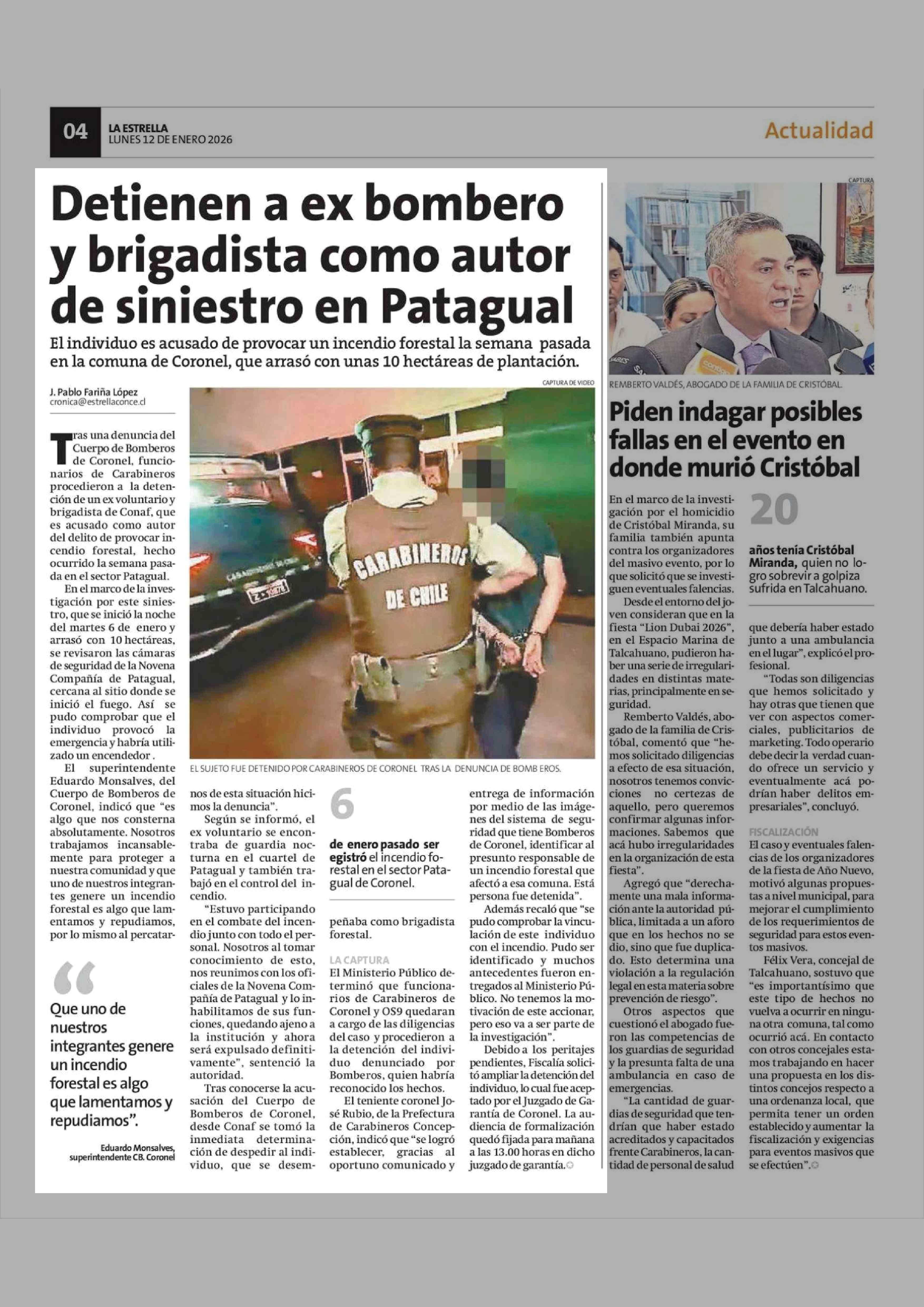 Detienen a ex bombero y brigadista como autor de siniestro en Patagual 12-01-2026 La Estrella de Concepción |
