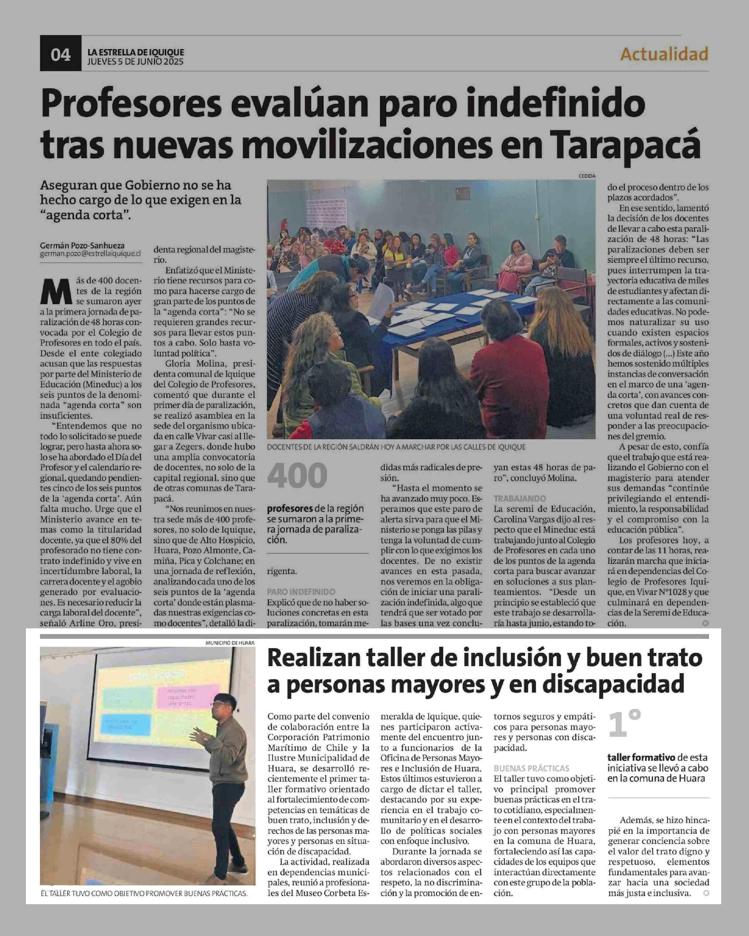 Realizan taller de inclusión y buen trato a personas mayores y en discapacidad 05-06-2025 La Estrella de Iquique |