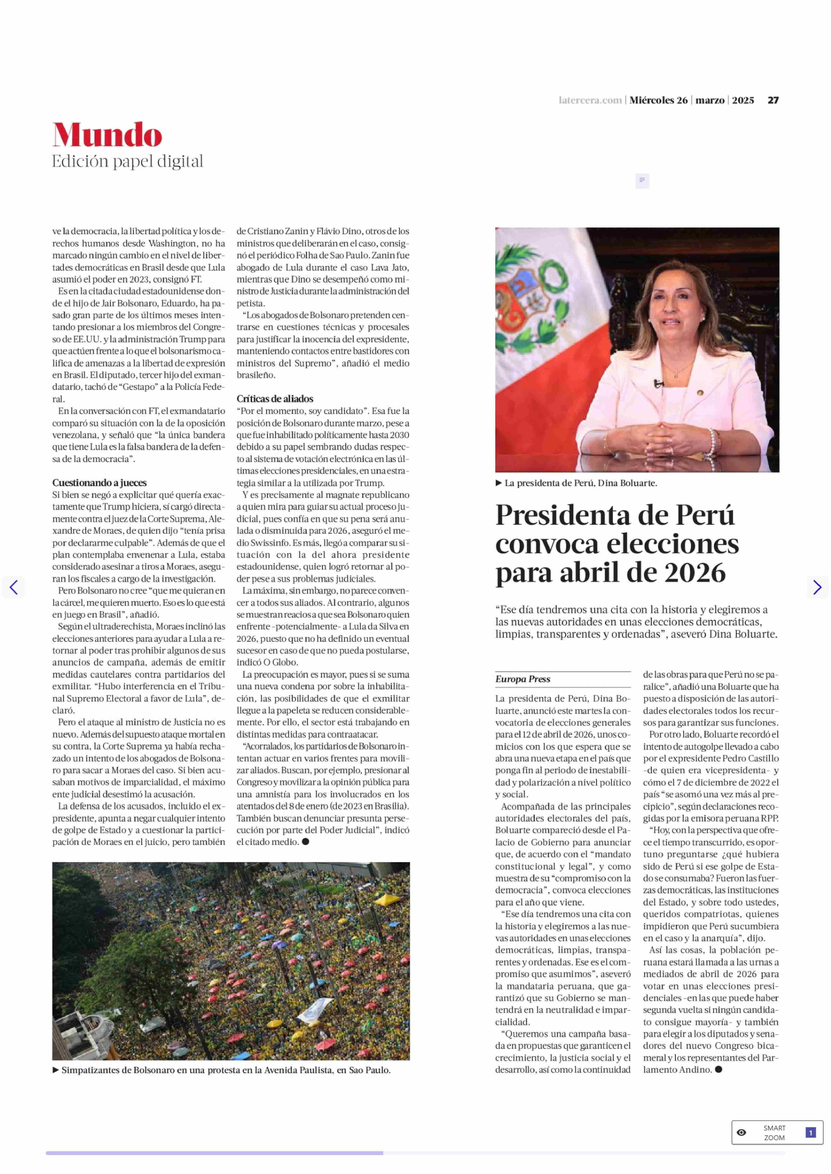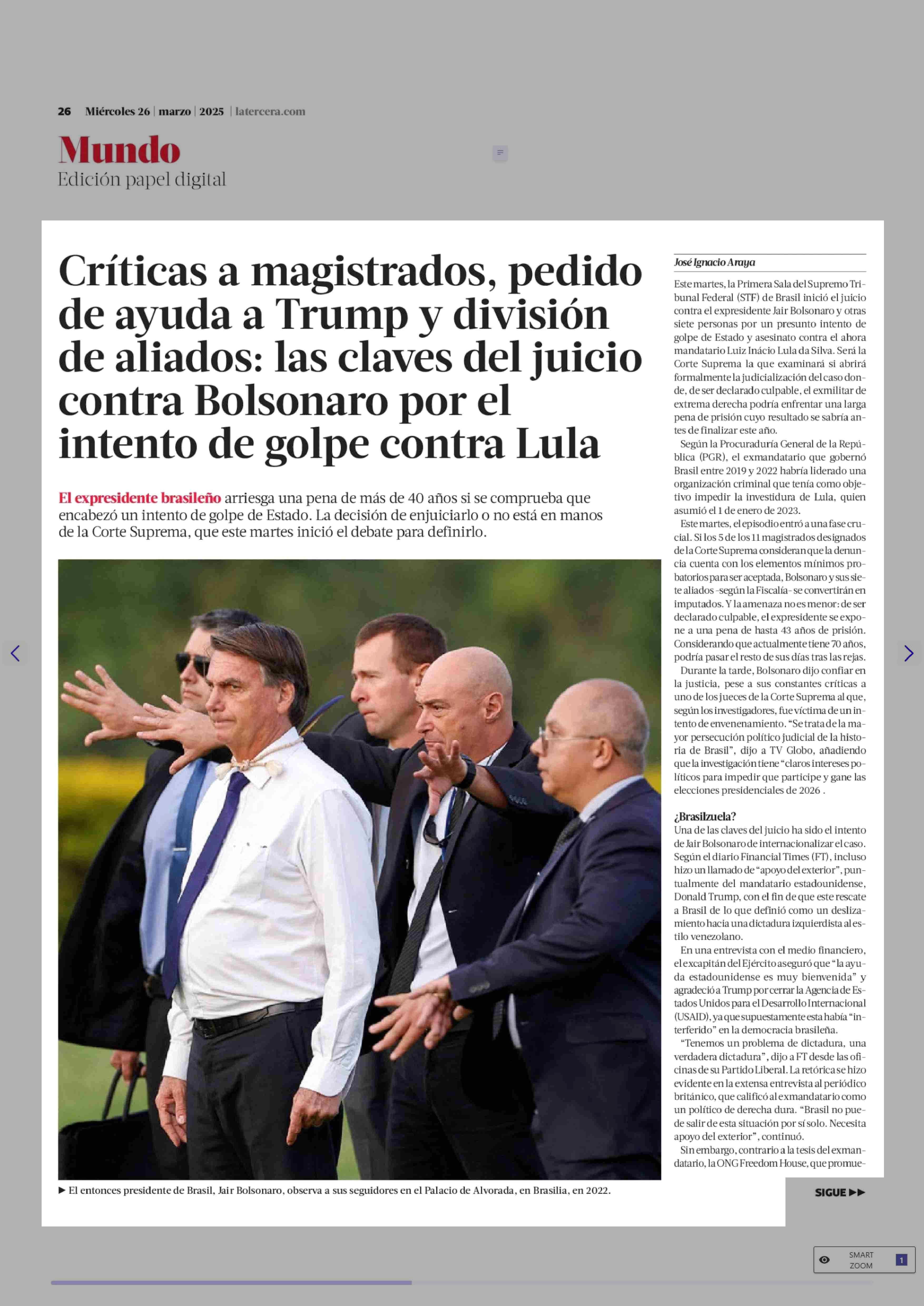 Críticas a magistrados, pedido de ayuda a Trump y división de aliados: las claves del juicio contra Bolsonaro por el intento de golpe contra Lula 26-03-2025 La Tercera |