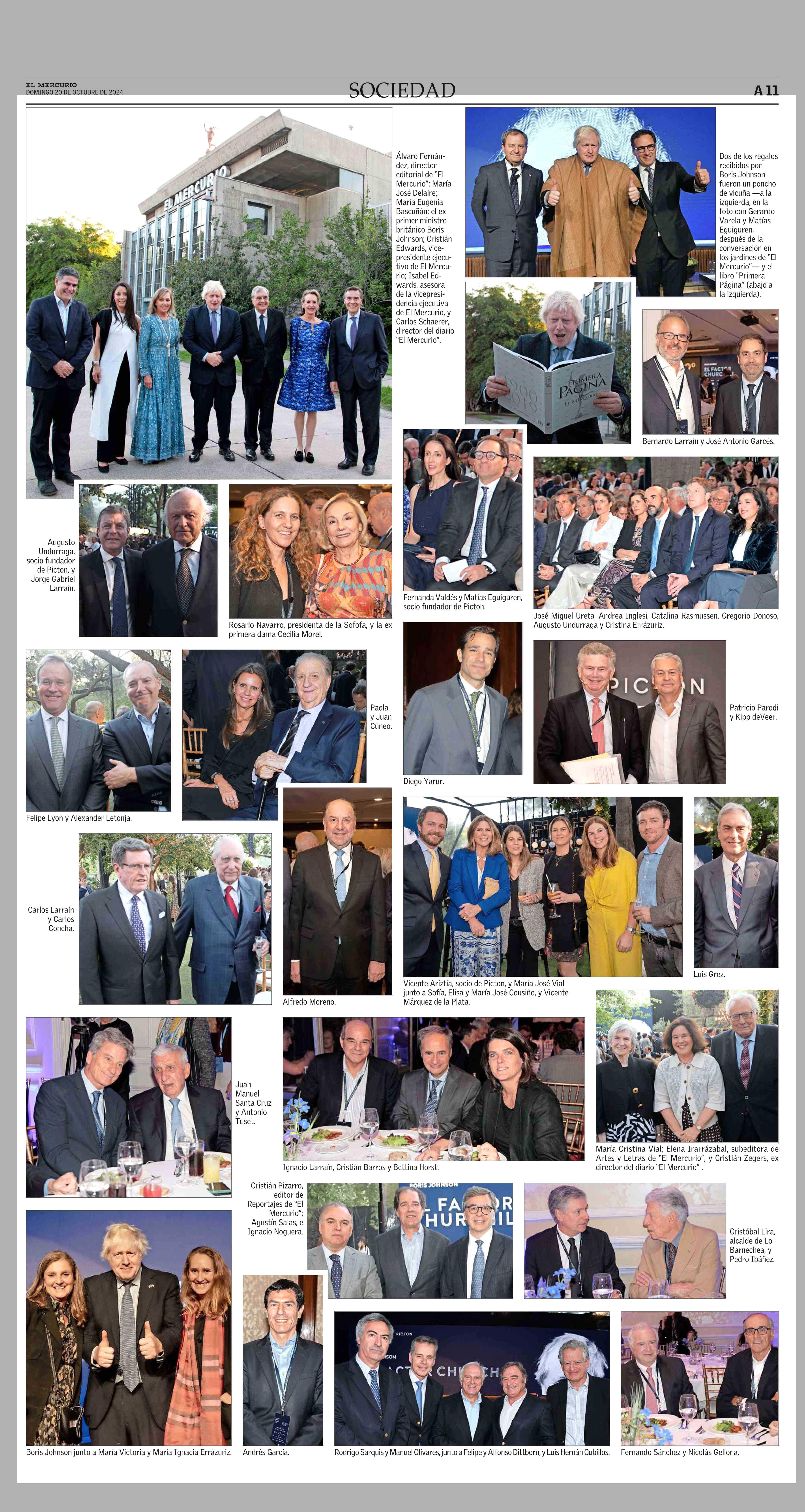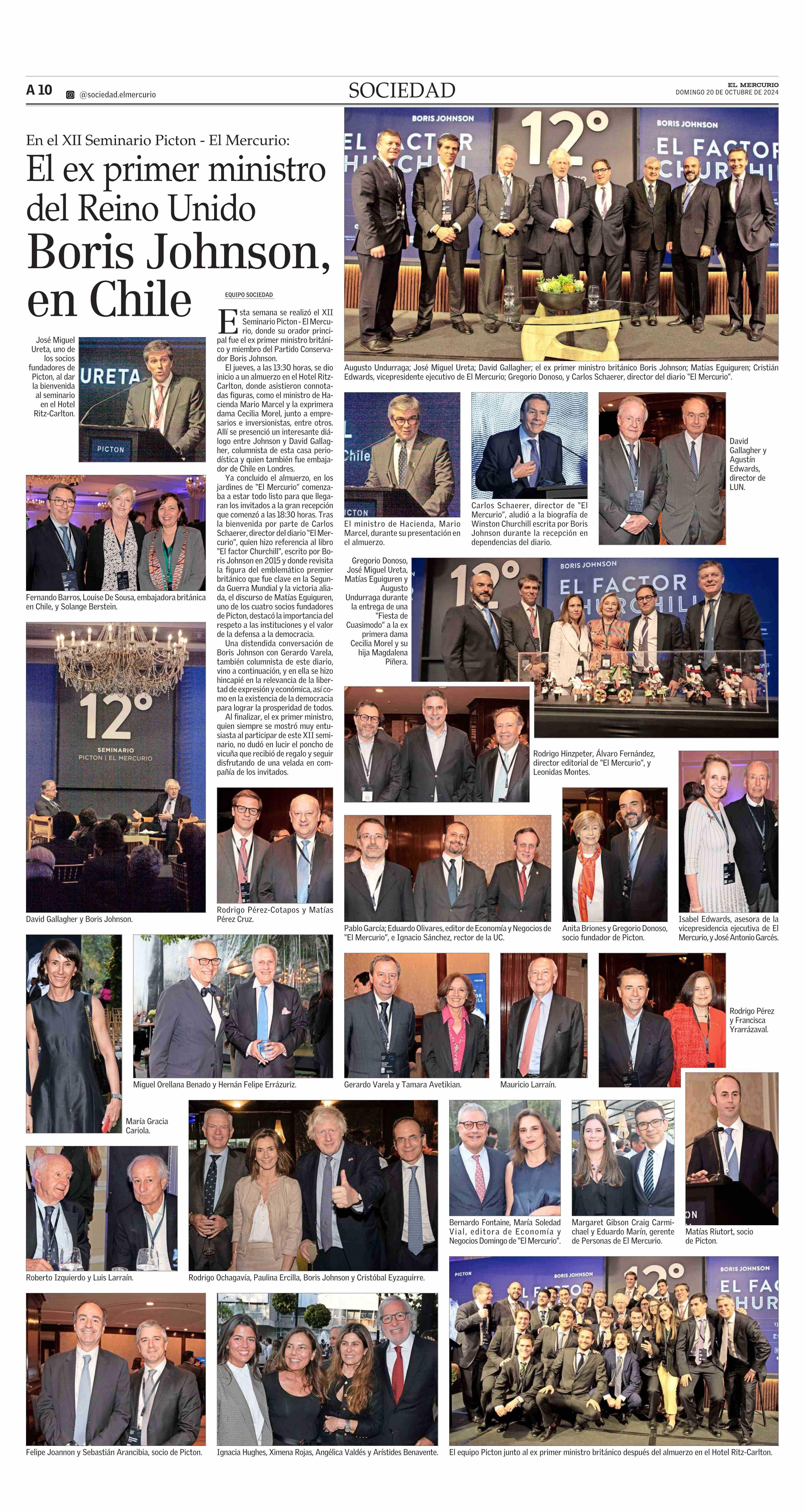 El ex primer ministro del Reino Unido Boris Johnson, en Chile 20-10-2024 El Mercurio |