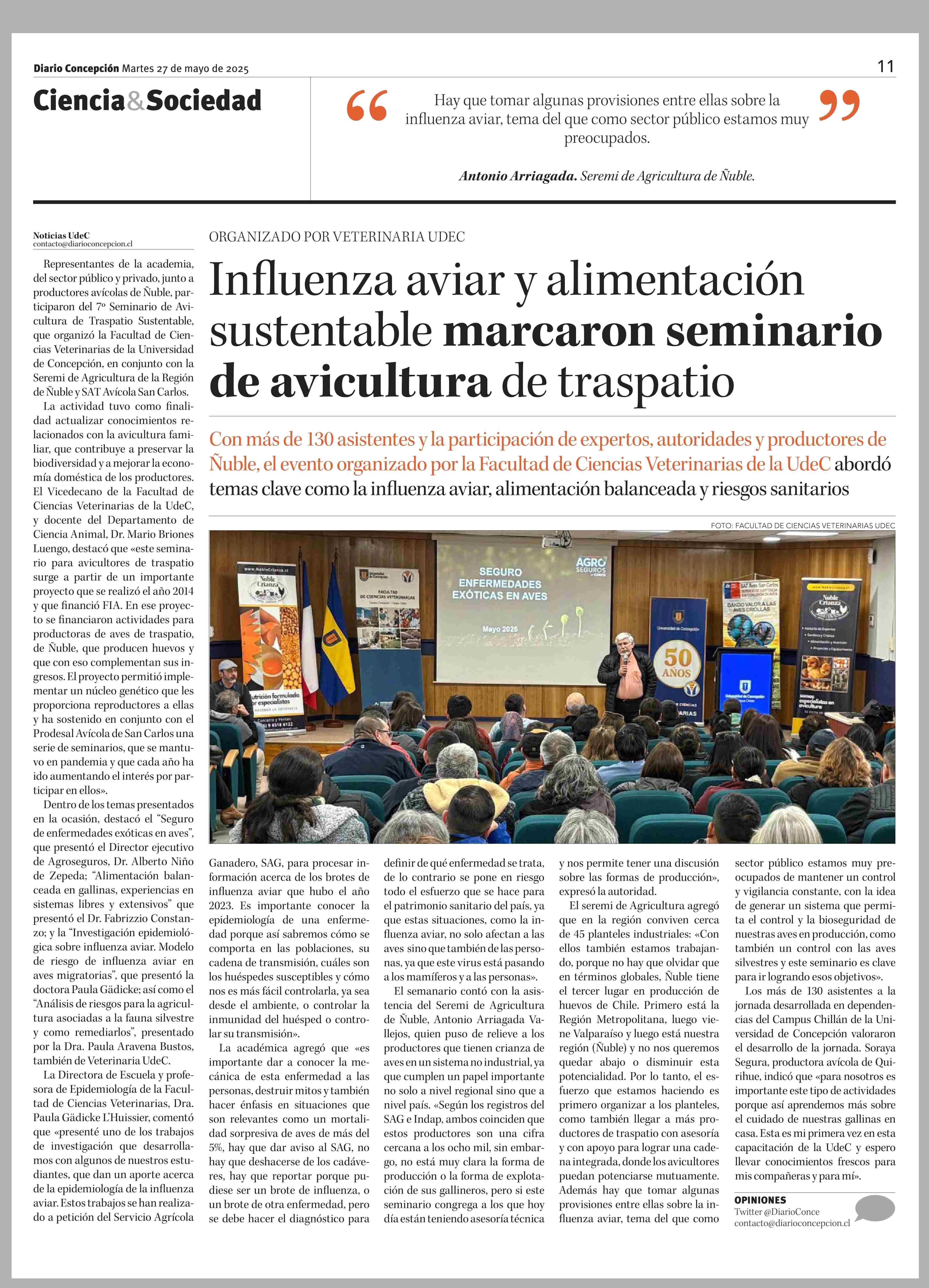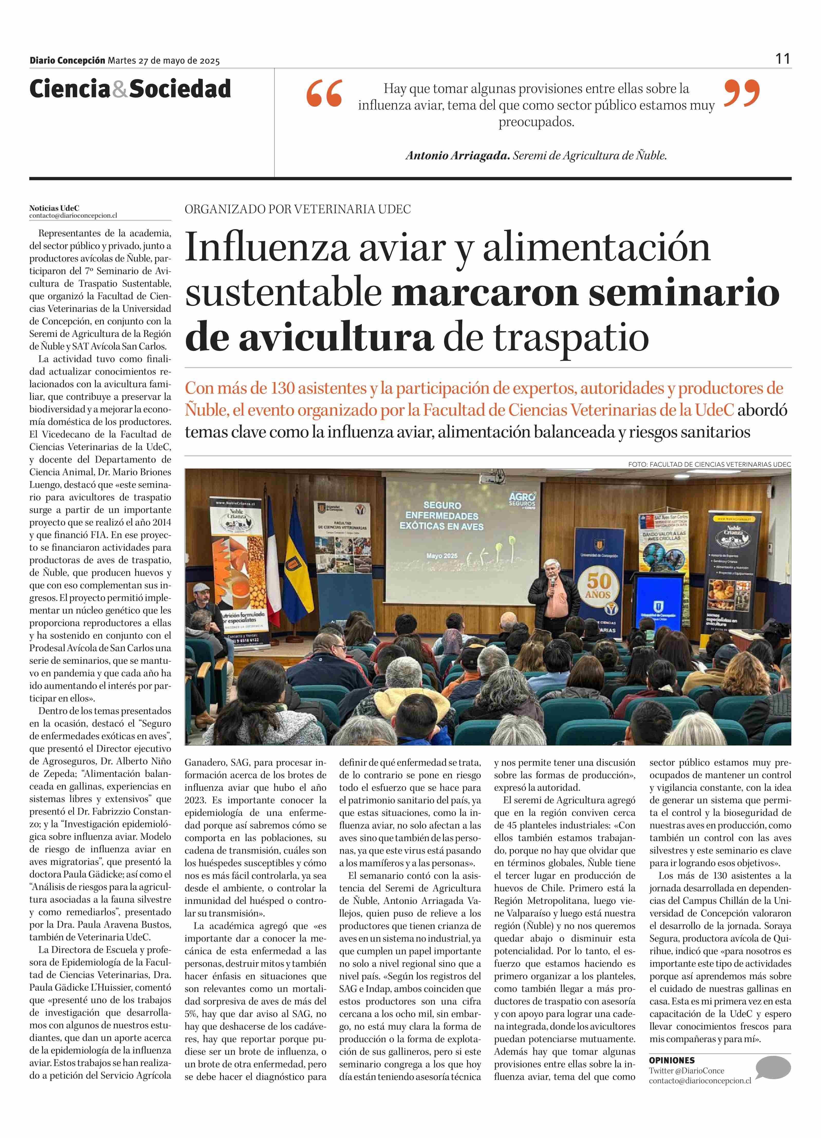 Influenza aviar y alimentación sustentable marcaron seminario de avicultura de traspatio 27-05-2025 Diario Concepción |