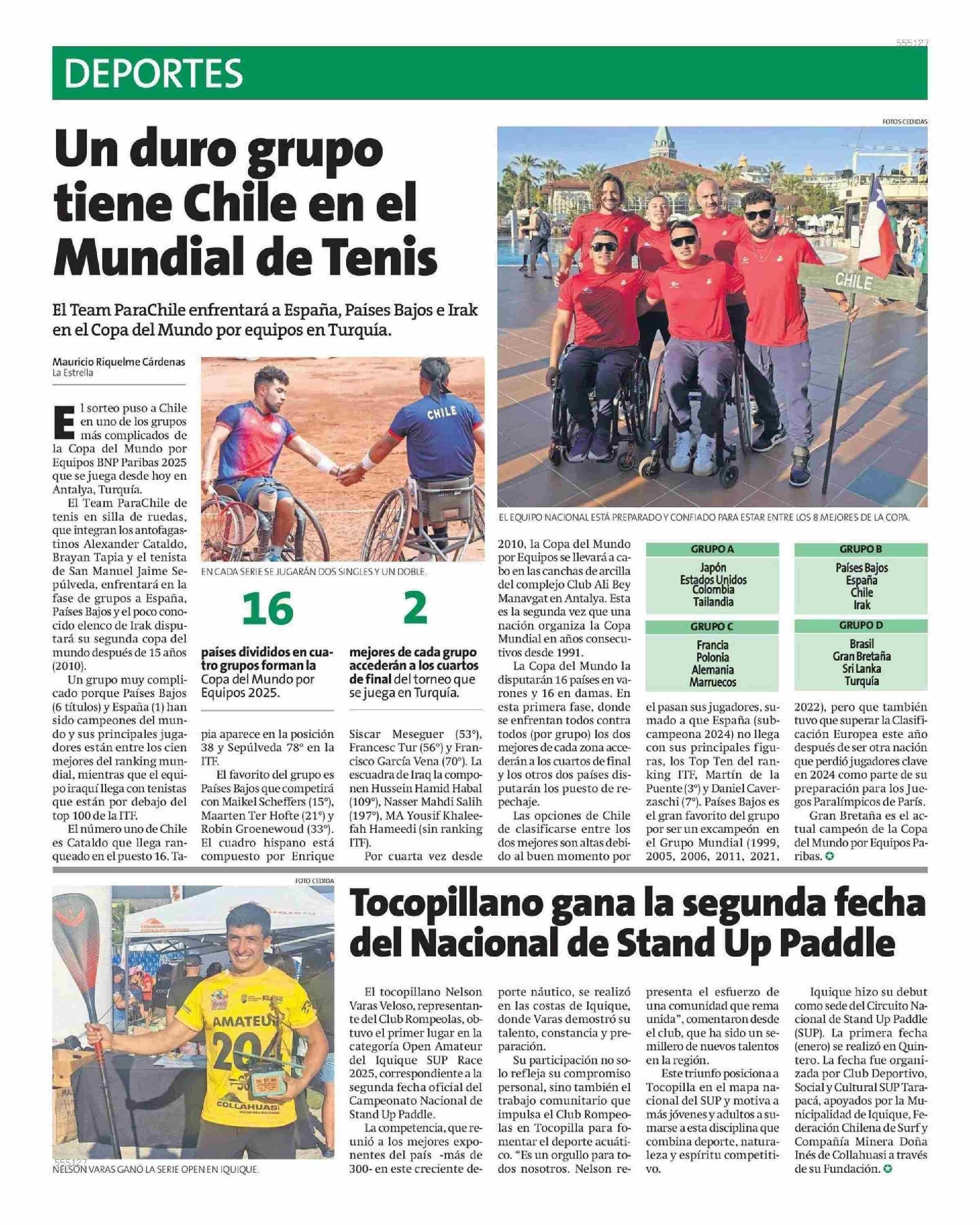 Un duro grupo Mundial de Tenis tiene Chile en el 06-05-2025 La Estrella de Antofagasta |