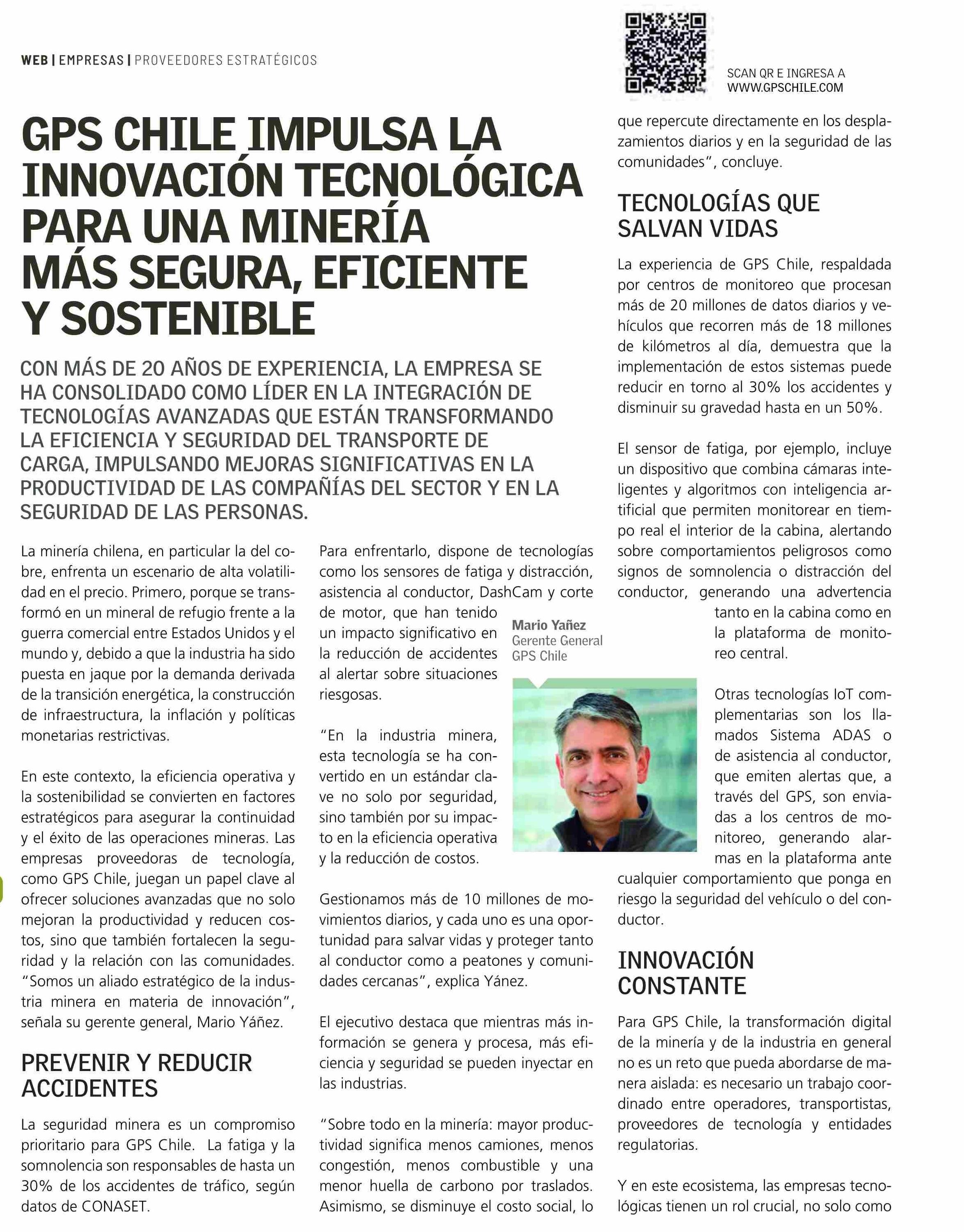GPS CHILE IMPULSA LA INNOVACIÓN TECNOLÓGICA PARA UNA MINERÍA MÁS SEGURA, EFICIENTE Y SOSTENIBLE 17-06-2025 Revista Logistec |