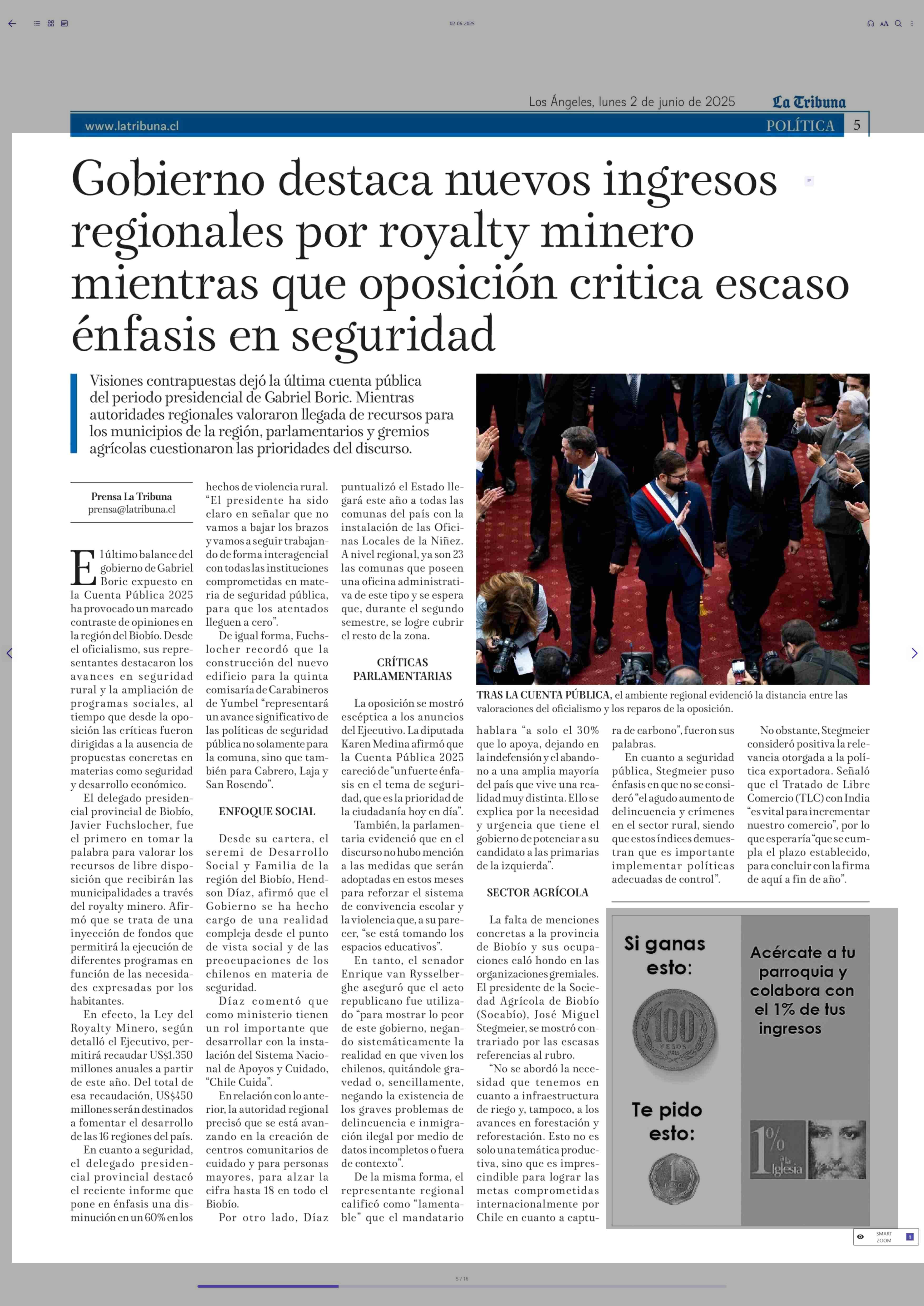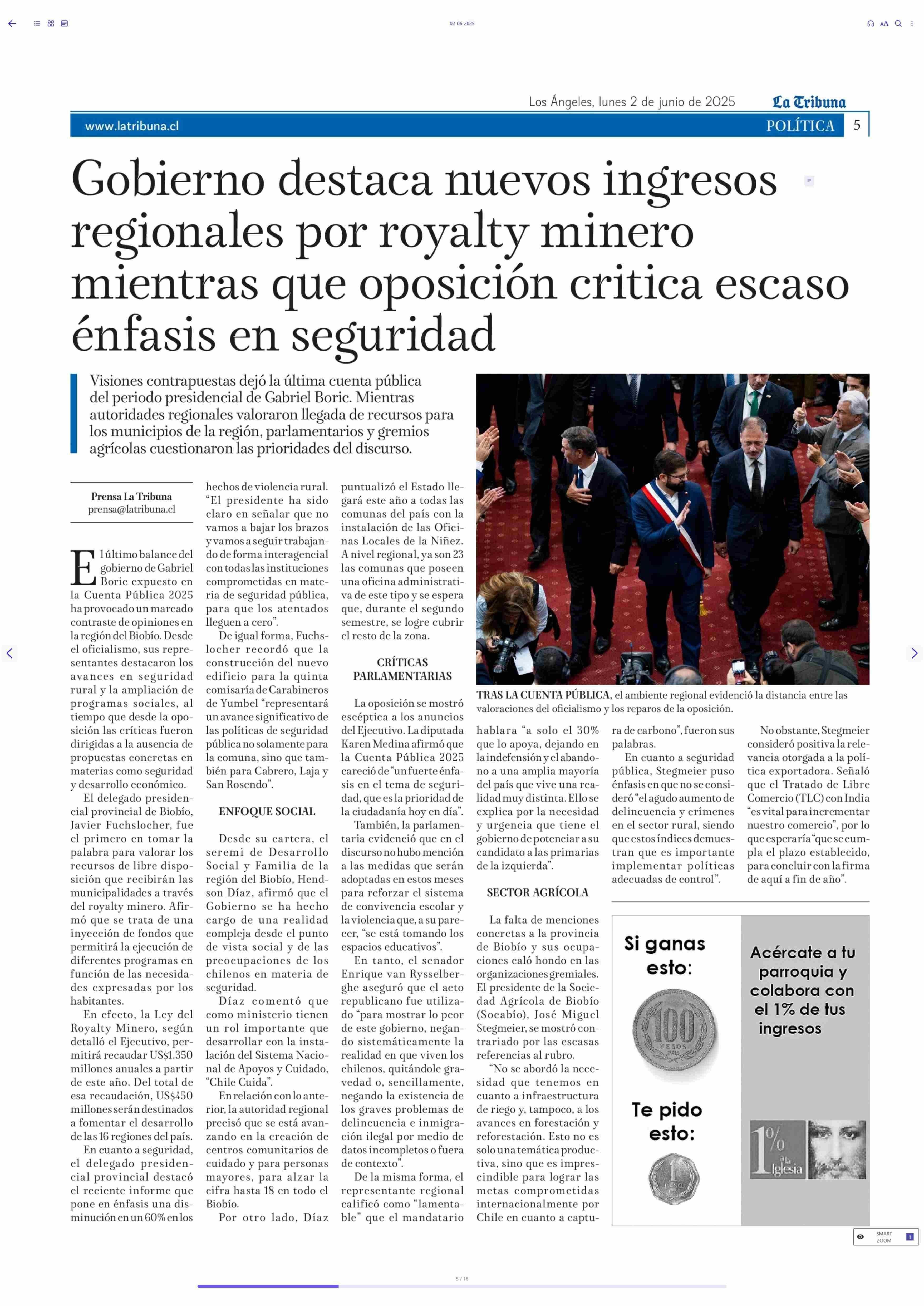 Fecha: 02-06-2025 Sector: Noticia general Región: Región del Bío-Bío