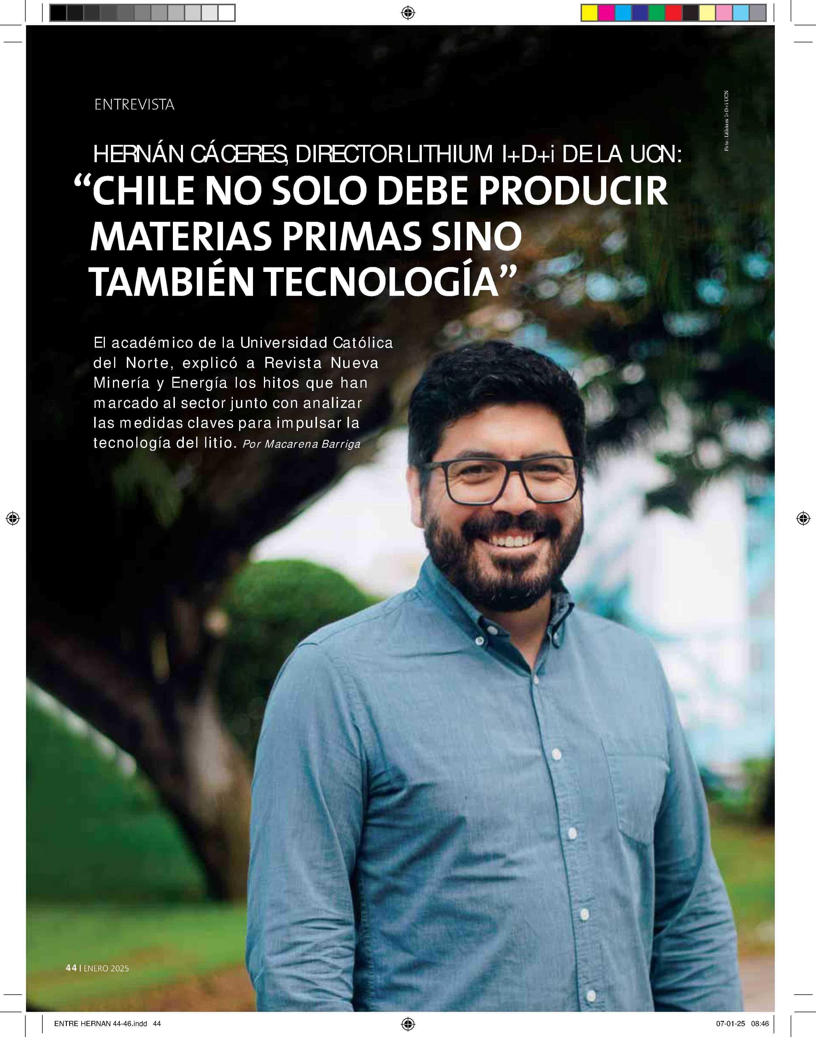 “CHILE NO SOLO DEBE PRODUCIR MATERIAS PRIMAS SINO TAMBIÉN TECNOLOGÍA” 09-01-2025 Revista Nueva Minería & Energía |