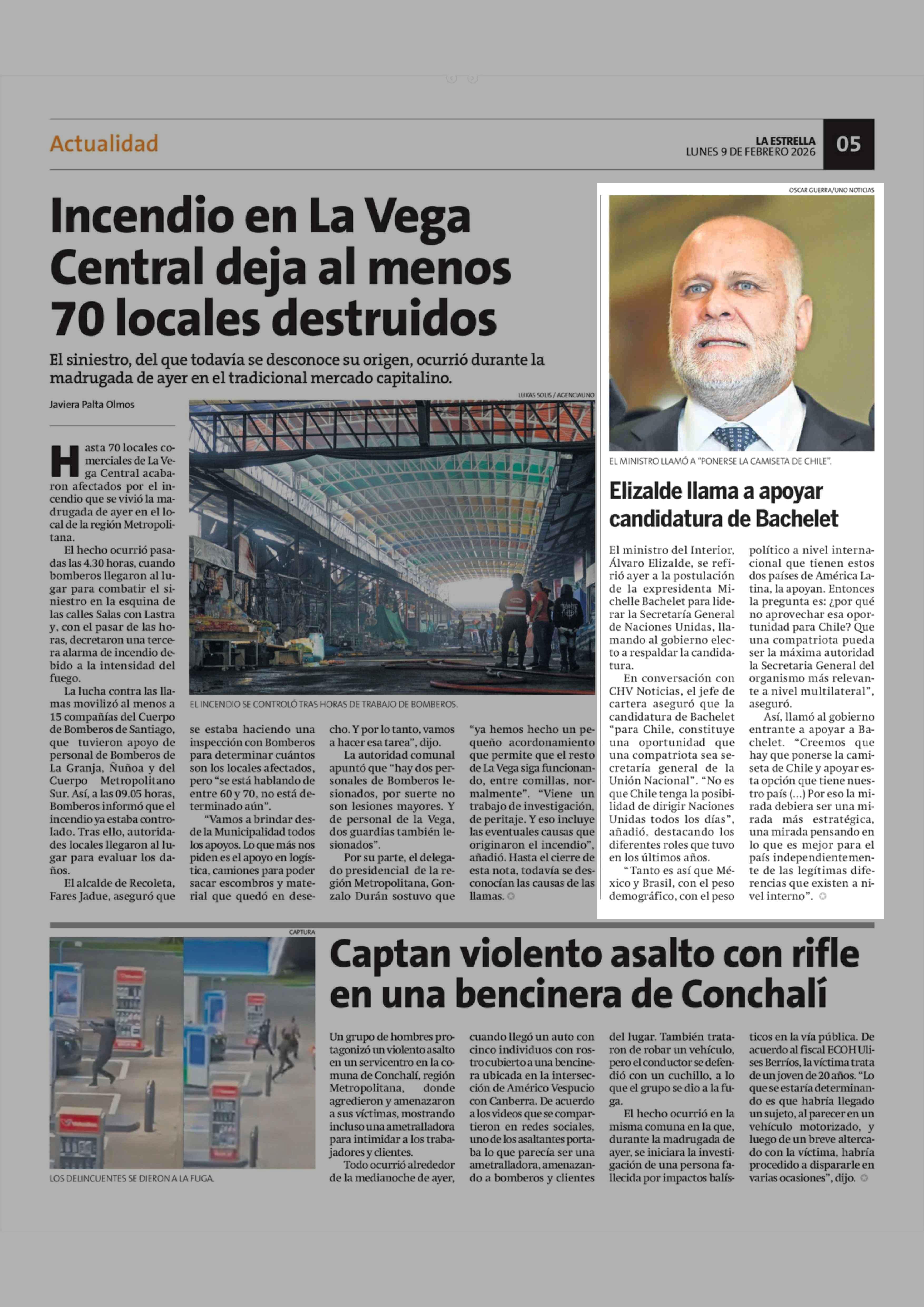 Elizalde llama a apoyar candidatura de Bachelet 09-02-2026 La Estrella de Concepción |