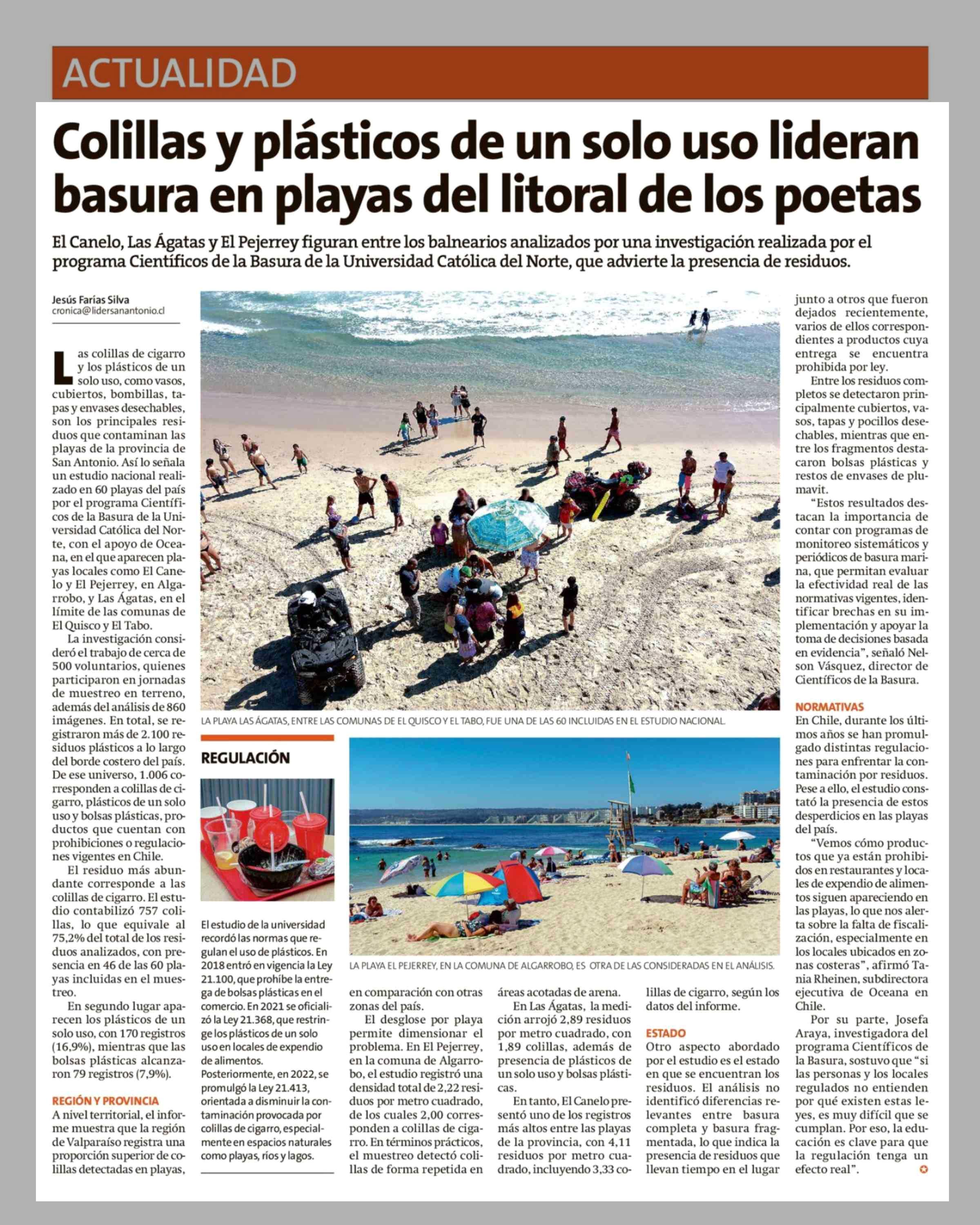 | Título: | Colillas y plásticos de un solo uso lideran basura en playas del litoral de los poetas |