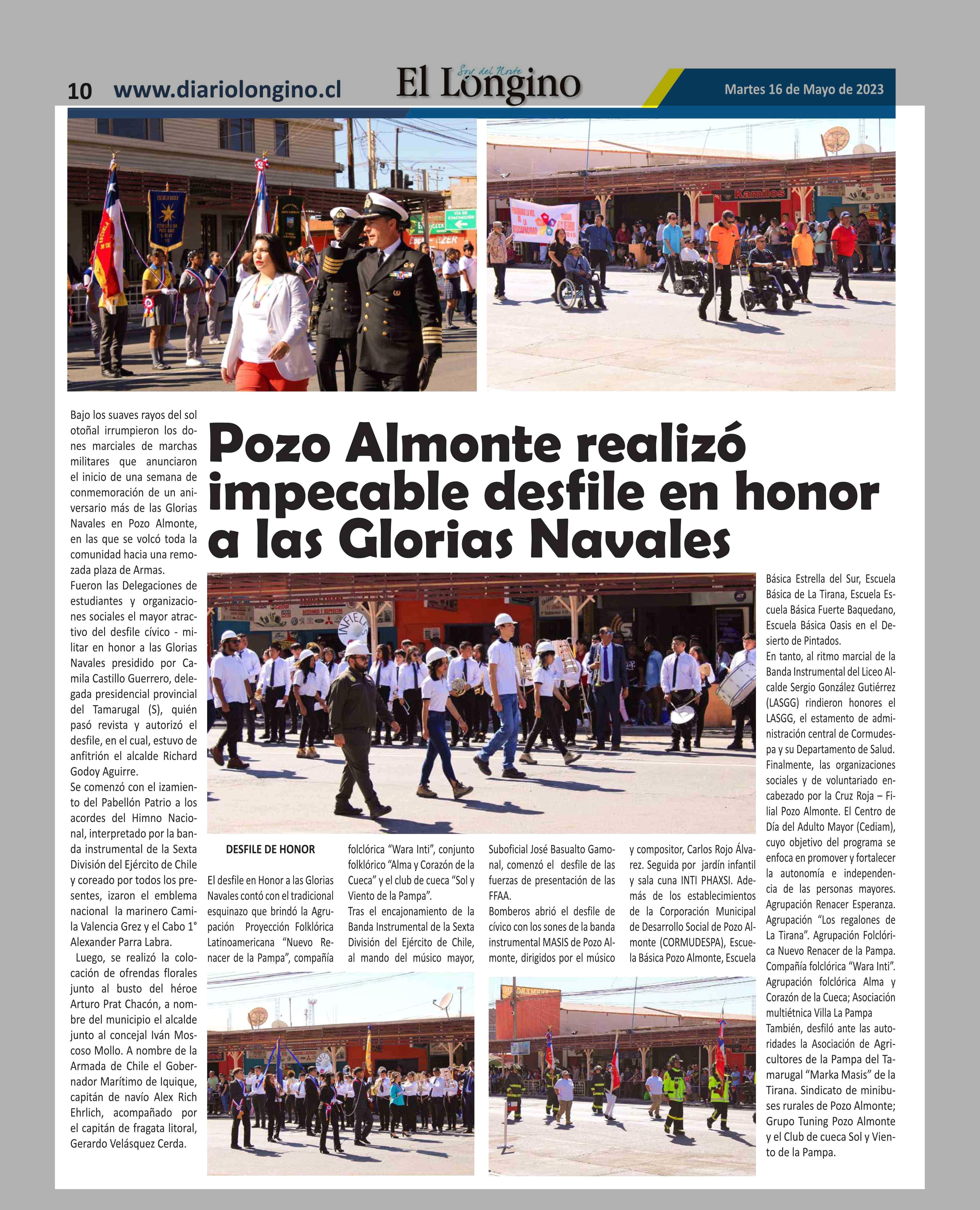 Pozo Almonte realizó impecable desfile en honor a las Glorias Navales 16-05-2023 El Longino |