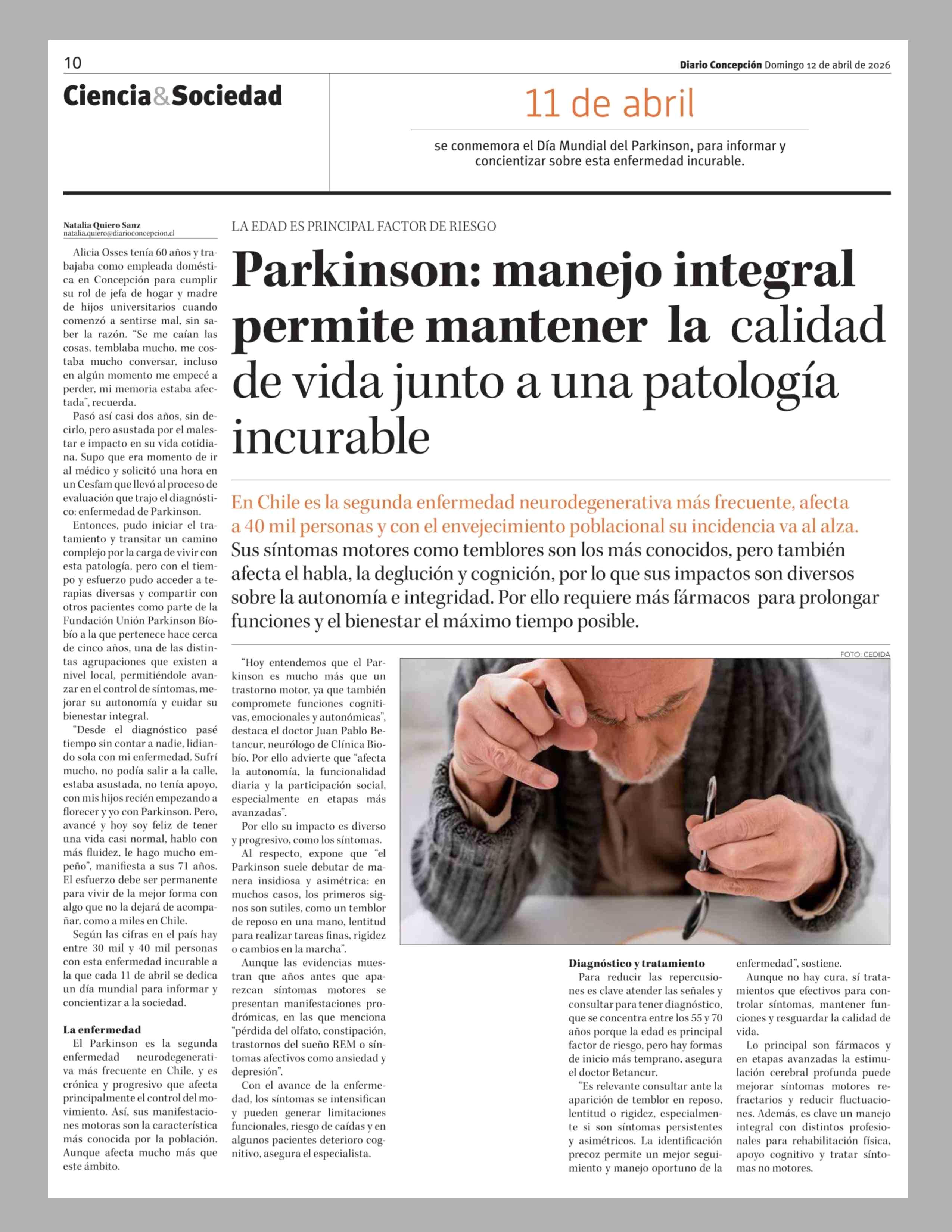 Título: Parkinson: manejo integral permite mantener la calidad de vida junto a una patología incurable