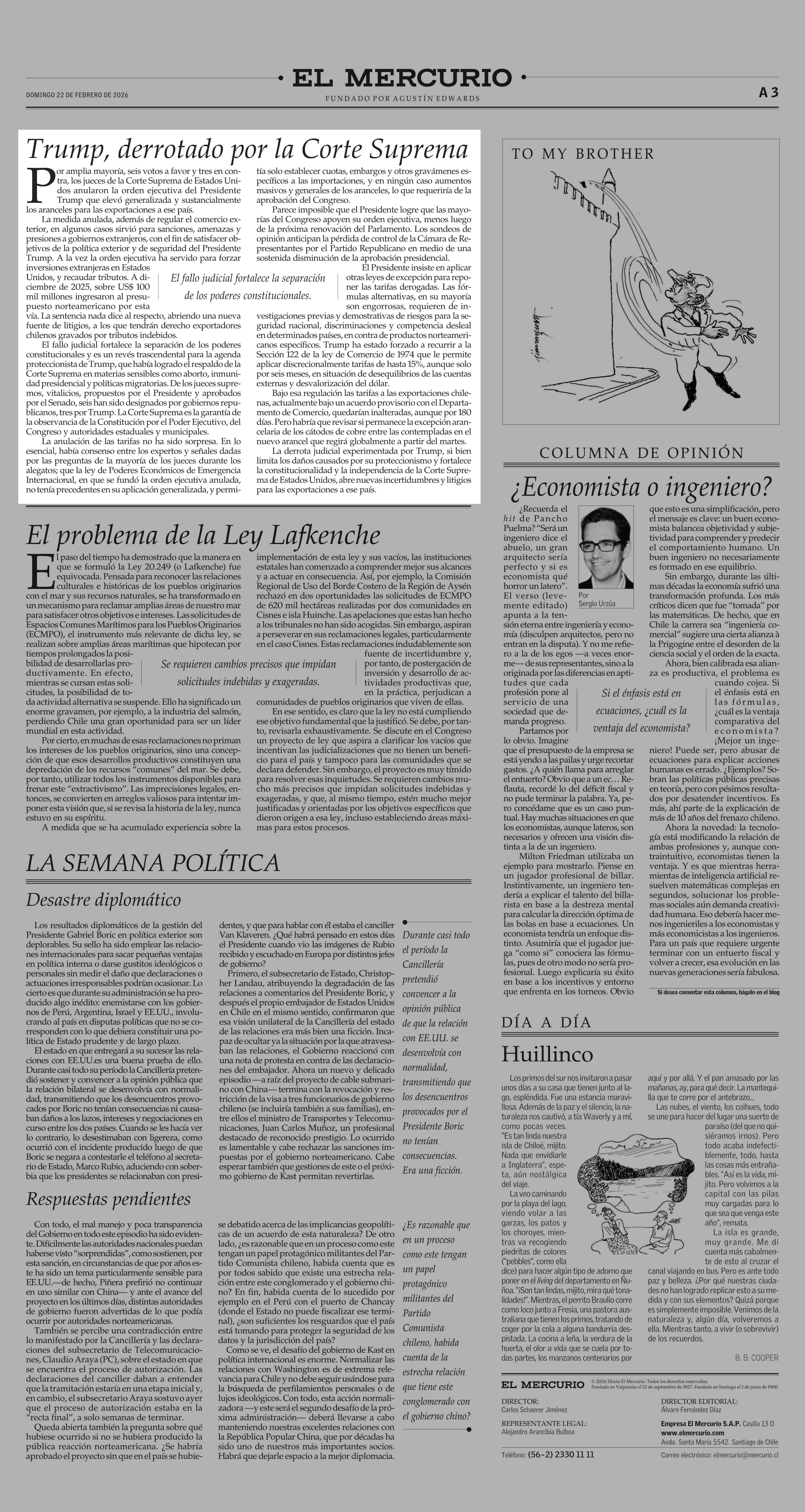 Editorial: Trump, derrotado por la Corte Suprema 22-02-2026 El Mercurio |