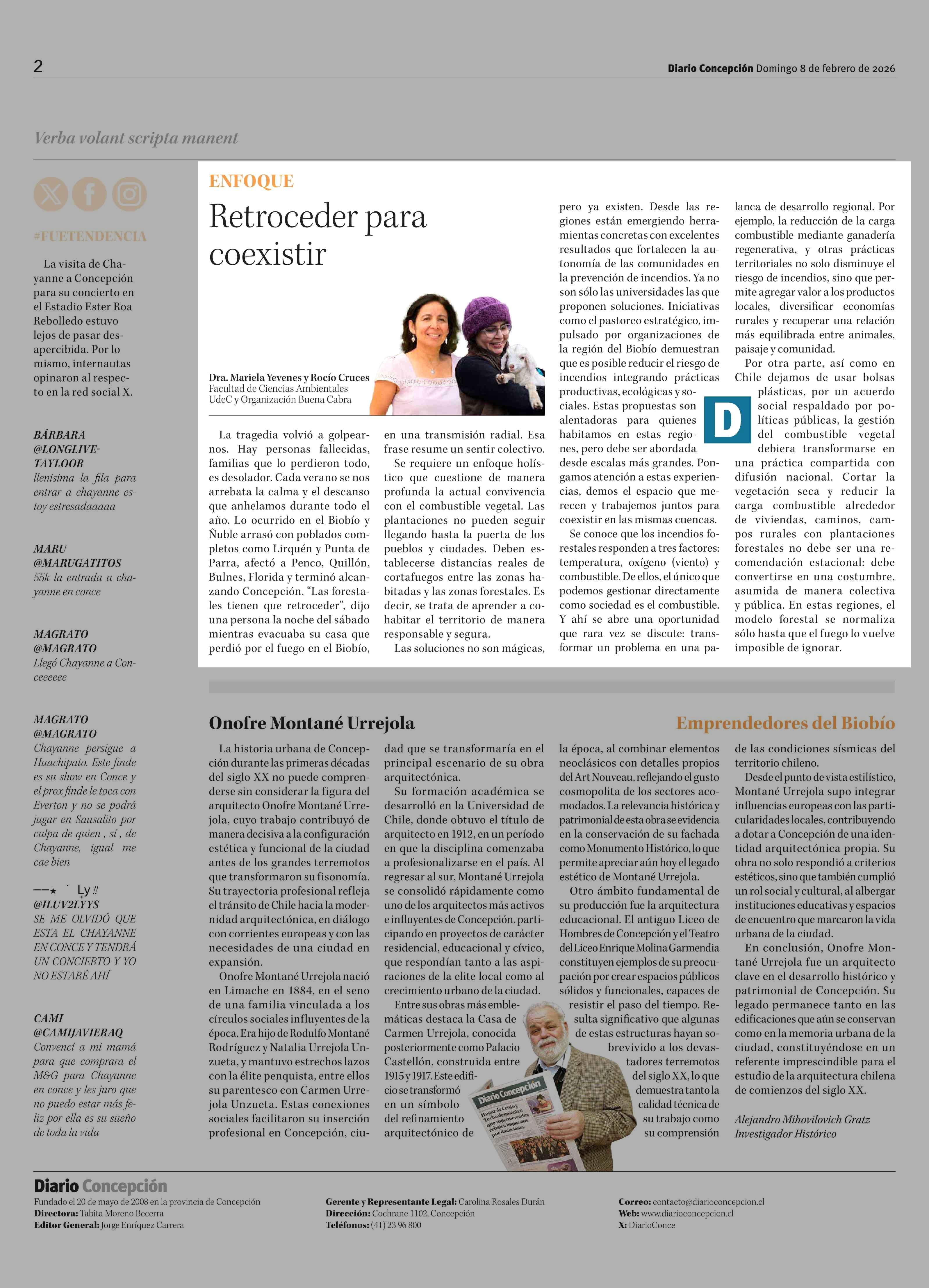 Columnas de Opinión: Retroceder para coexistir 08-02-2026 Diario Concepción |