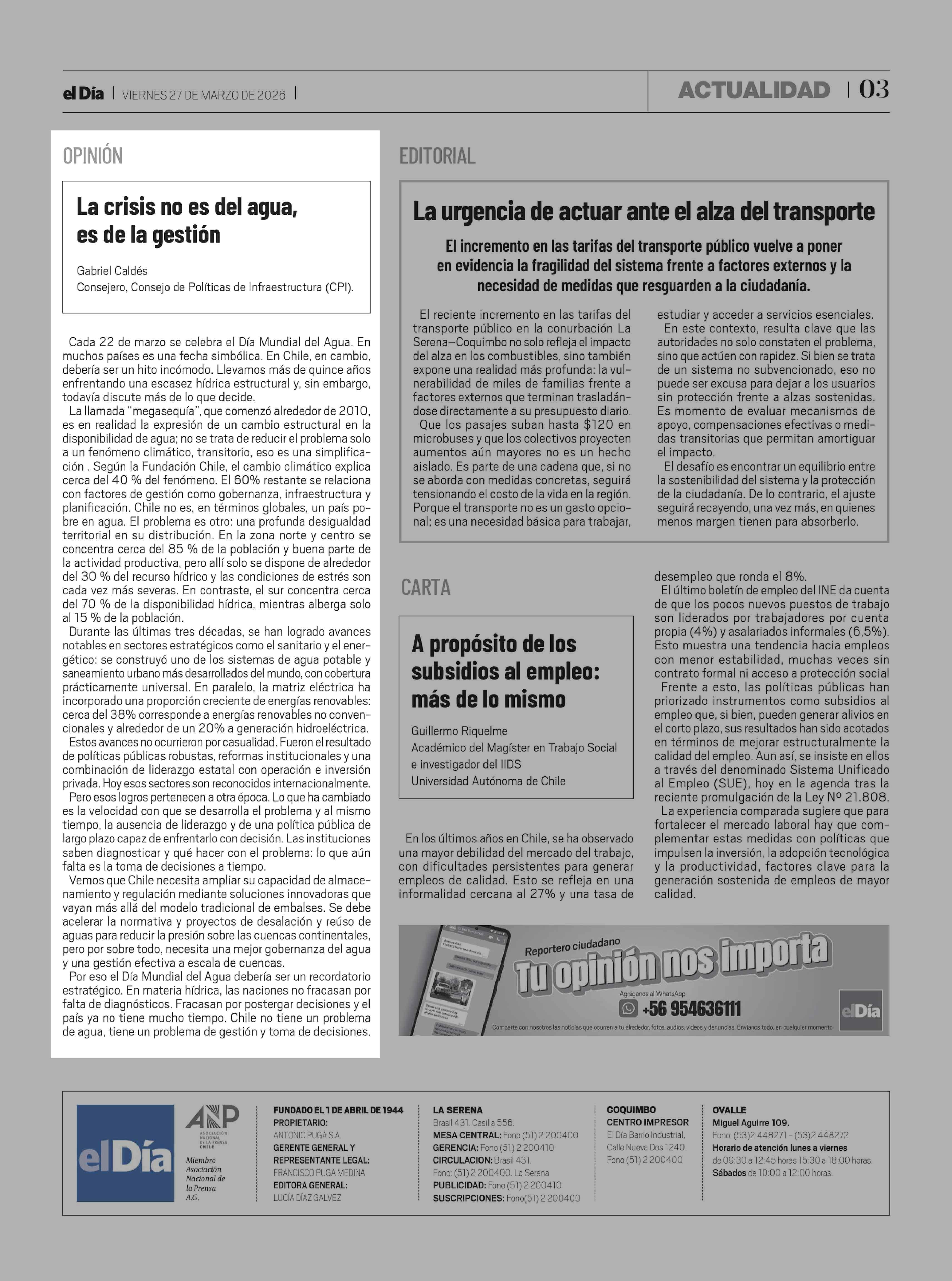 Fecha: 27-03-2026 Sector: Columnas de Opinión Región: Región de Coquimbo