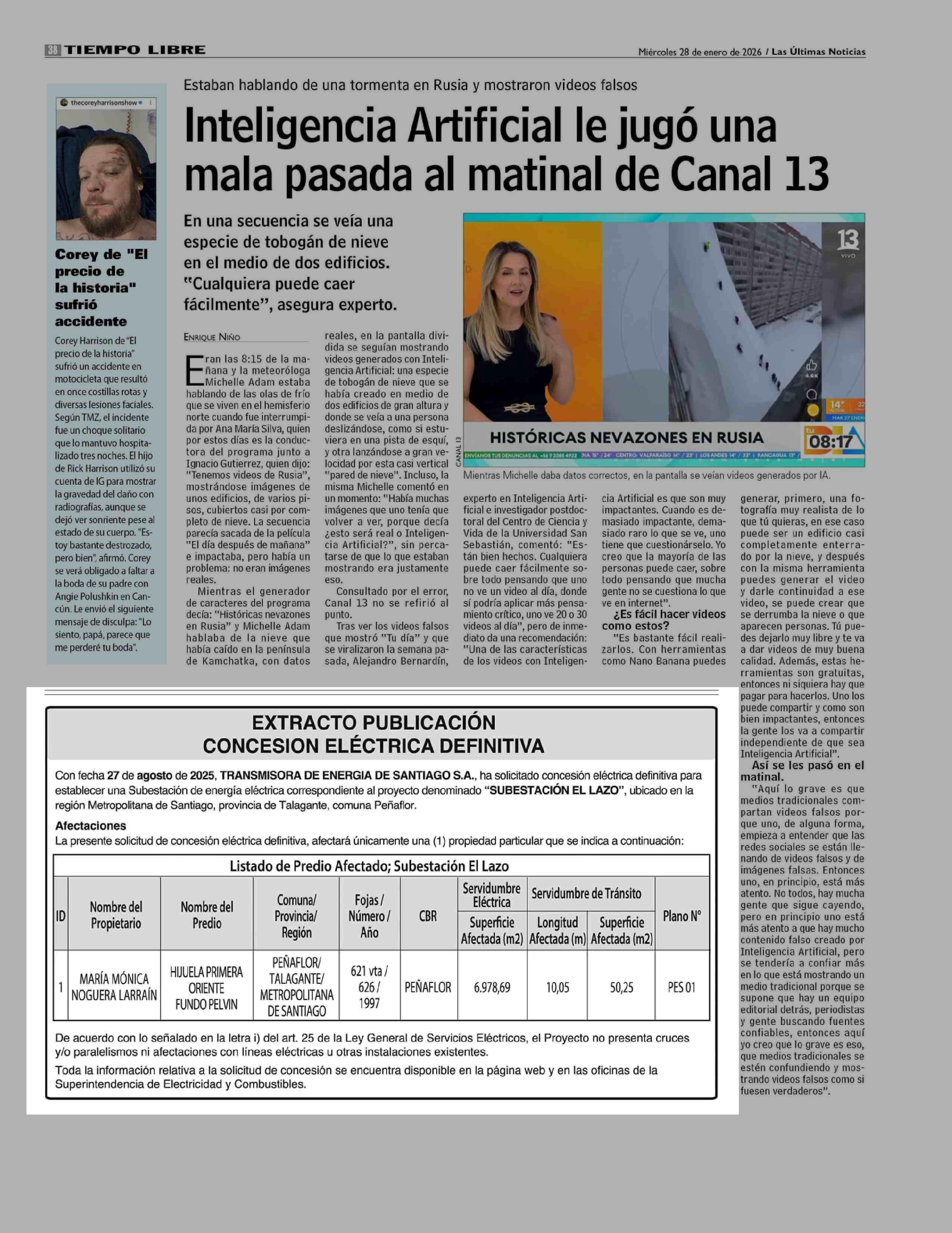 Extractos: EXTRACTO PUBLICACIÓN CONCESION ELÉCTRICA DEFINITIVA 28-01-2026 Las Últimas Noticias |