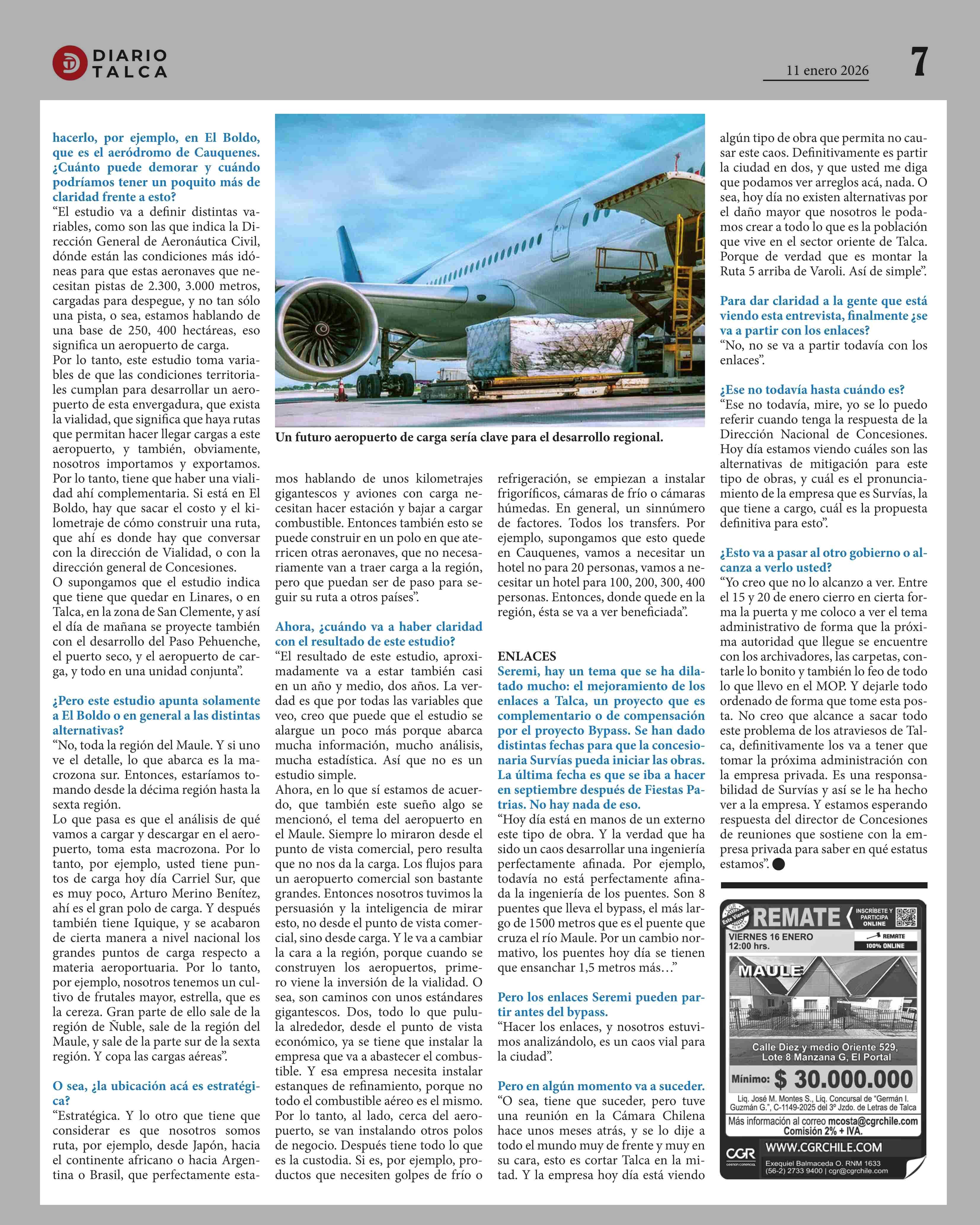 "Le va a cambiar la cara a la región" 11-01-2026 Diario Talca |