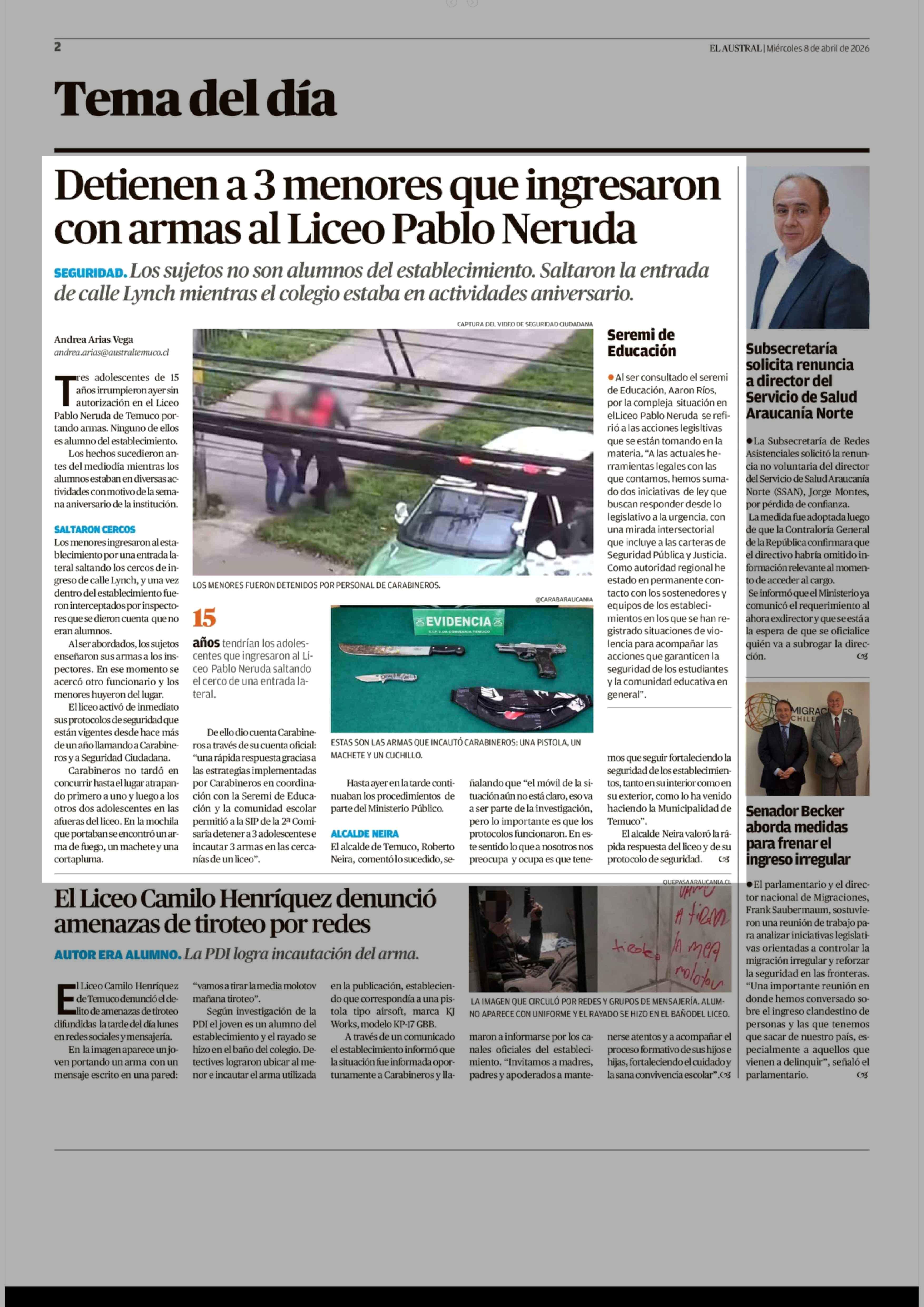 Fecha: 08-04-2026 Sector: Noticia general Región: Región de la Araucanía