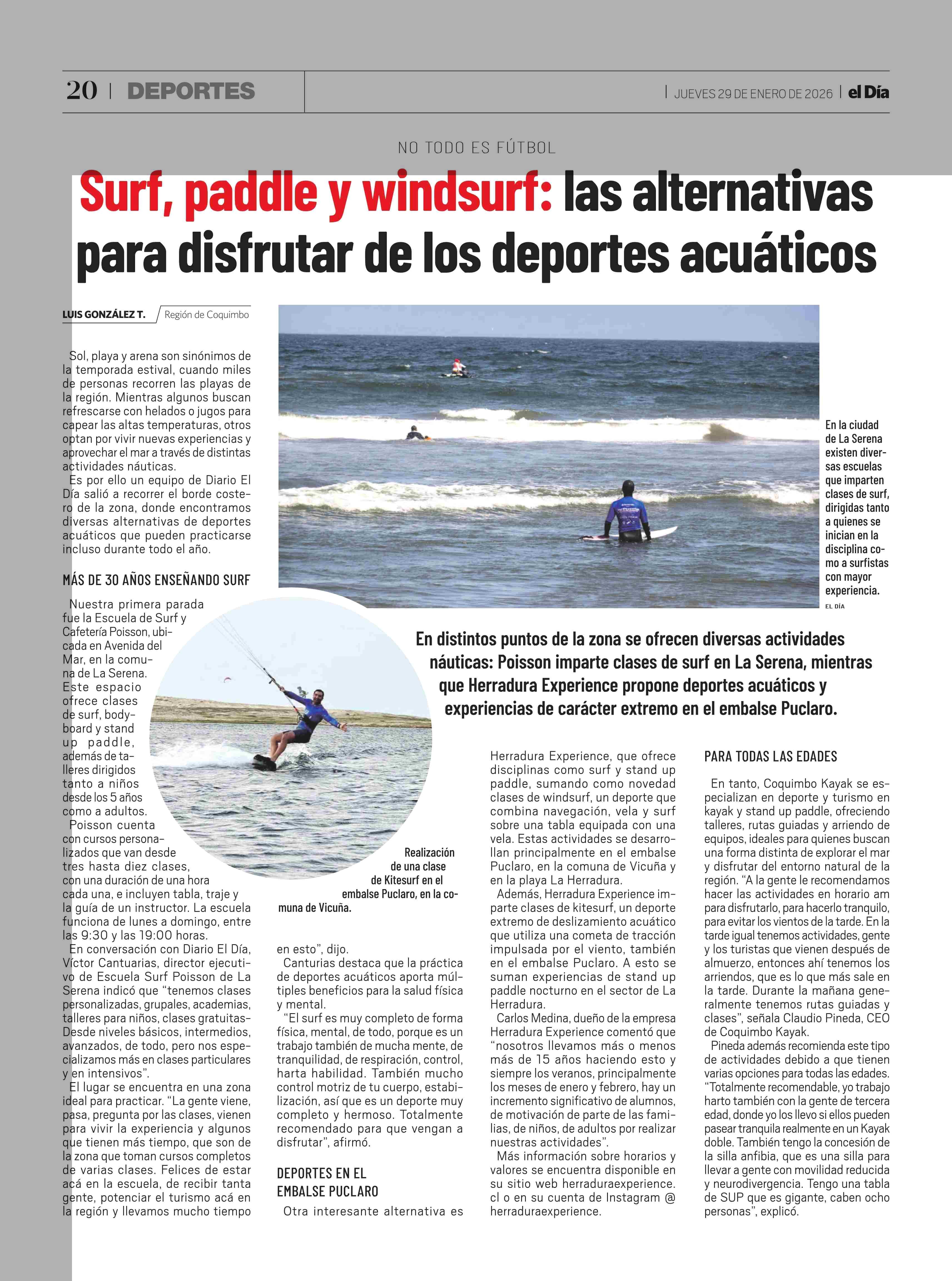 Surf, paddle y windsurf: las alternativas para disfrutar de los deportes acuáticos 29-01-2026 El Día |