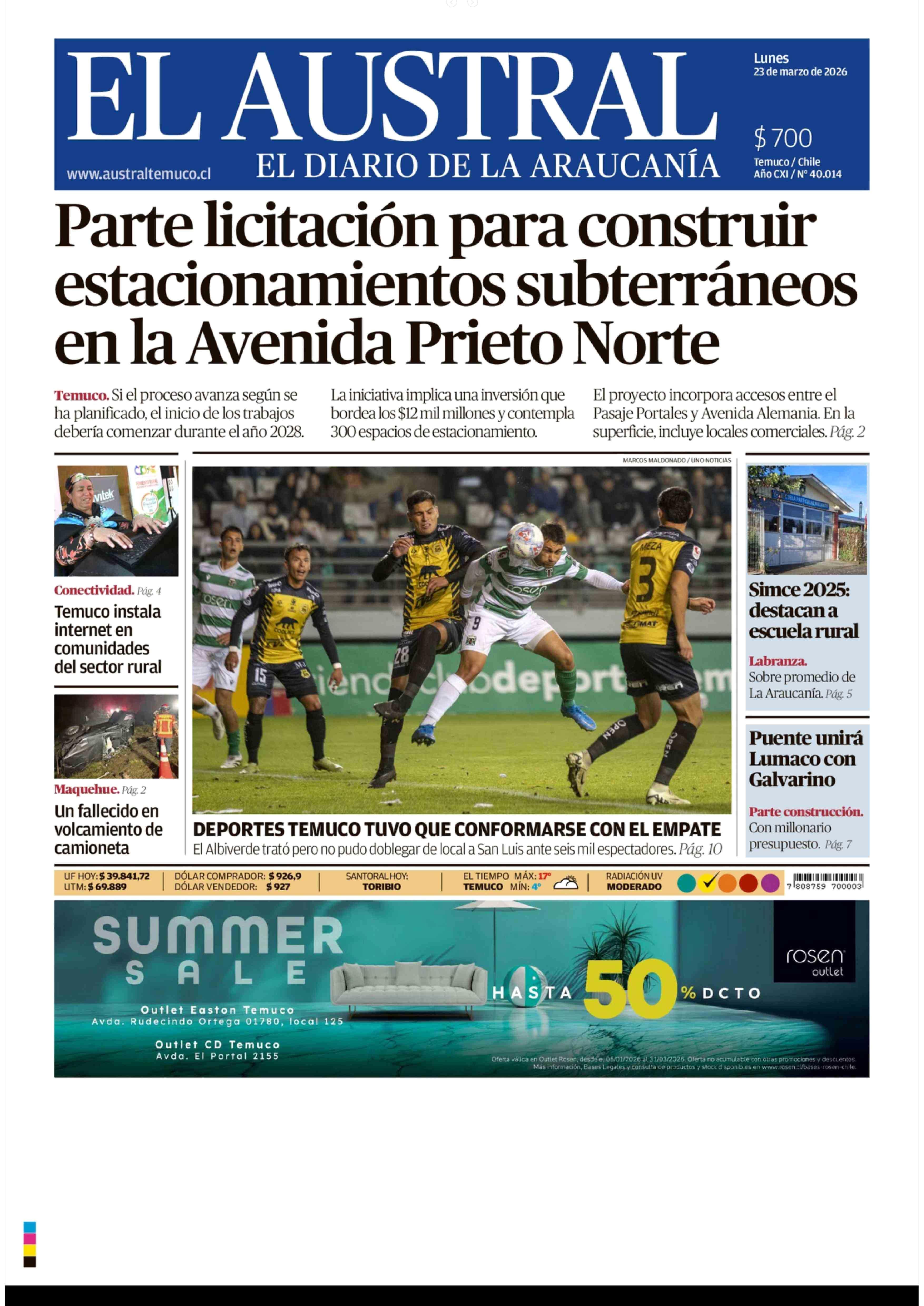 Fecha: 23-03-2026 Sector: Portada Región: Región de la Araucanía