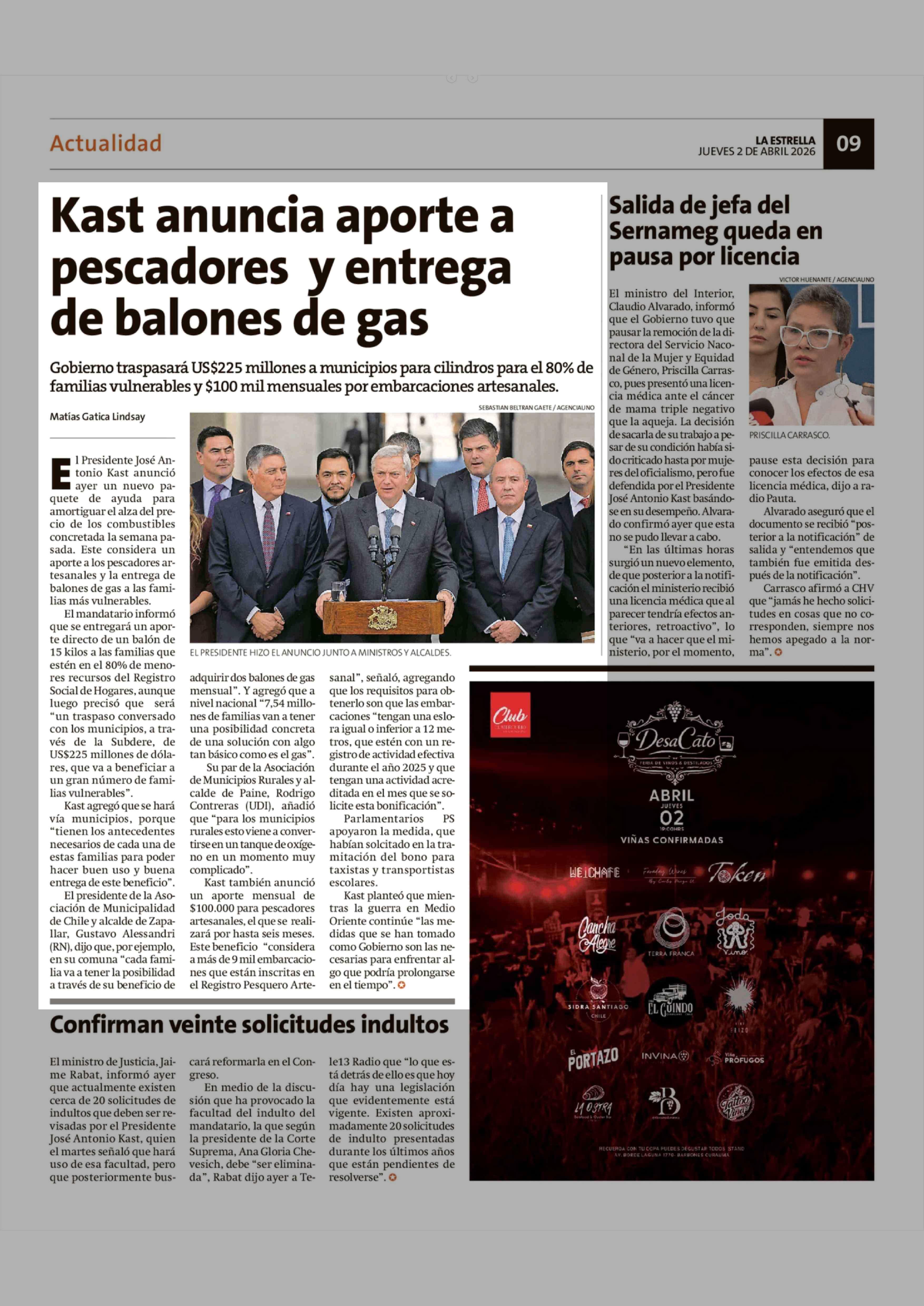 Título: Kast anuncia aporte a pescadores y entrega de balones de gas