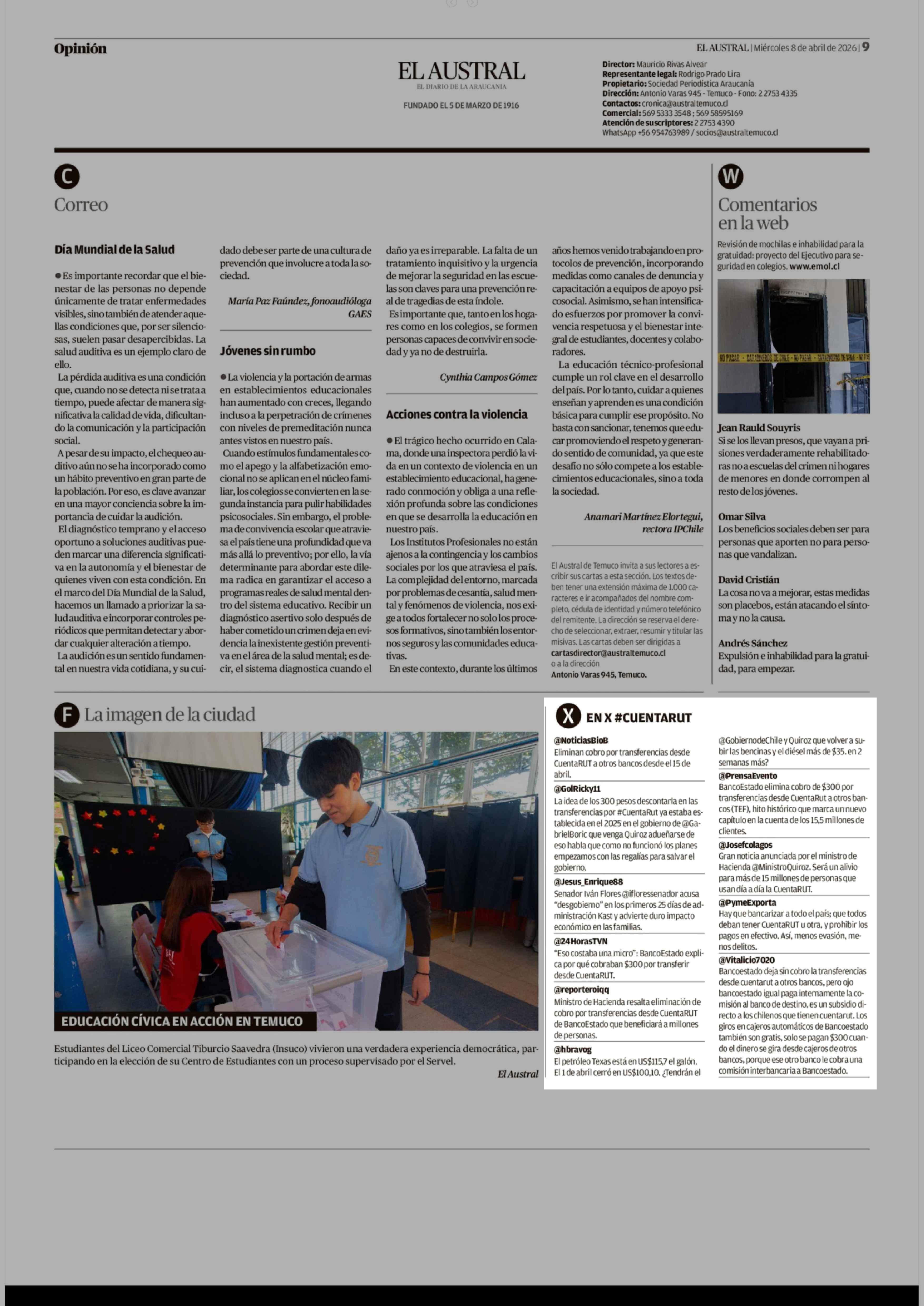 Fuente: El Austral de la Araucanía (El Austral de la Araucanía) Página(s): 9