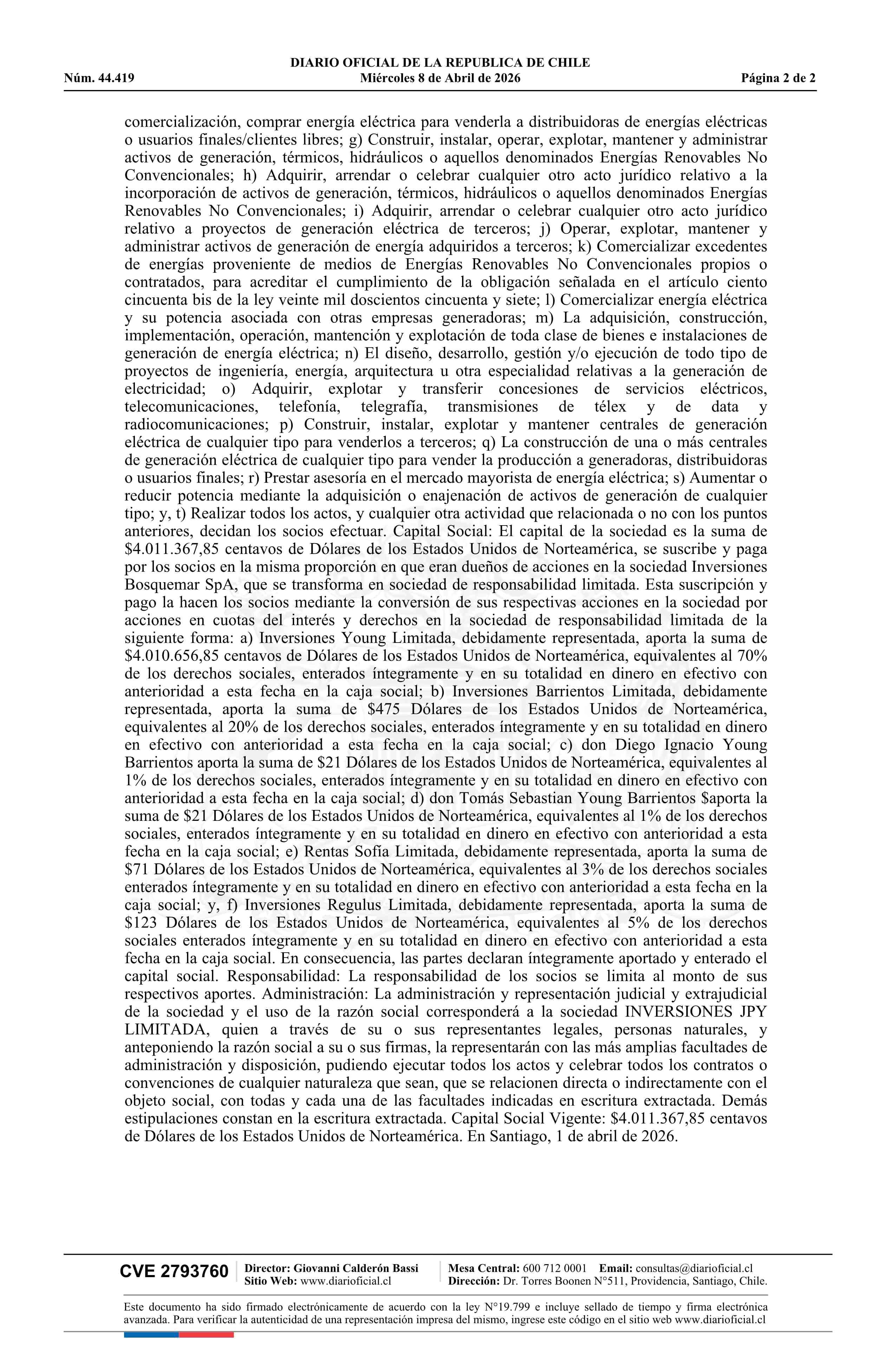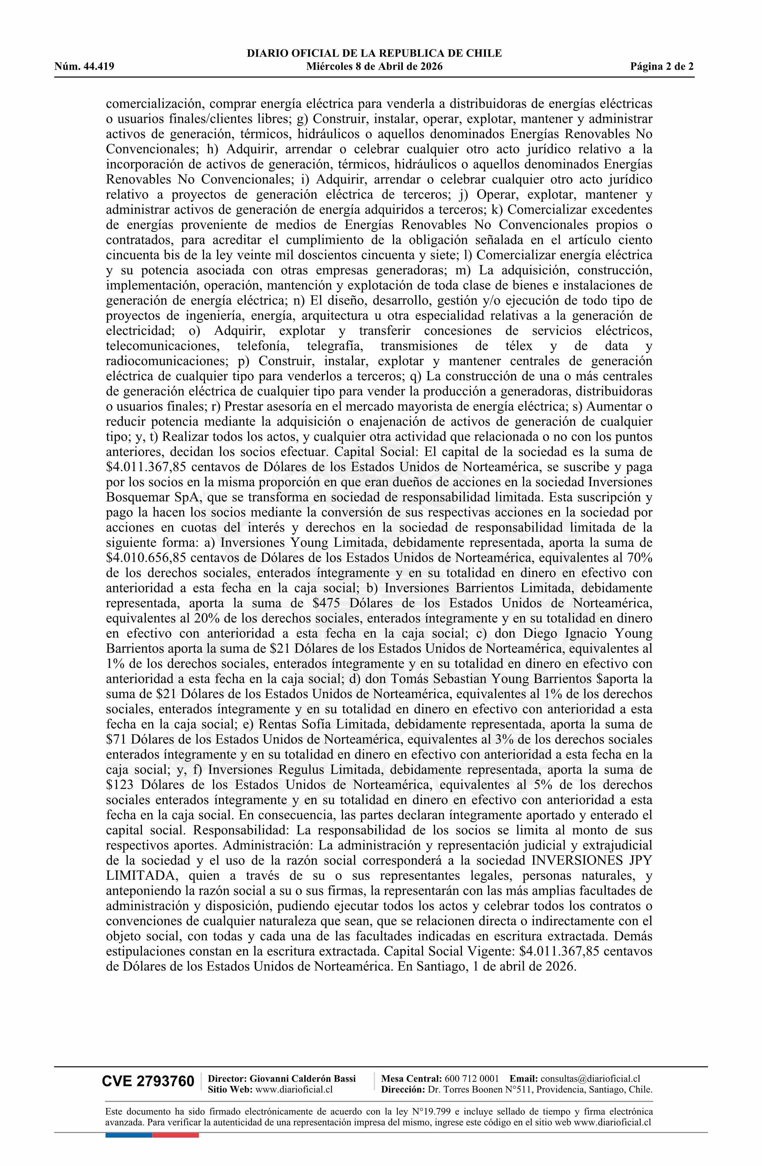 Inversiones Bosquemar SpA 77.686.470-6 08-04-2026 Diario Oficial Edición Electrónica |