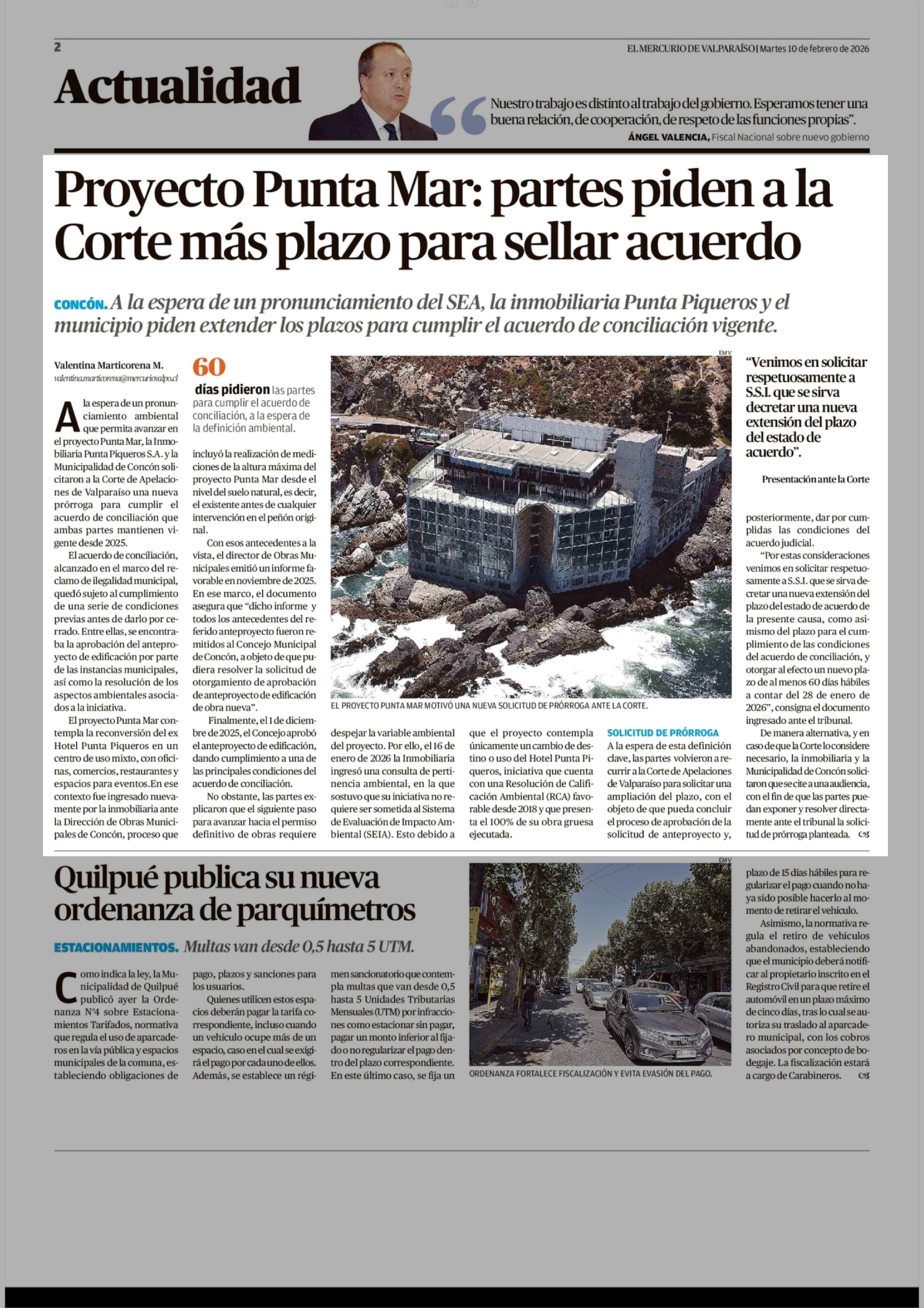 Proyecto Punta Mar: partes piden a la Corte más plazo para sellar acuerdo 10-02-2026 El Mercurio de Valparaíso |