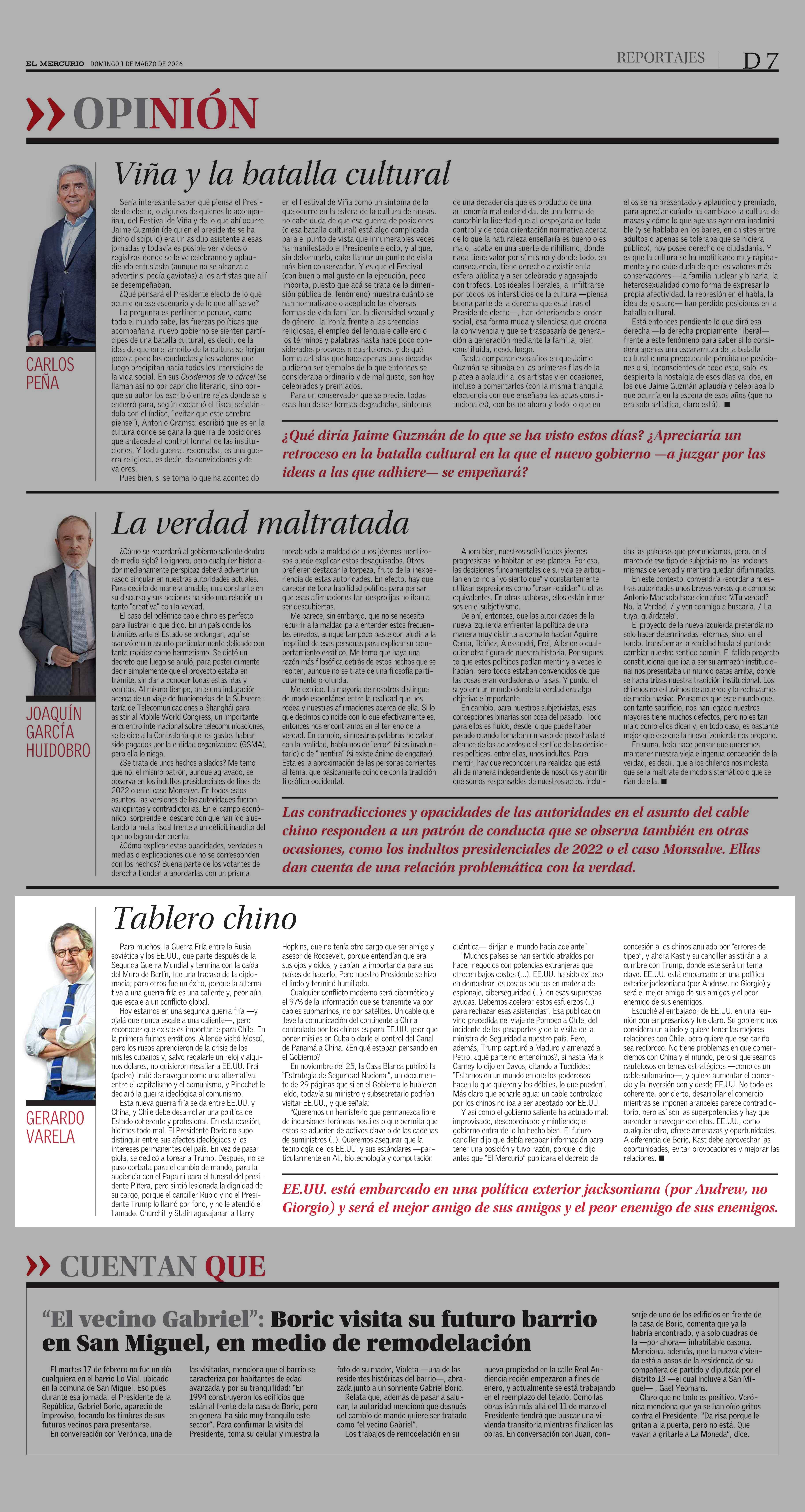 Columnas de Opinión: Tablero chino 01-03-2026 El Mercurio |