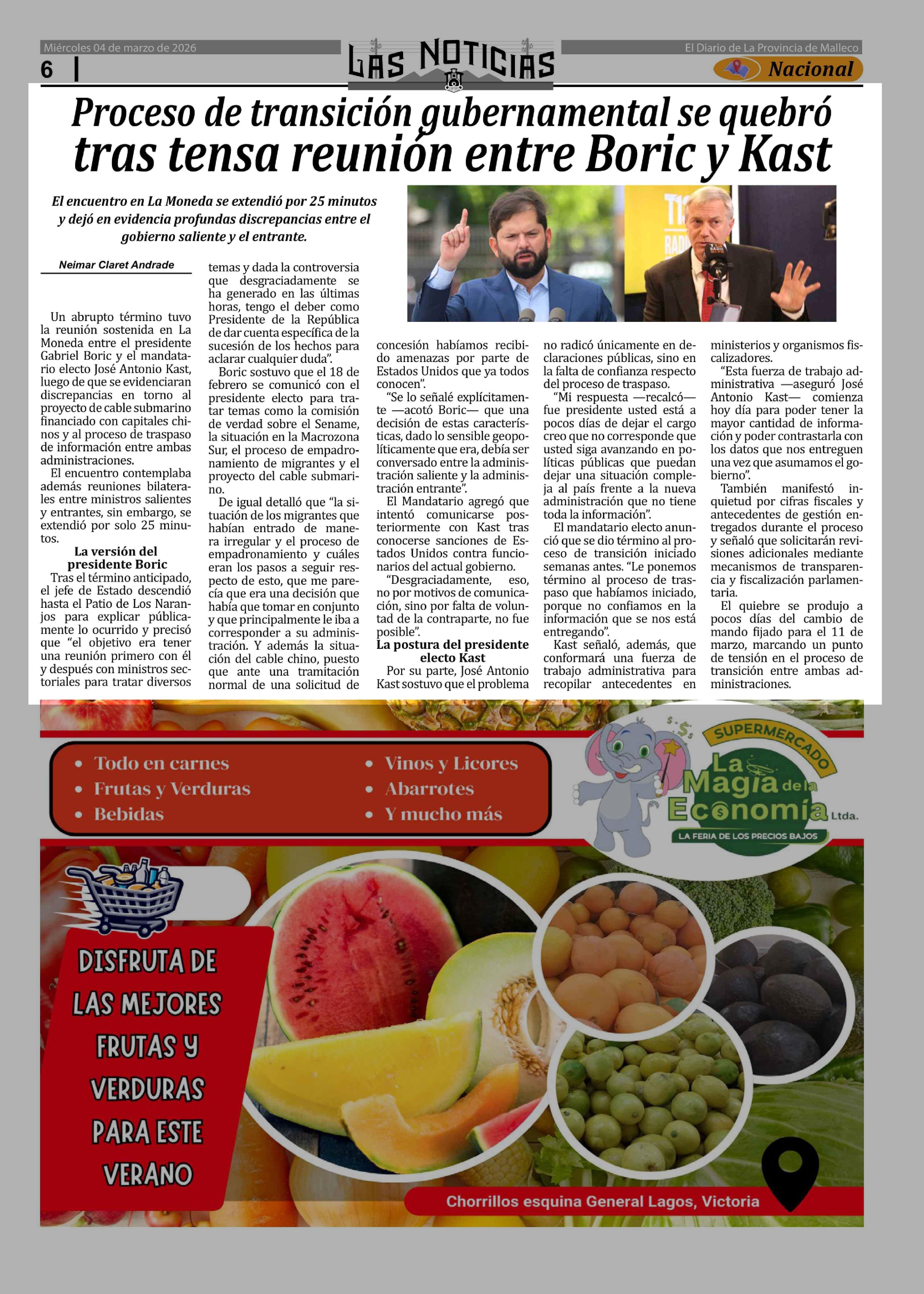 Título: Proceso de transición gubernamental se quebró tras tensa reunión entre Boric y Kast