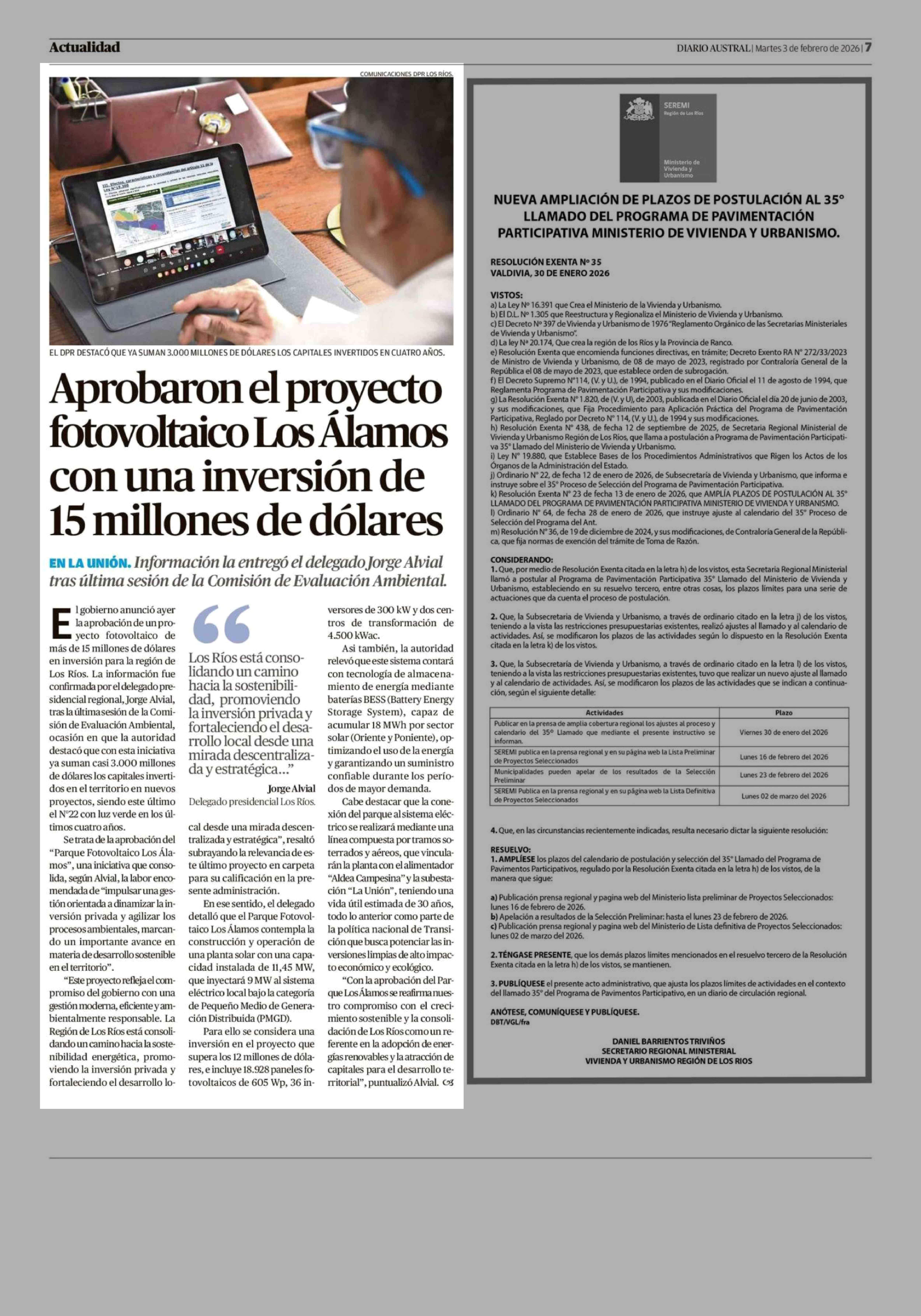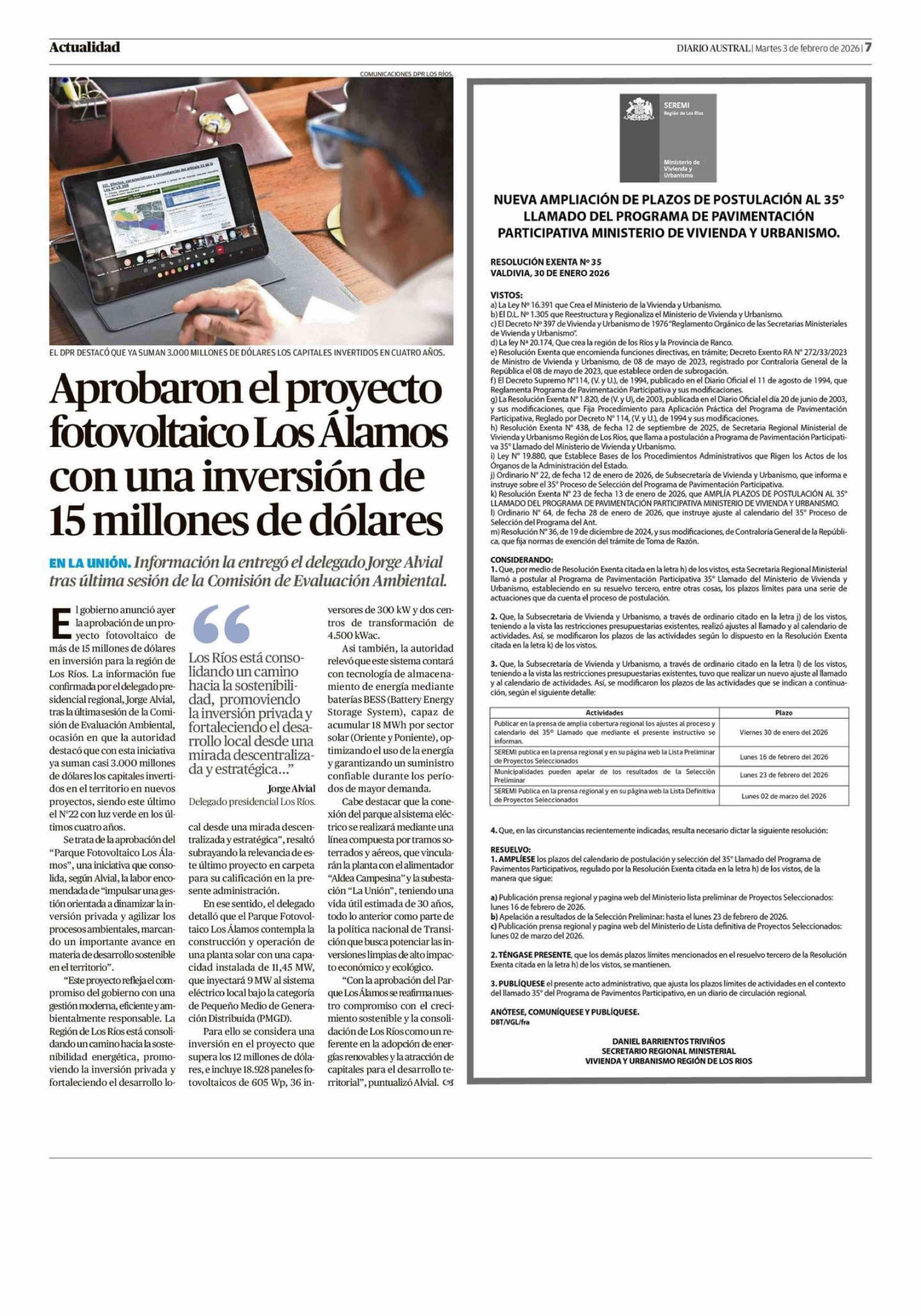 Título: Aprobaron el proyecto fotovoltaico Los Álamos con una inversión de 15 millones de dólares