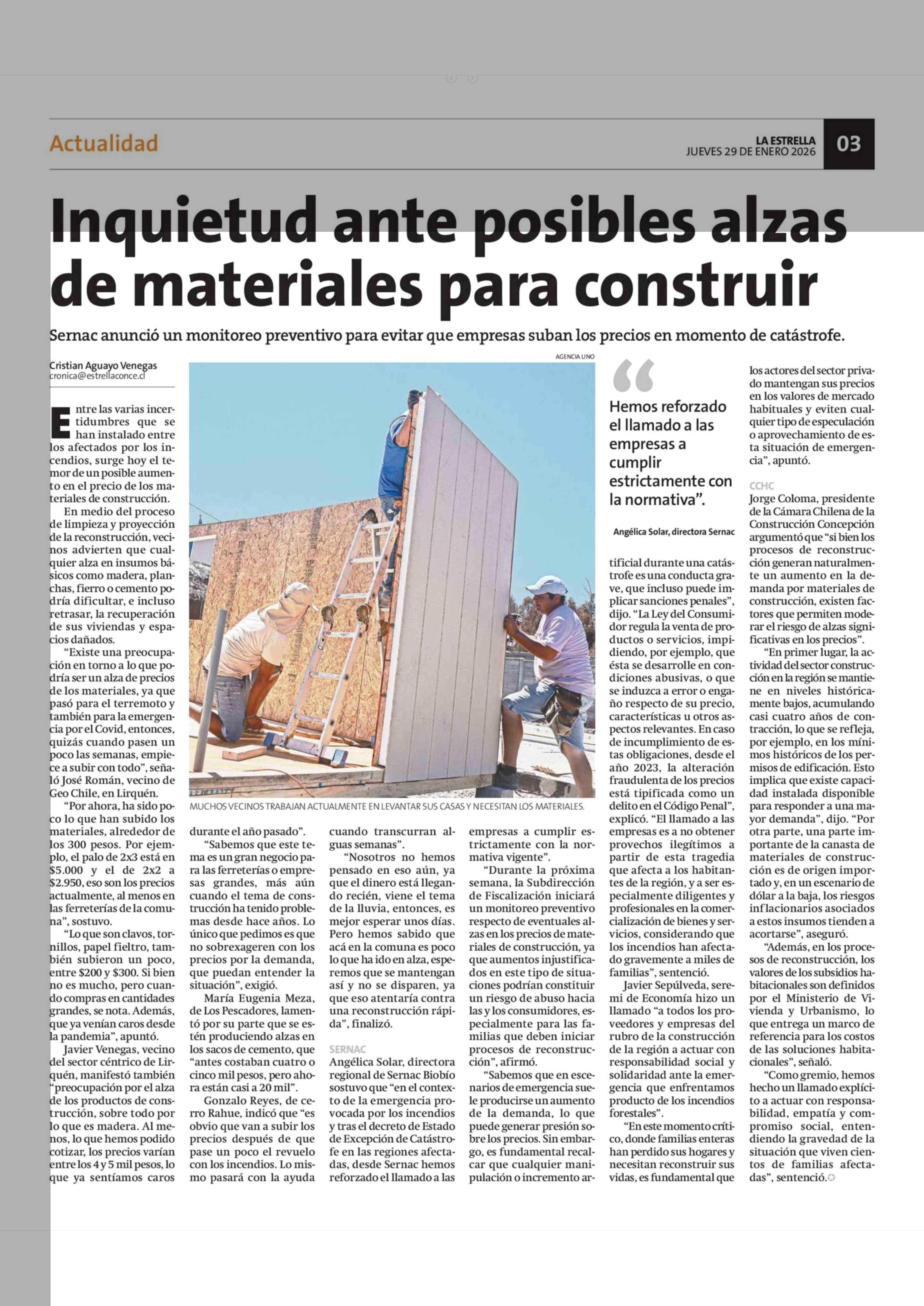 Título: Inquietud ante posibles alzas de materiales para construir