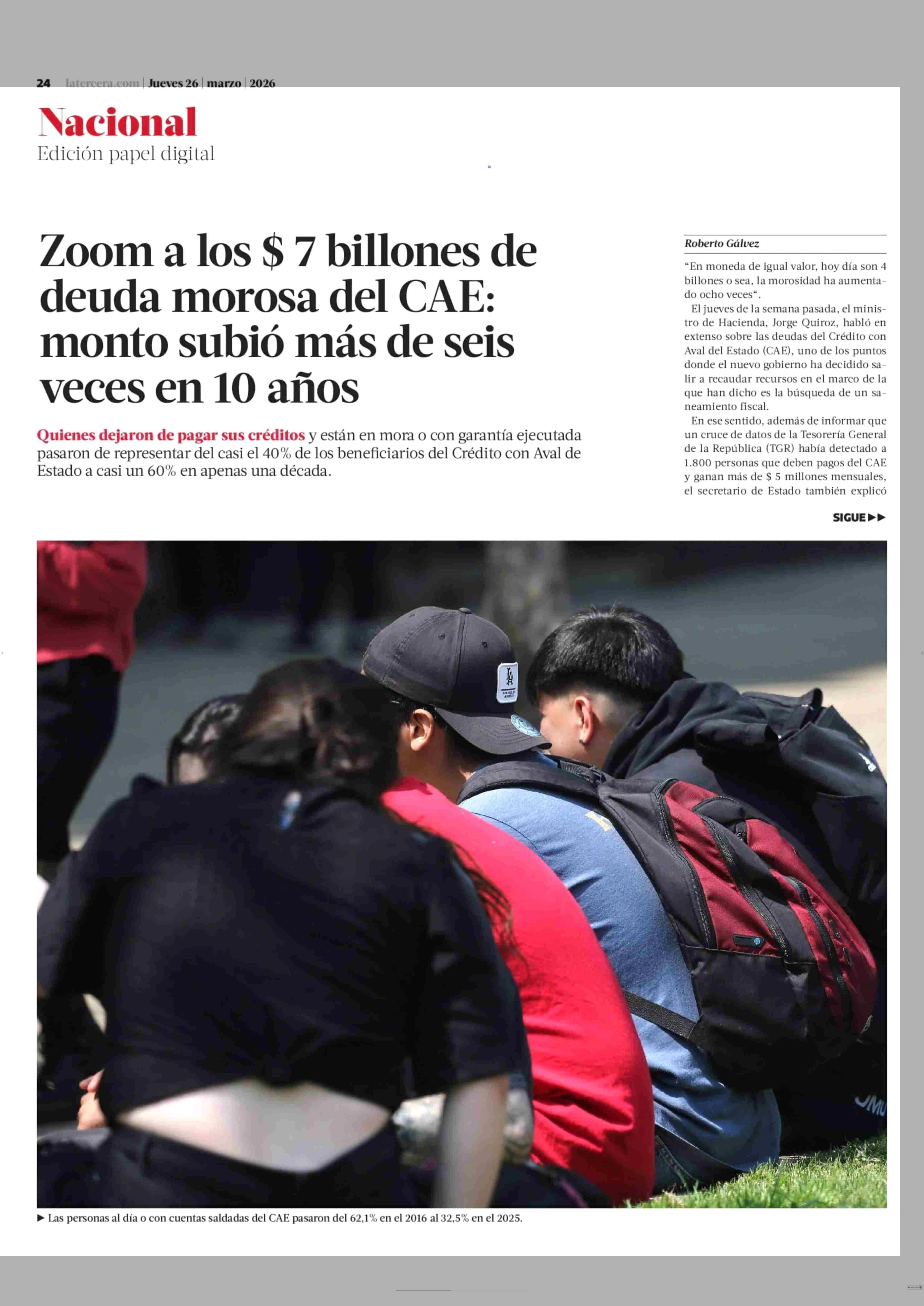 Título: Zoom a los $ 7 billones de deuda morosa del CAE: monto subió más de seis veces en 10 años