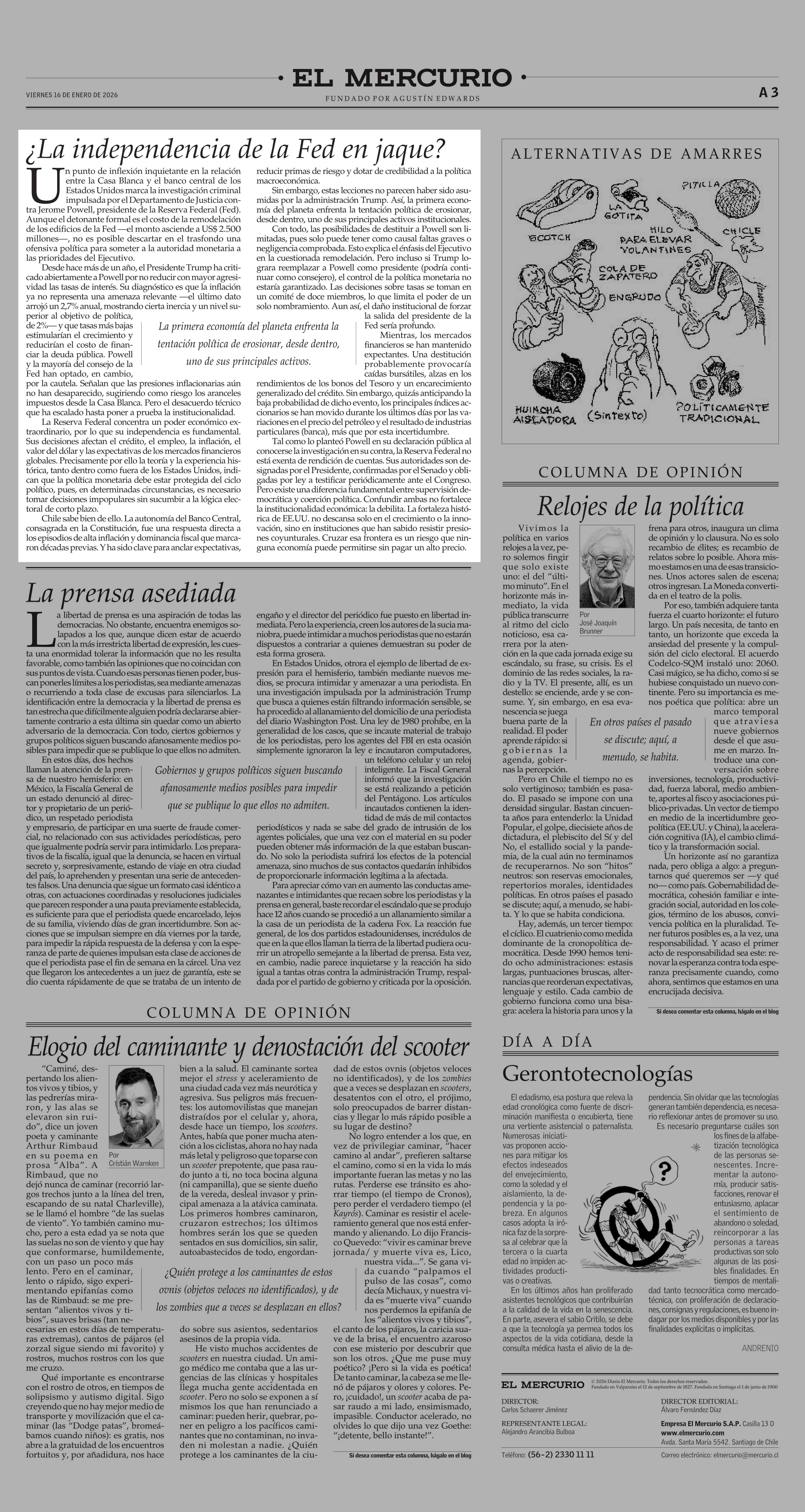 Editorial: ¿La independencia de la Fed en jaque? 16-01-2026 El Mercurio |