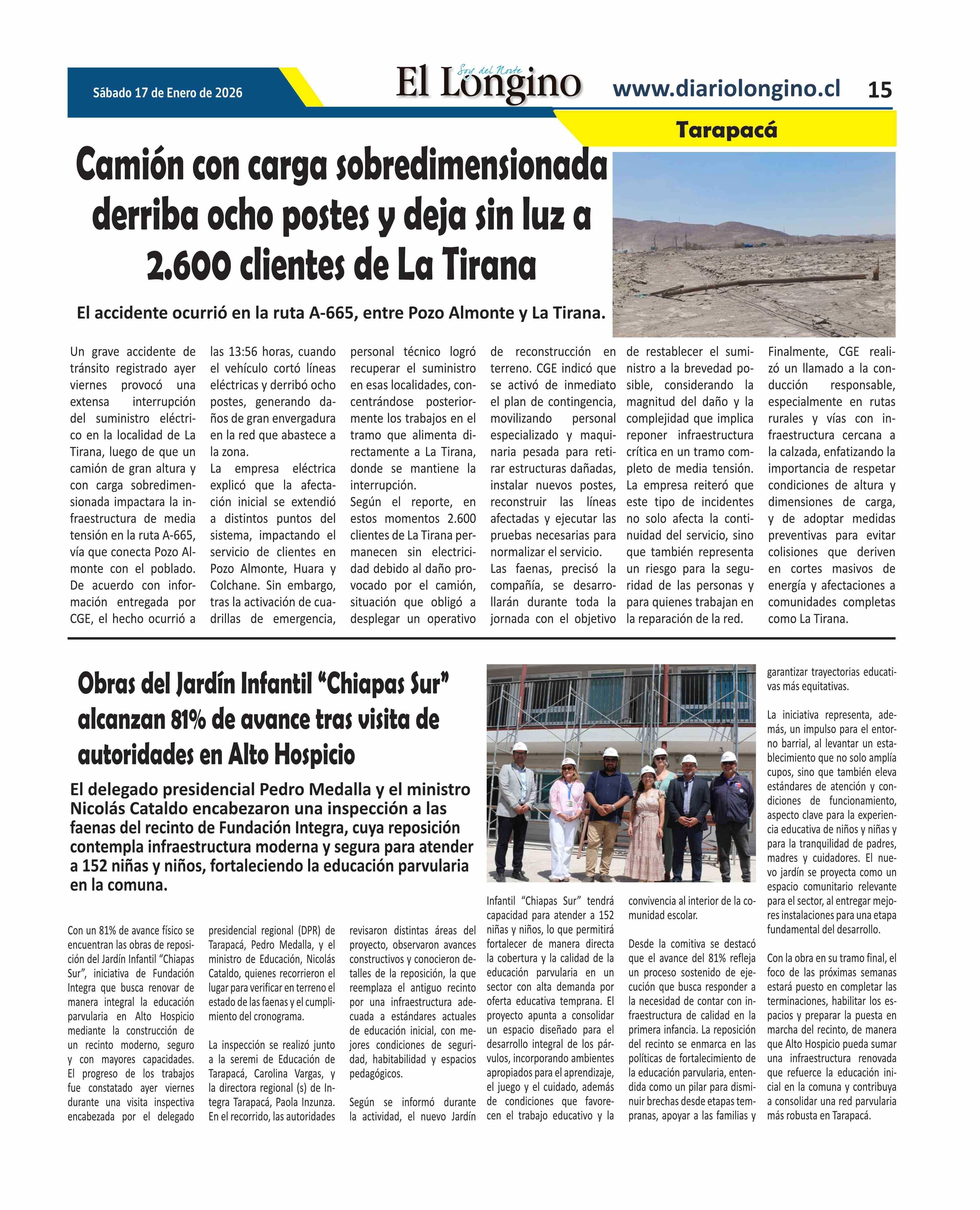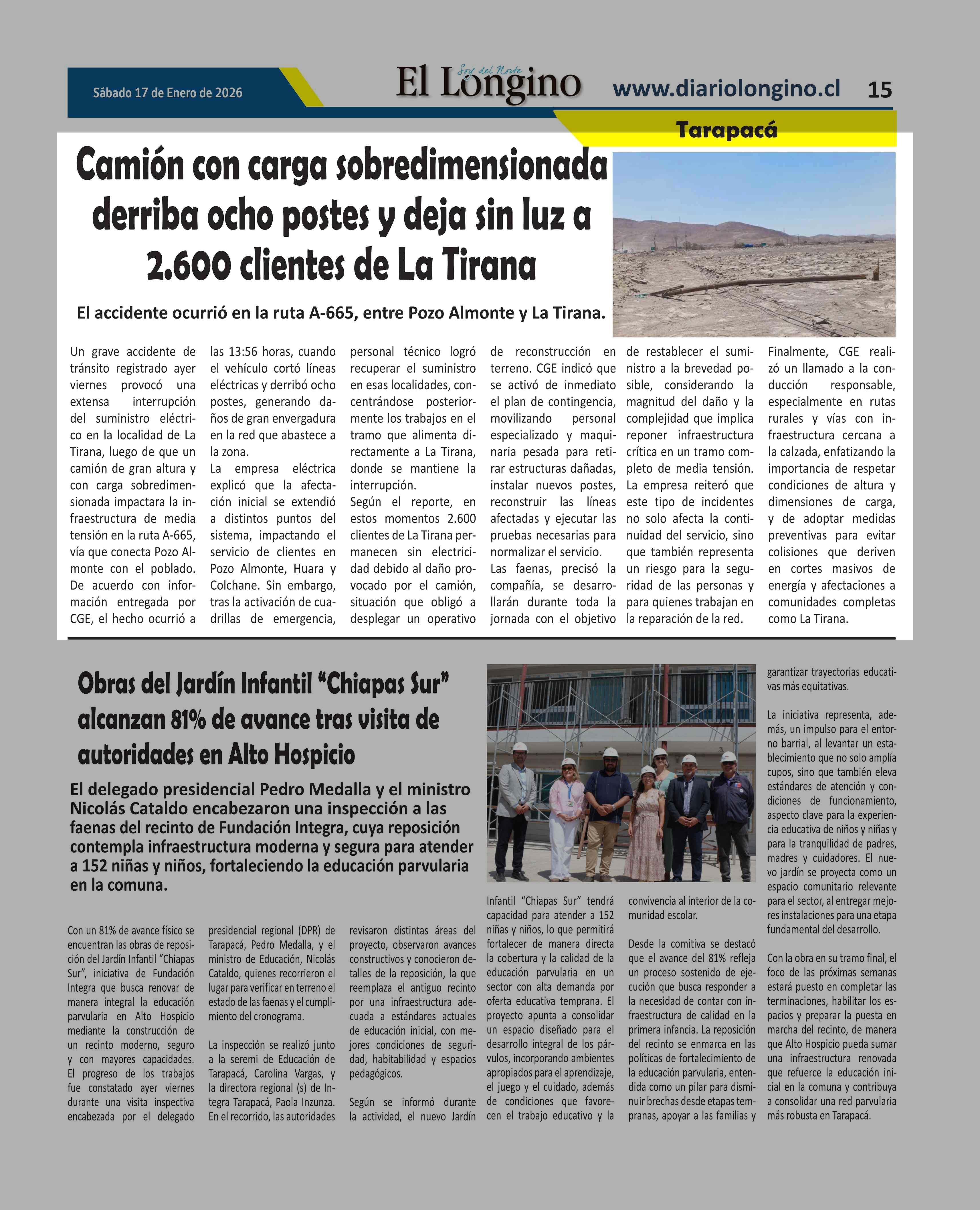 | Fecha: | 17-01-2026 | Sector: | Noticia general | Región: | Región de Tarapacá |