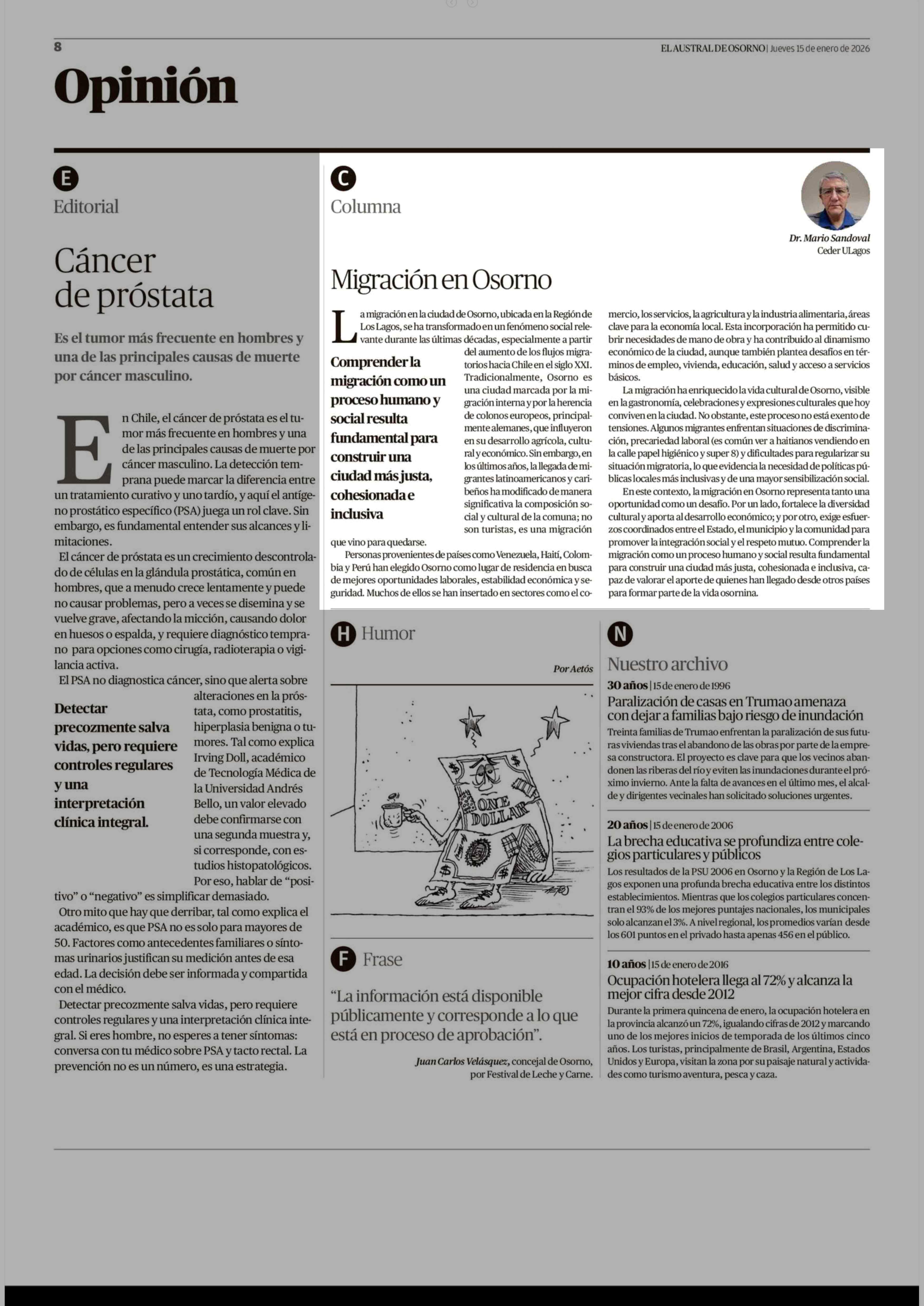 Fecha: 15-01-2026 Sector: Columnas de Opinión Región: Región de Los Lagos