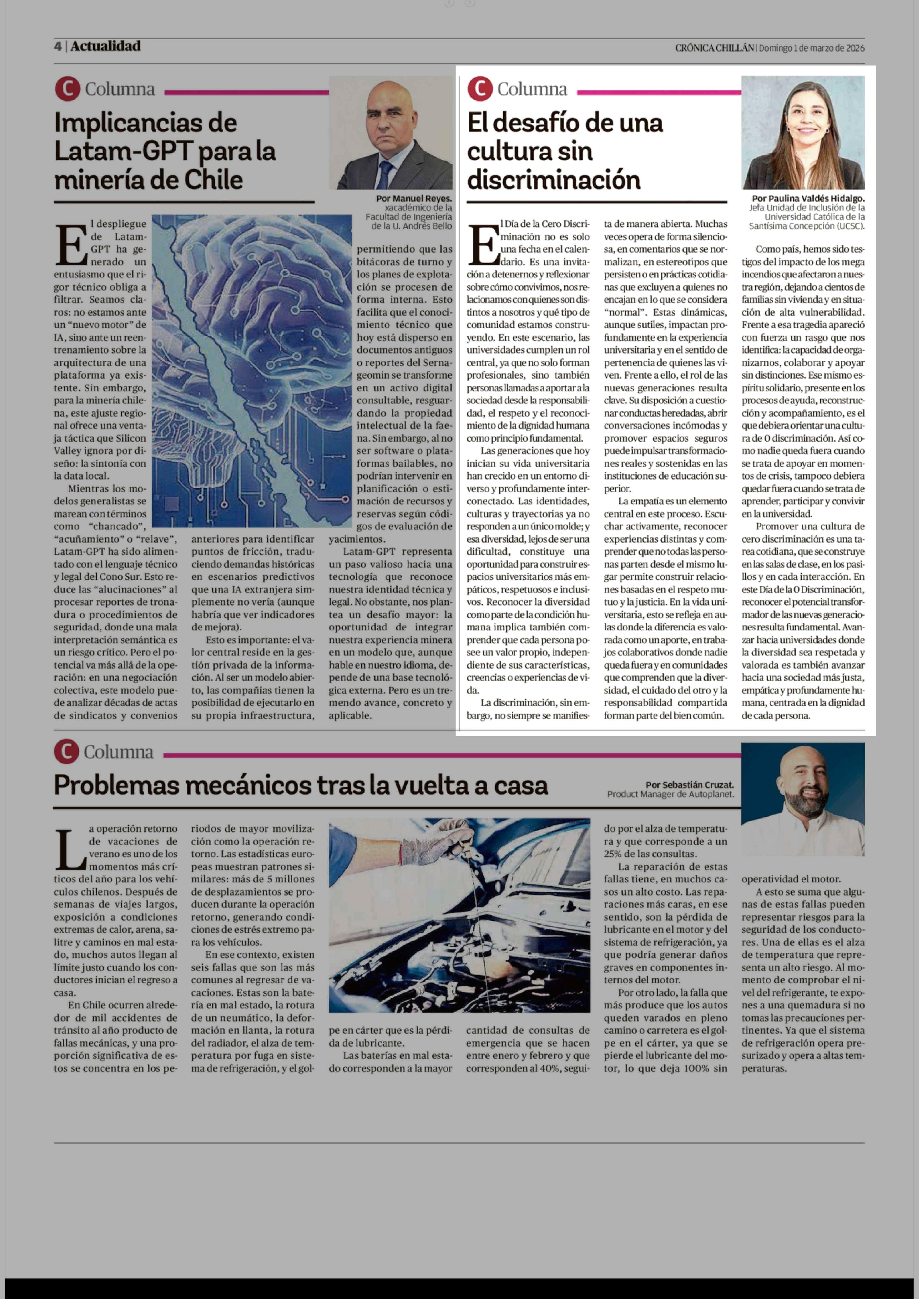 Fecha: 01-03-2026 Sector: Columnas de Opinión Región: Región del Ñuble