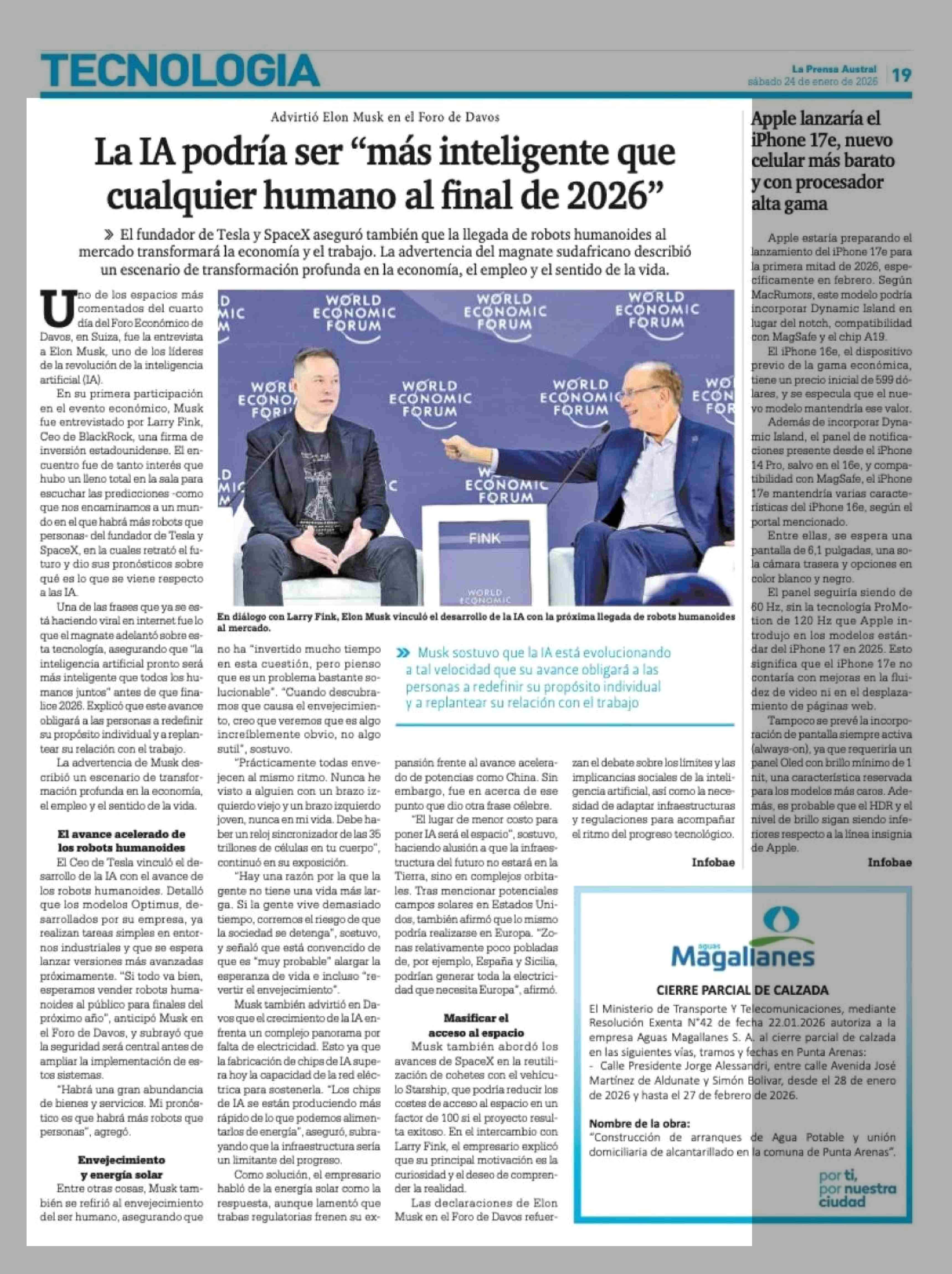 La IA podría ser "más inteligente que cualquier humano al final de 2026" 24-01-2026 La Prensa Austral |