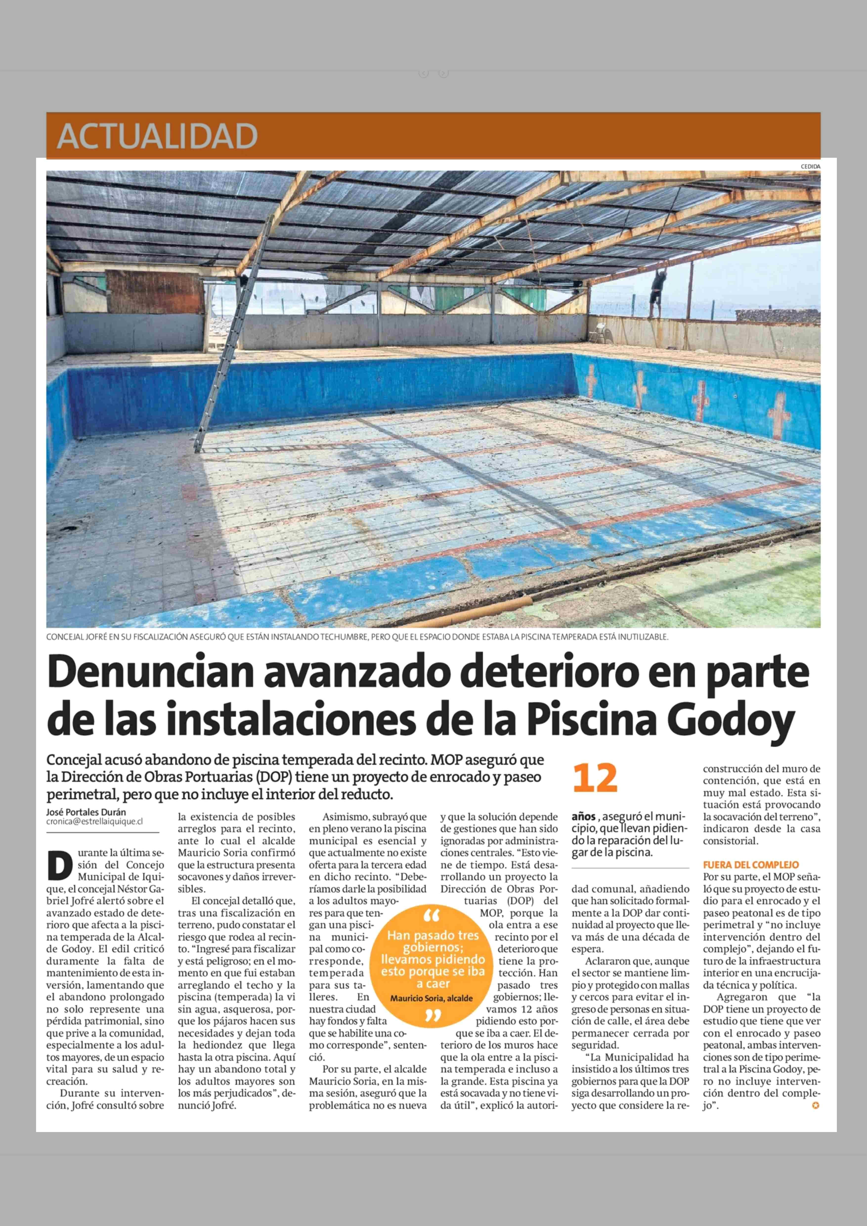 Denuncian avanzado deterioro en parte de las instalaciones de la Piscina Godoy 07-02-2026 La Estrella de Iquique |