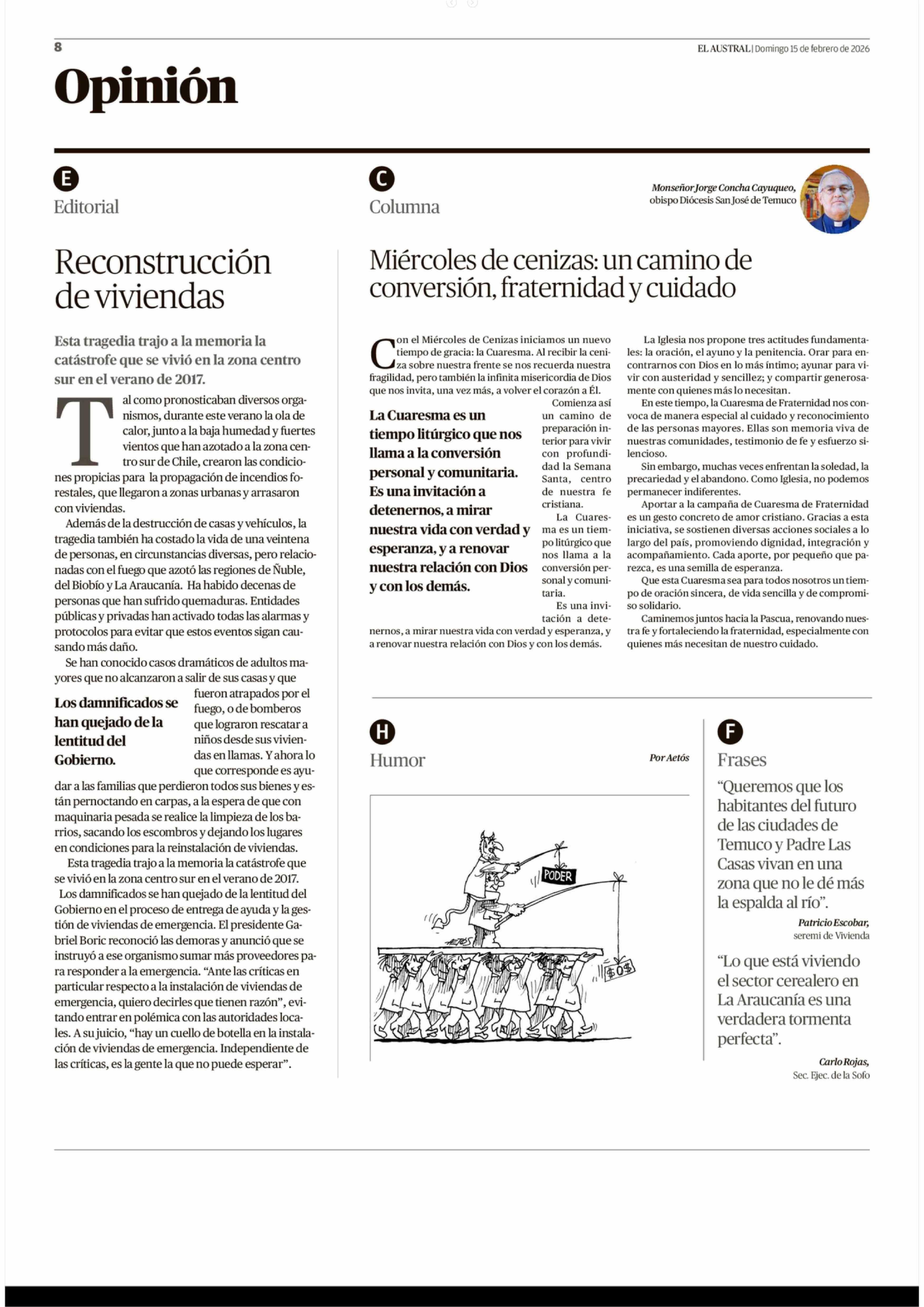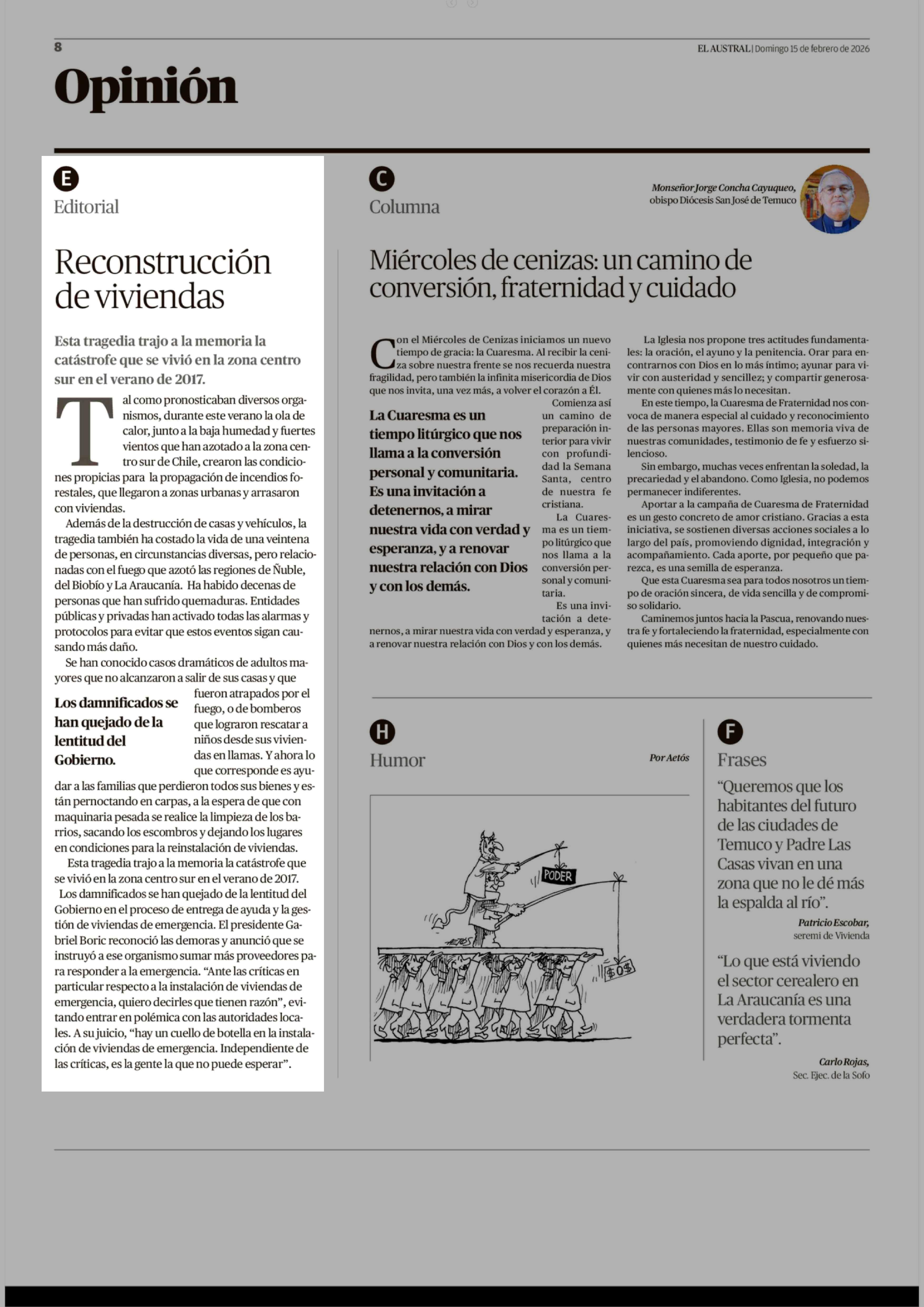 Editorial: Reconstrucción de viviendas 15-02-2026 El Austral de la Araucanía |