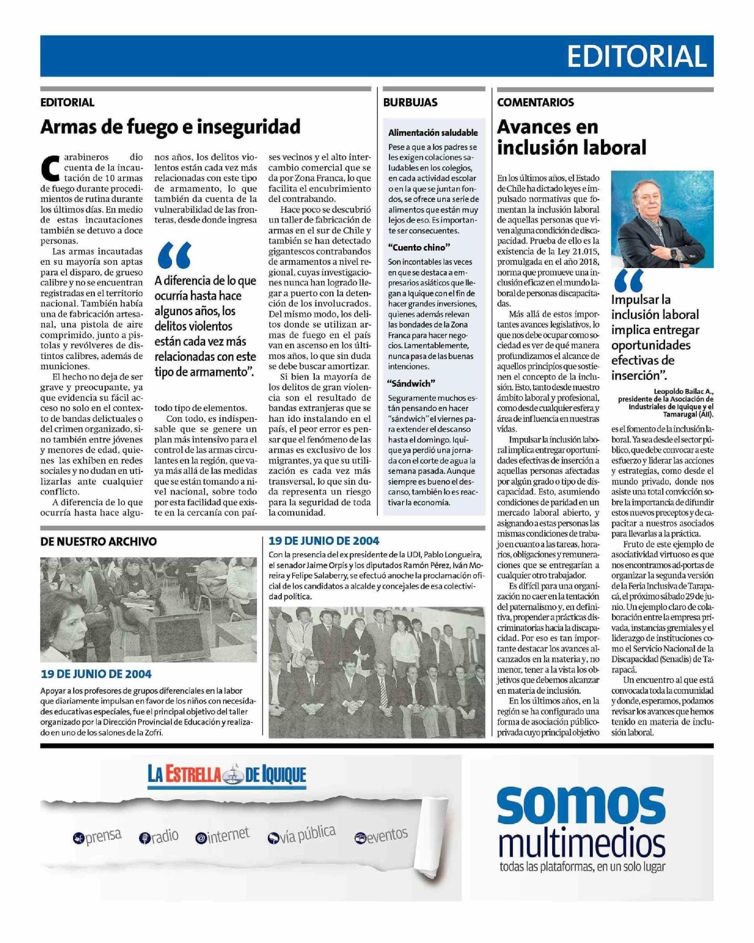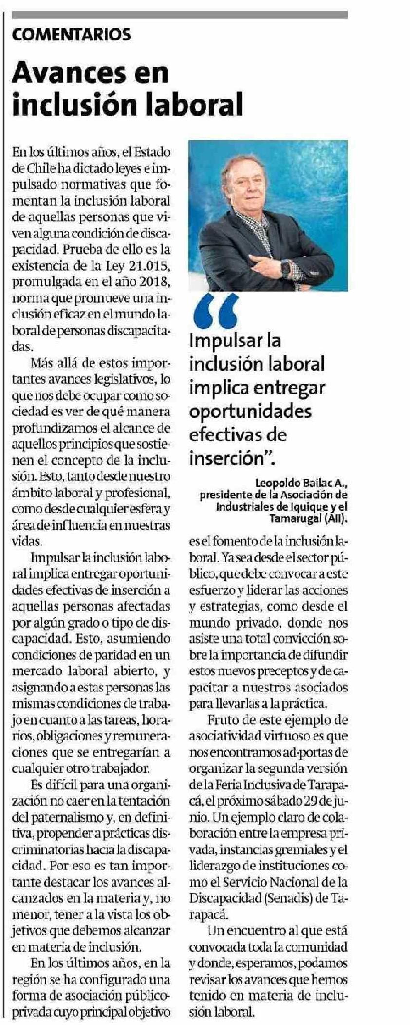 Avances en inclusión laboral 19-06-2024 La Estrella de Iquique |