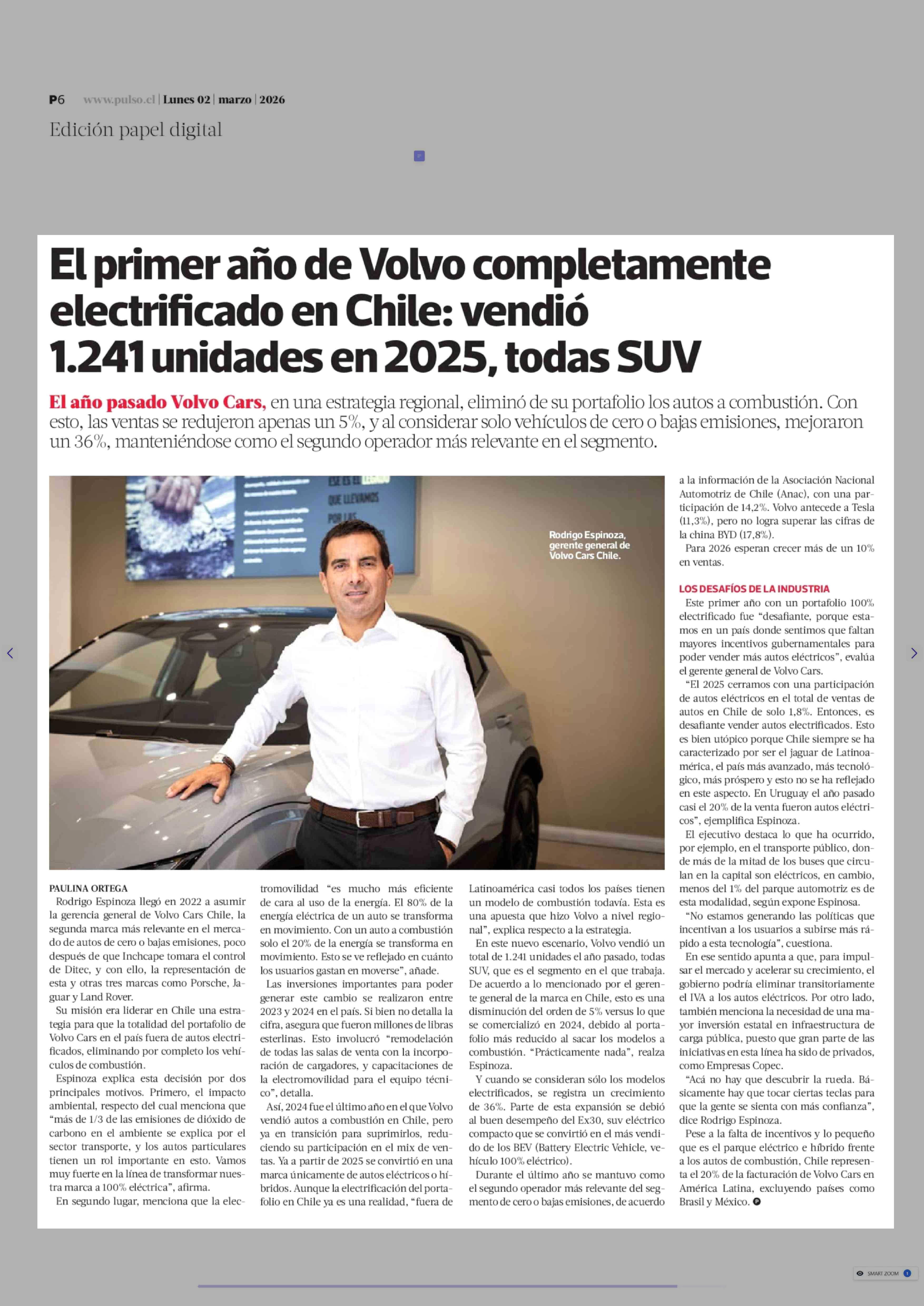 | Título: | El primer año de Volvo completamente electrificado en Chile: vendió 1.241 unidades en 2025, todas SUV |