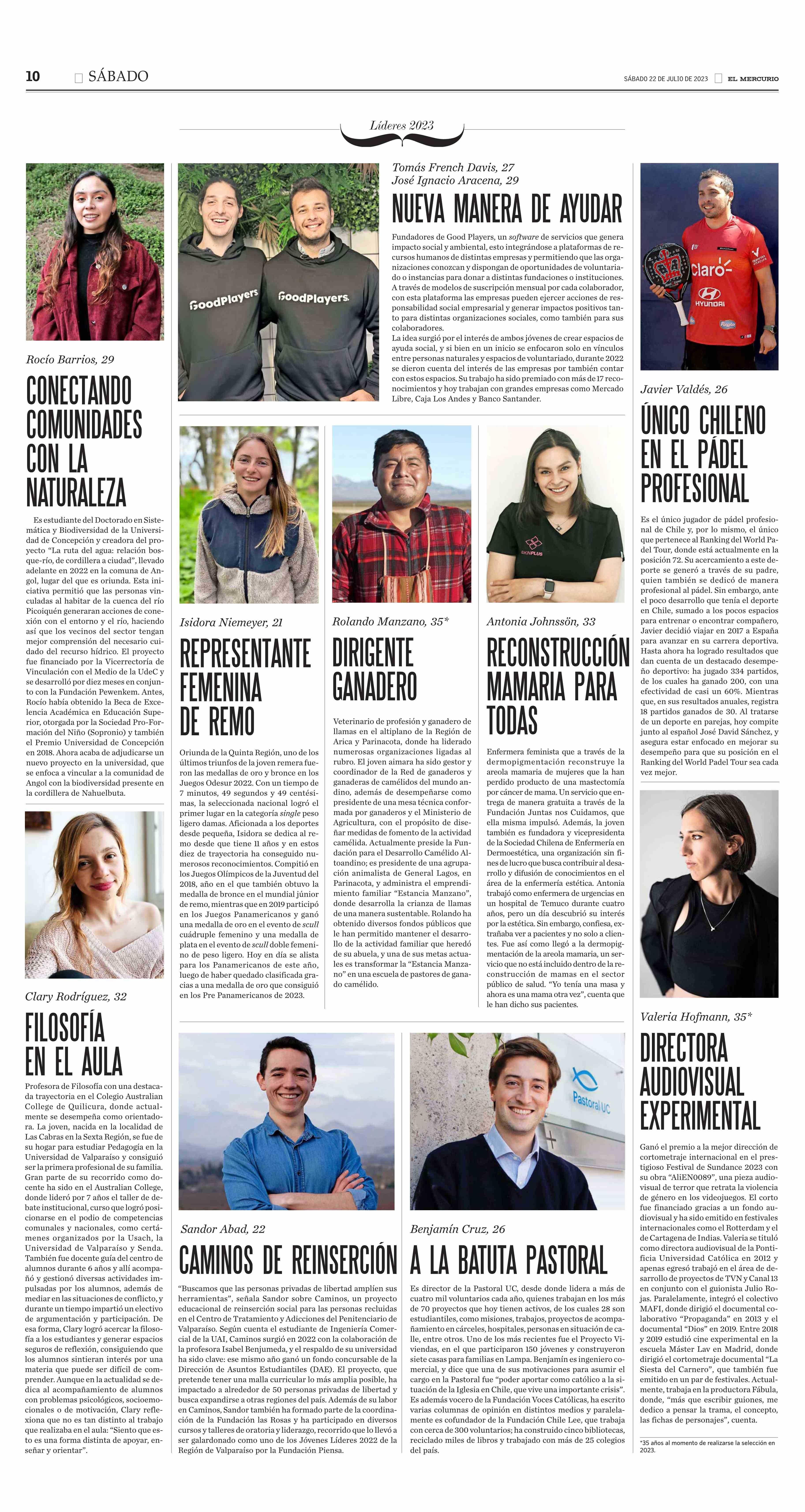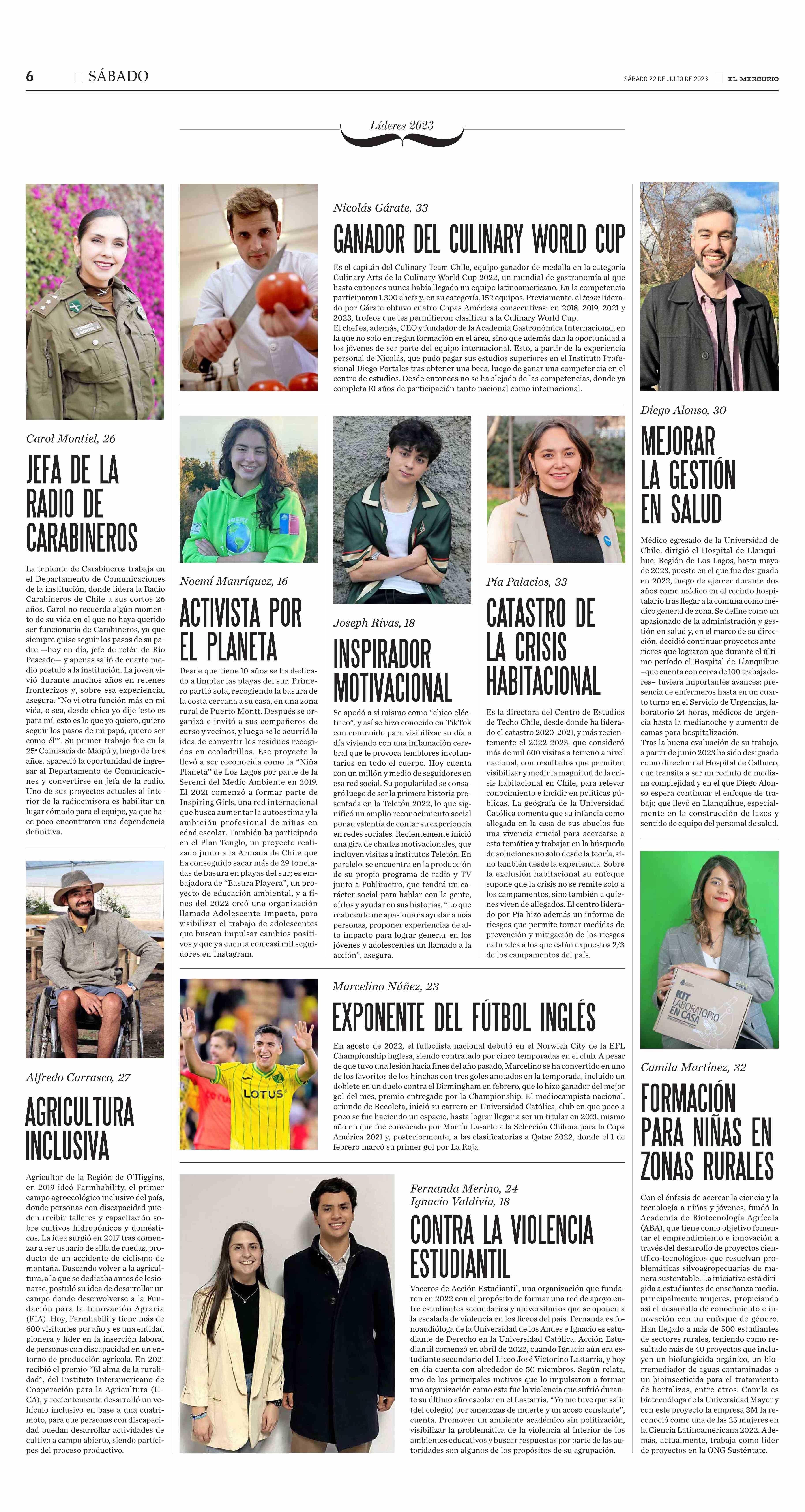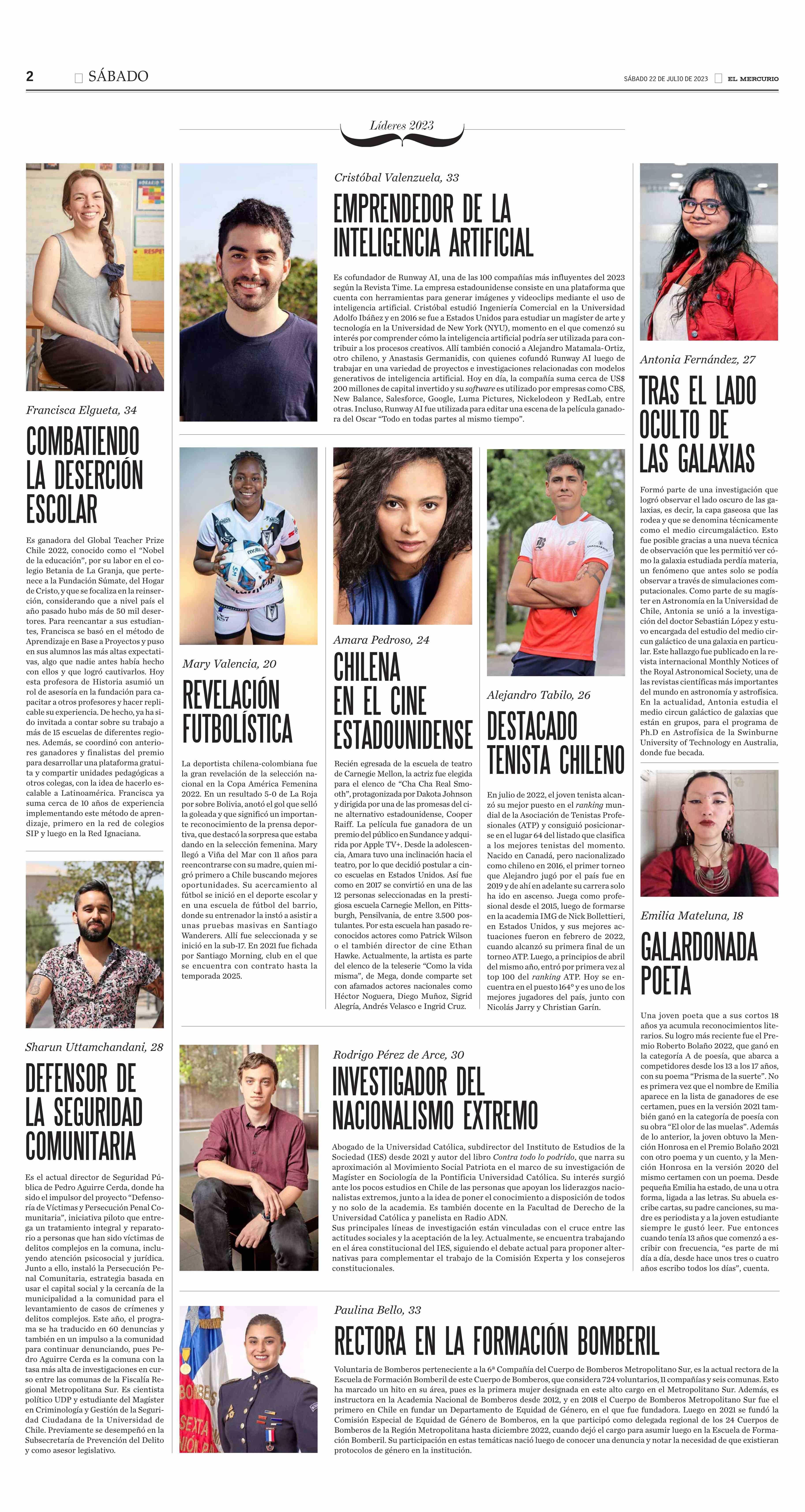 100 jóvenes líderes 2023 22-07-2023 El Mercurio |