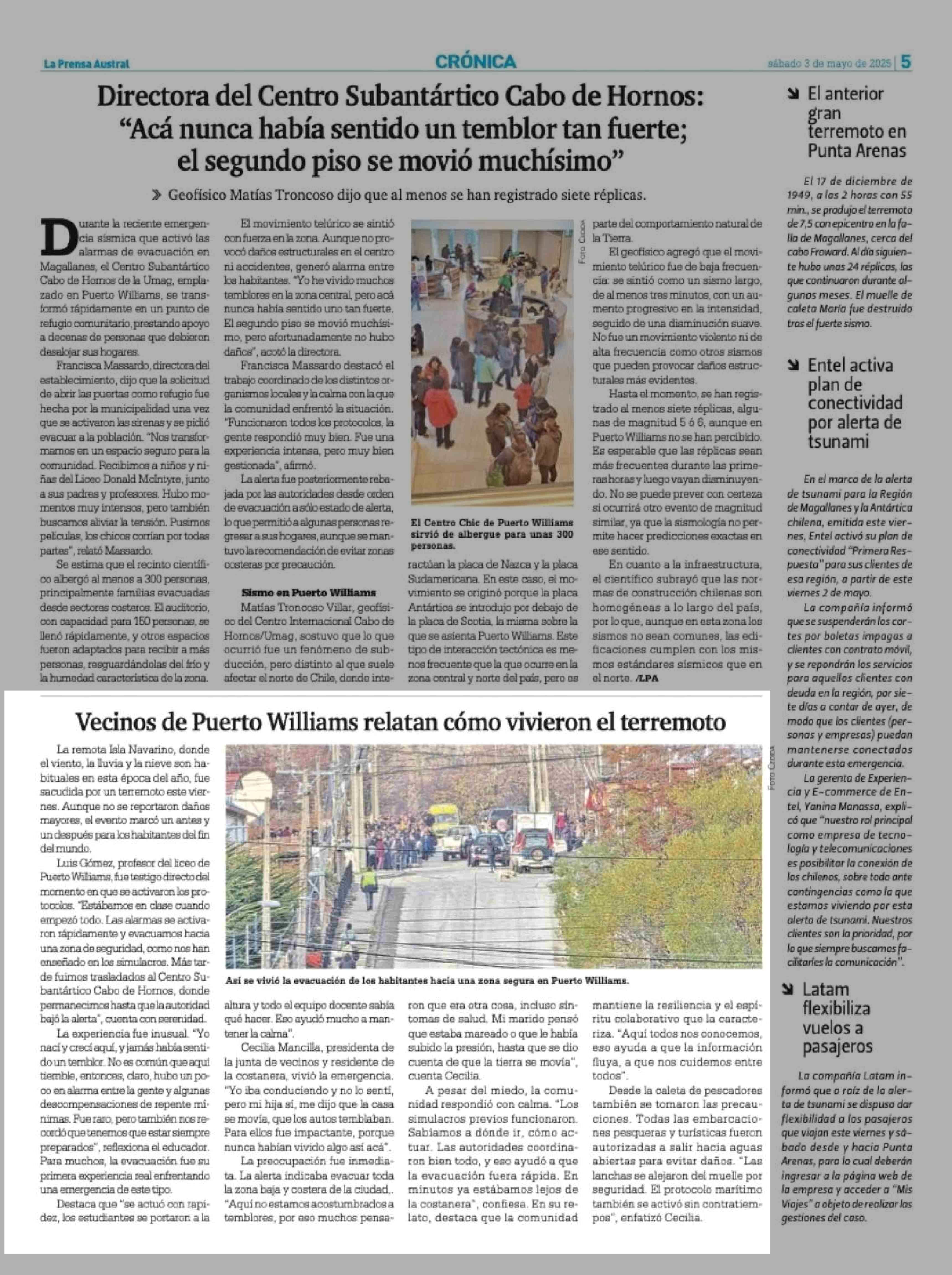 Vecinos de Puerto Williams relatan cómo vivieron el cinc 03-05-2025 La Prensa Austral |