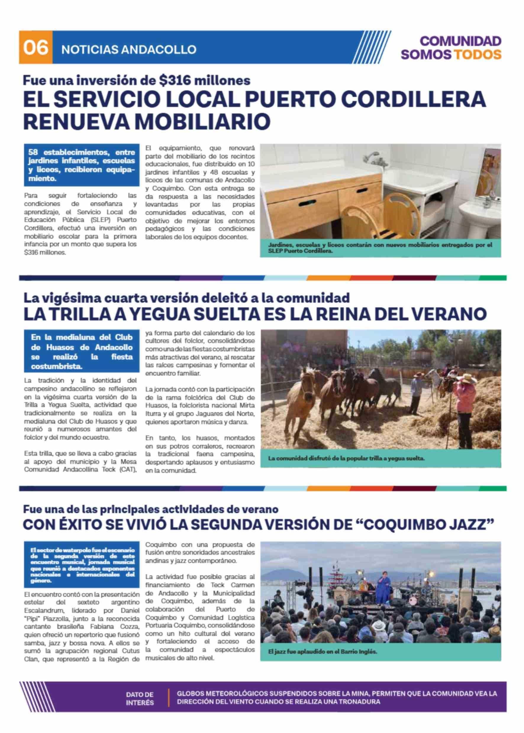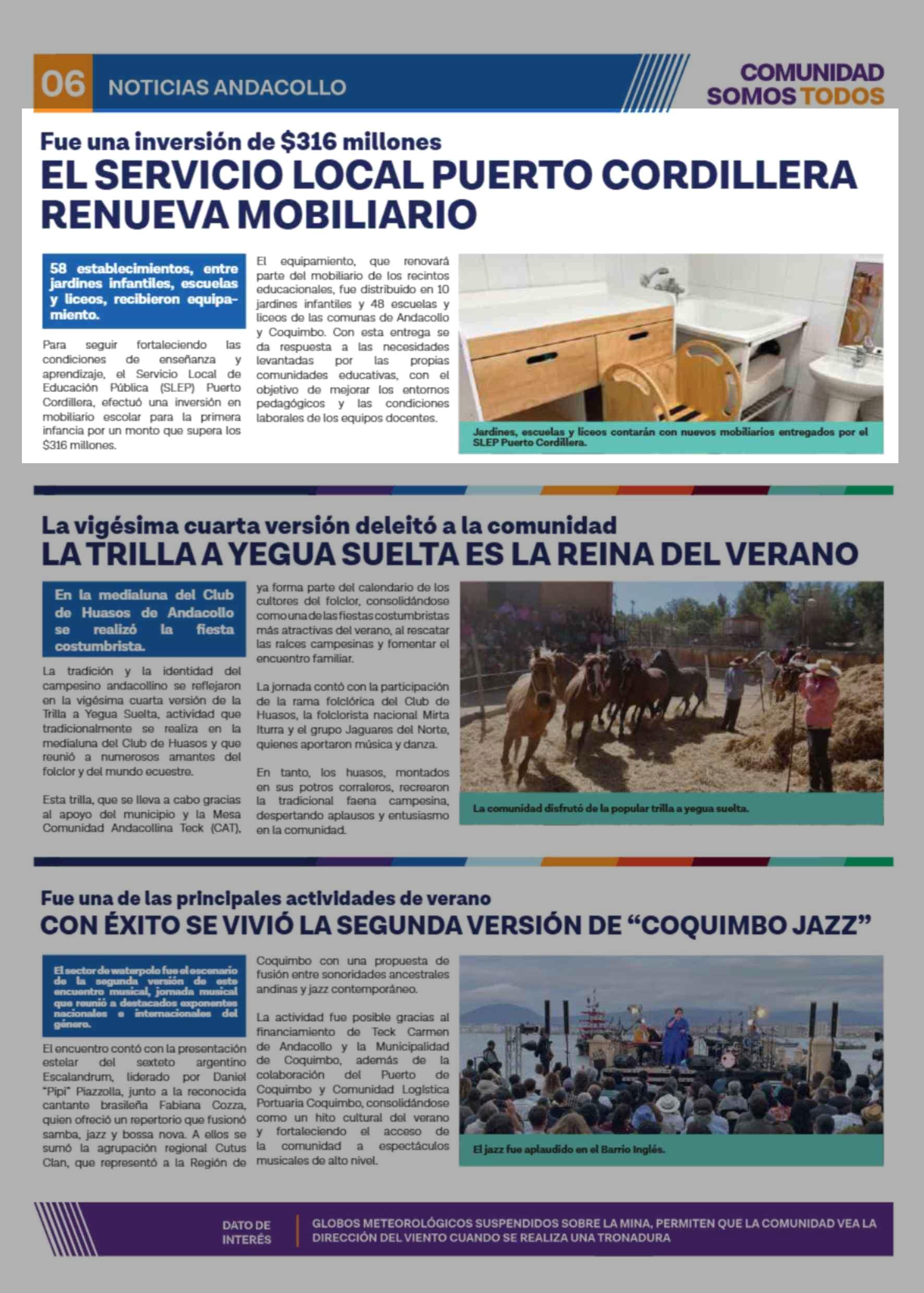 | Título: | Fue una inversión de $316 millones EL SERVICIO LOCAL PUERTO CORDILLERA RENUEVA MOBILIARIO |