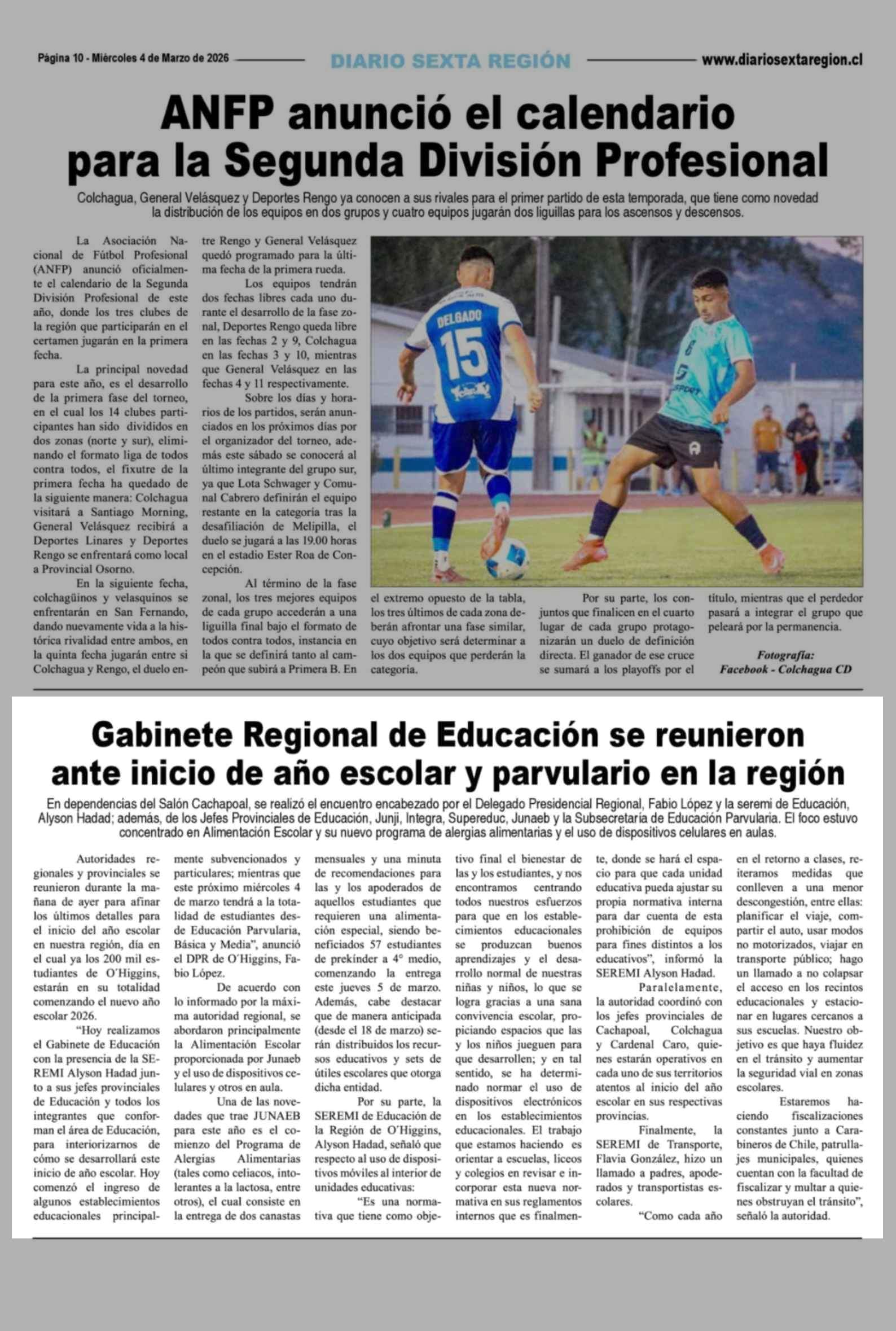 | Fecha: | 04-03-2026 | Sector: | Noticia general | Región: | Región del Libertador General Bernardo O'Higgins |